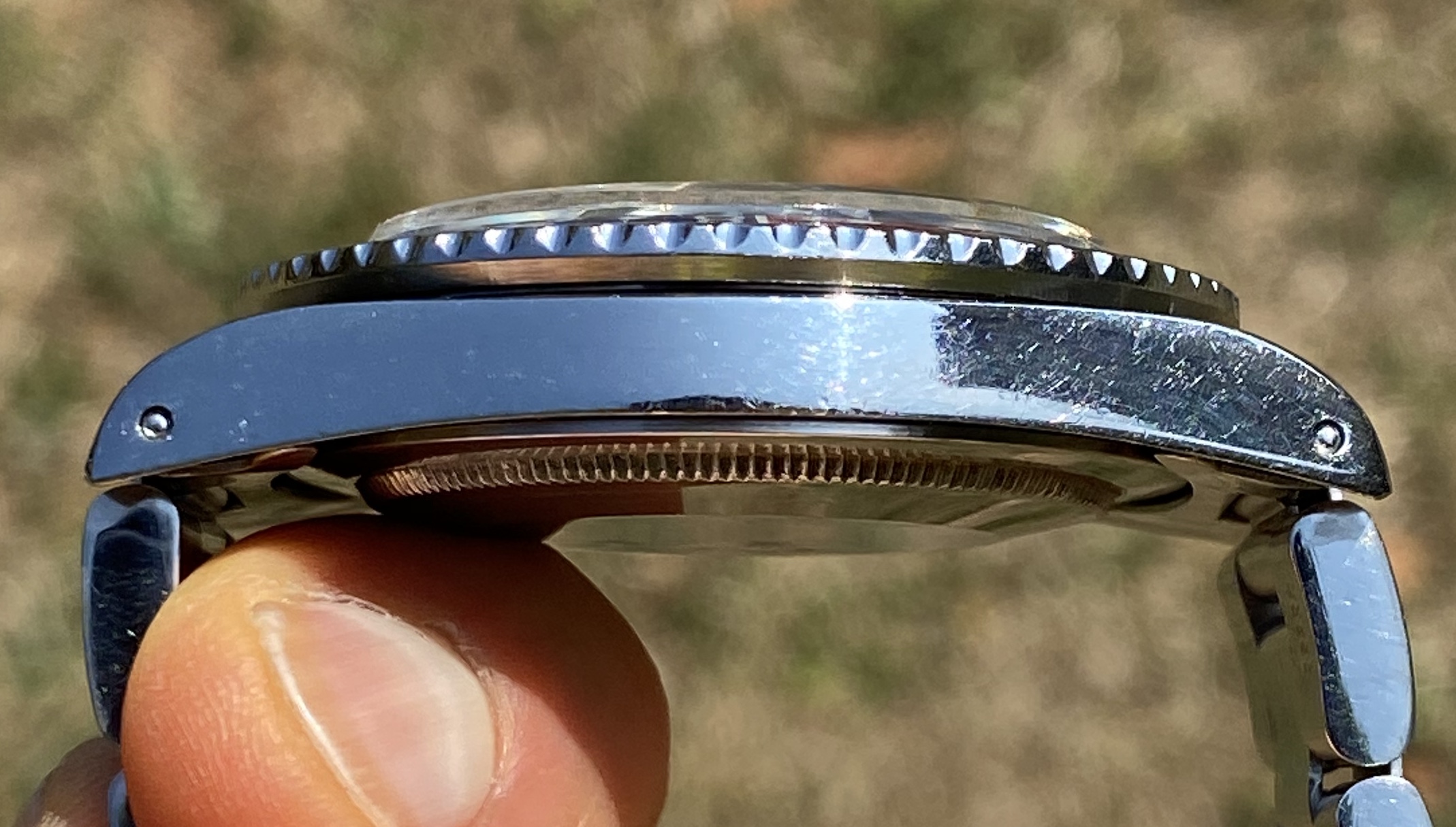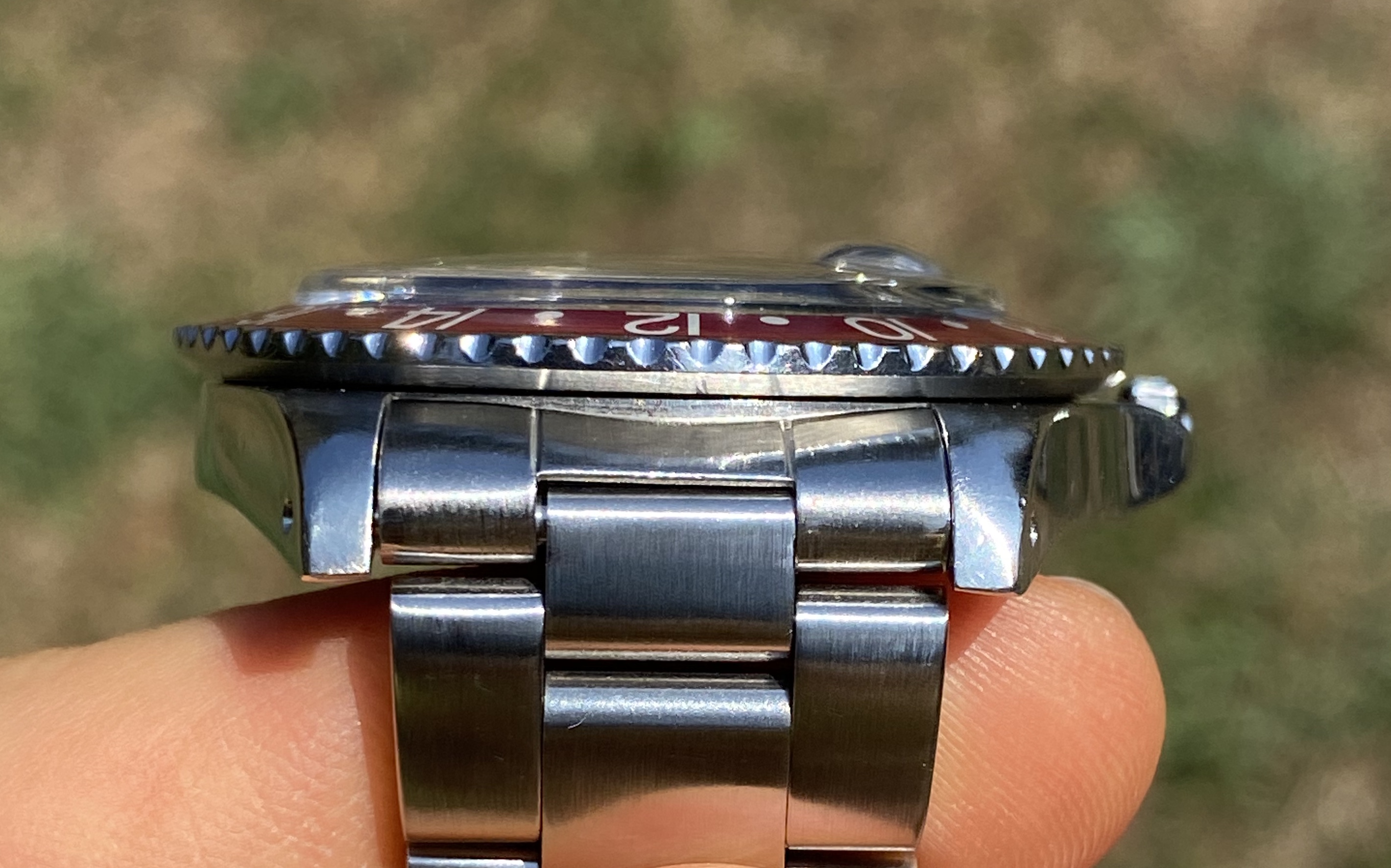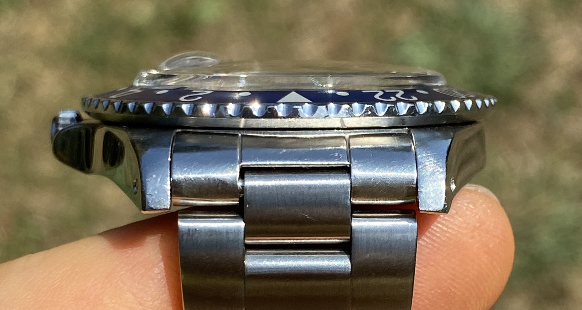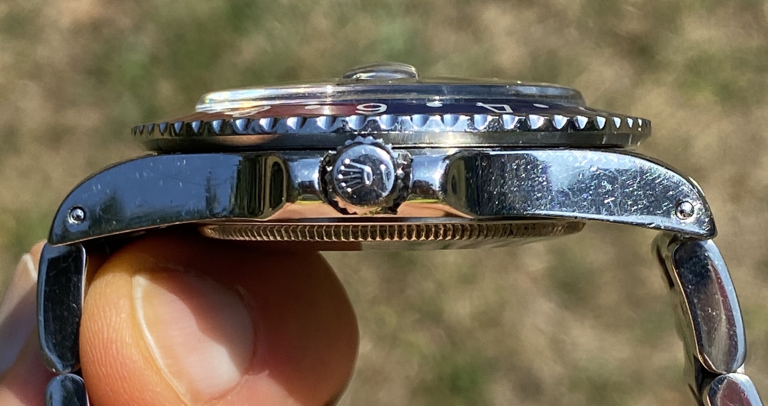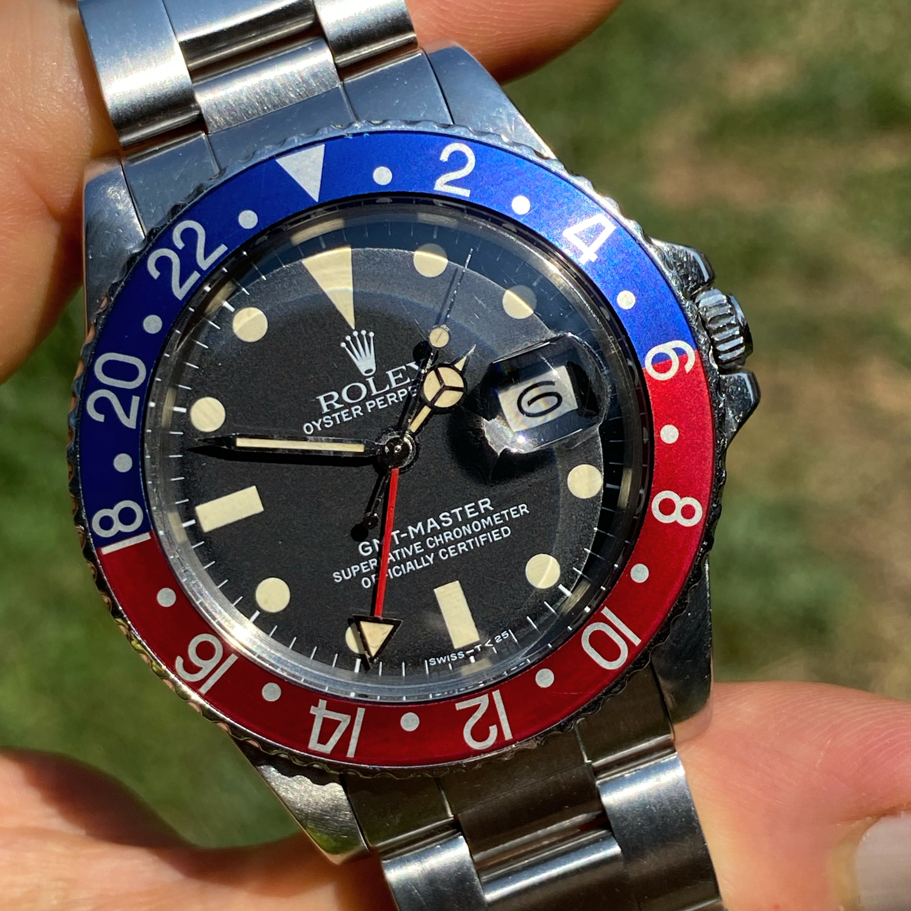 The example that have here is one earlier versions with the transitional matte dial that continued the theme of the later 1675s before Rolex eventually switched out in favor of a glossy dial with white-gold surrounds on the indexes.
