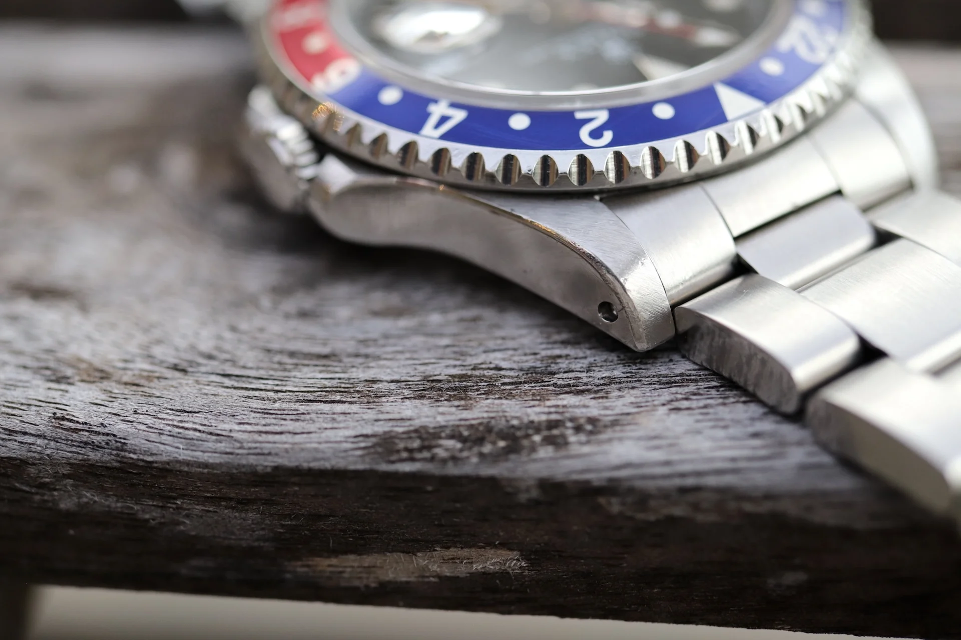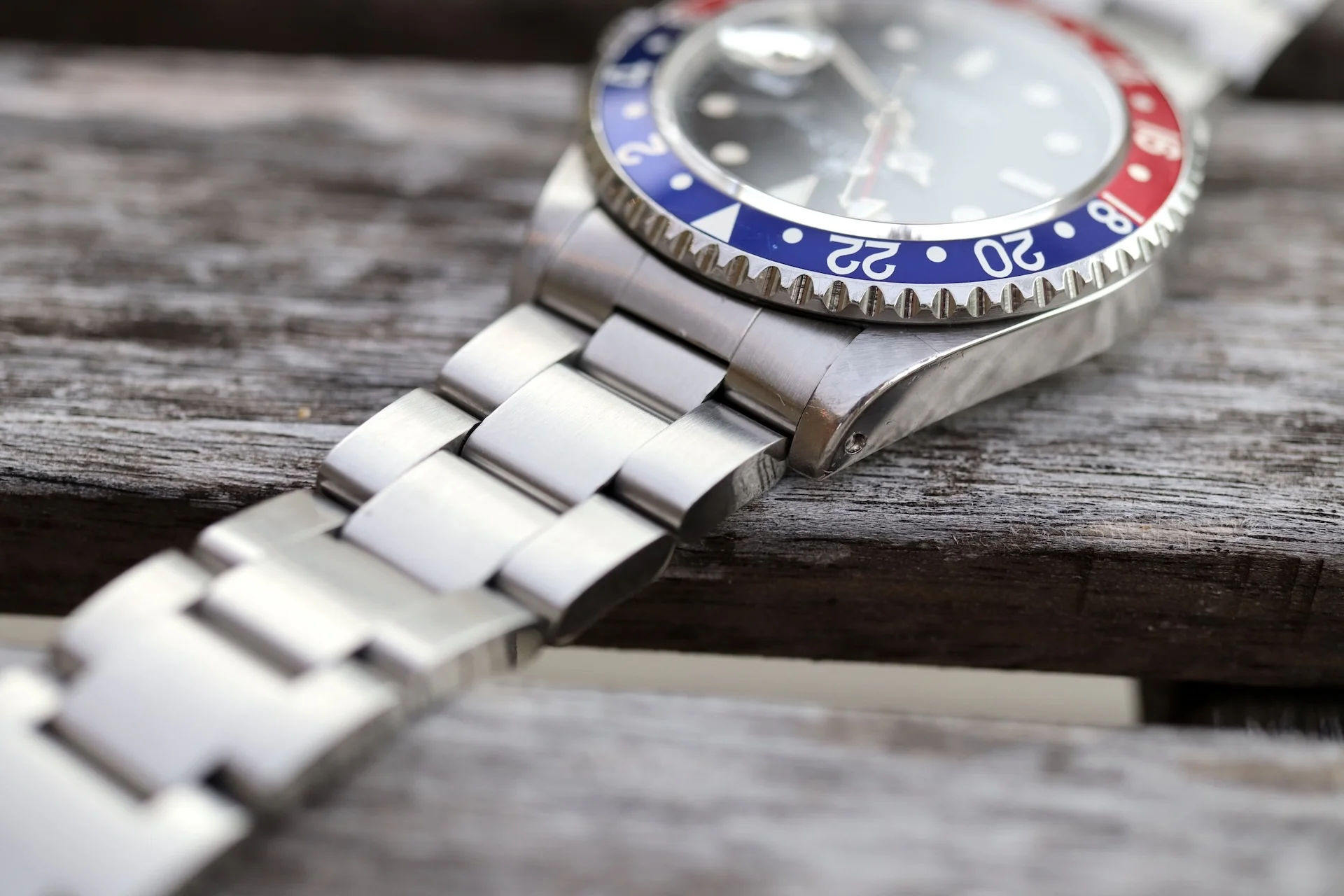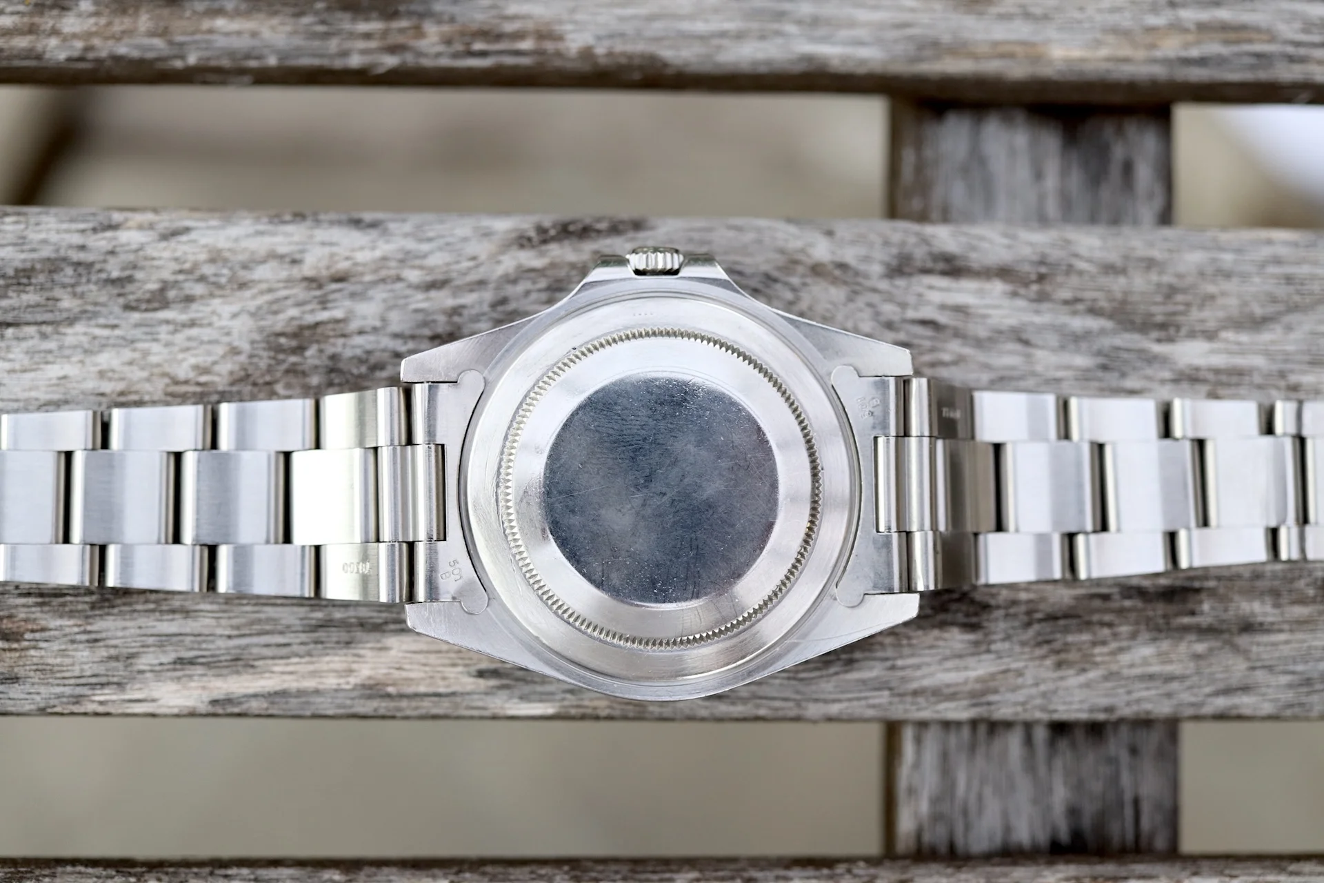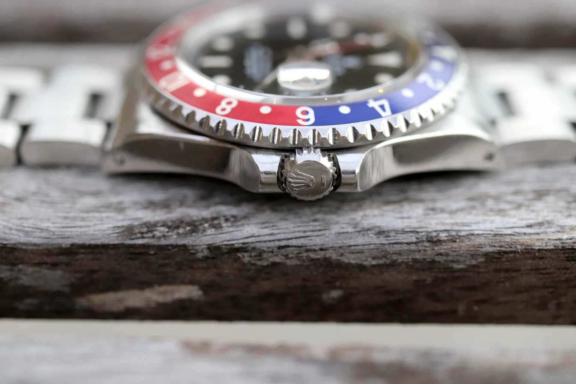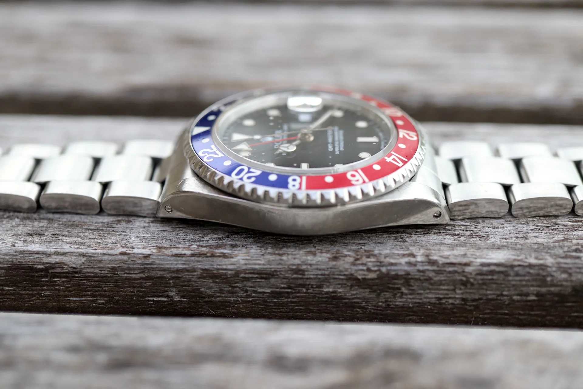 ·I have for sale a Rolex GMT Master Reference 16700, equipped with the Rolex 3175 Movement. The case measures 40mm without the crown. It has an E serial number dating back to 1990. The watch is working well, and all functions are working correctly. The watch was just serviced, and it comes with a 1-year warranty. It's an original bracelet and is full-length with 12 links. The watch has a beautiful, rich, creamy colour patina.
