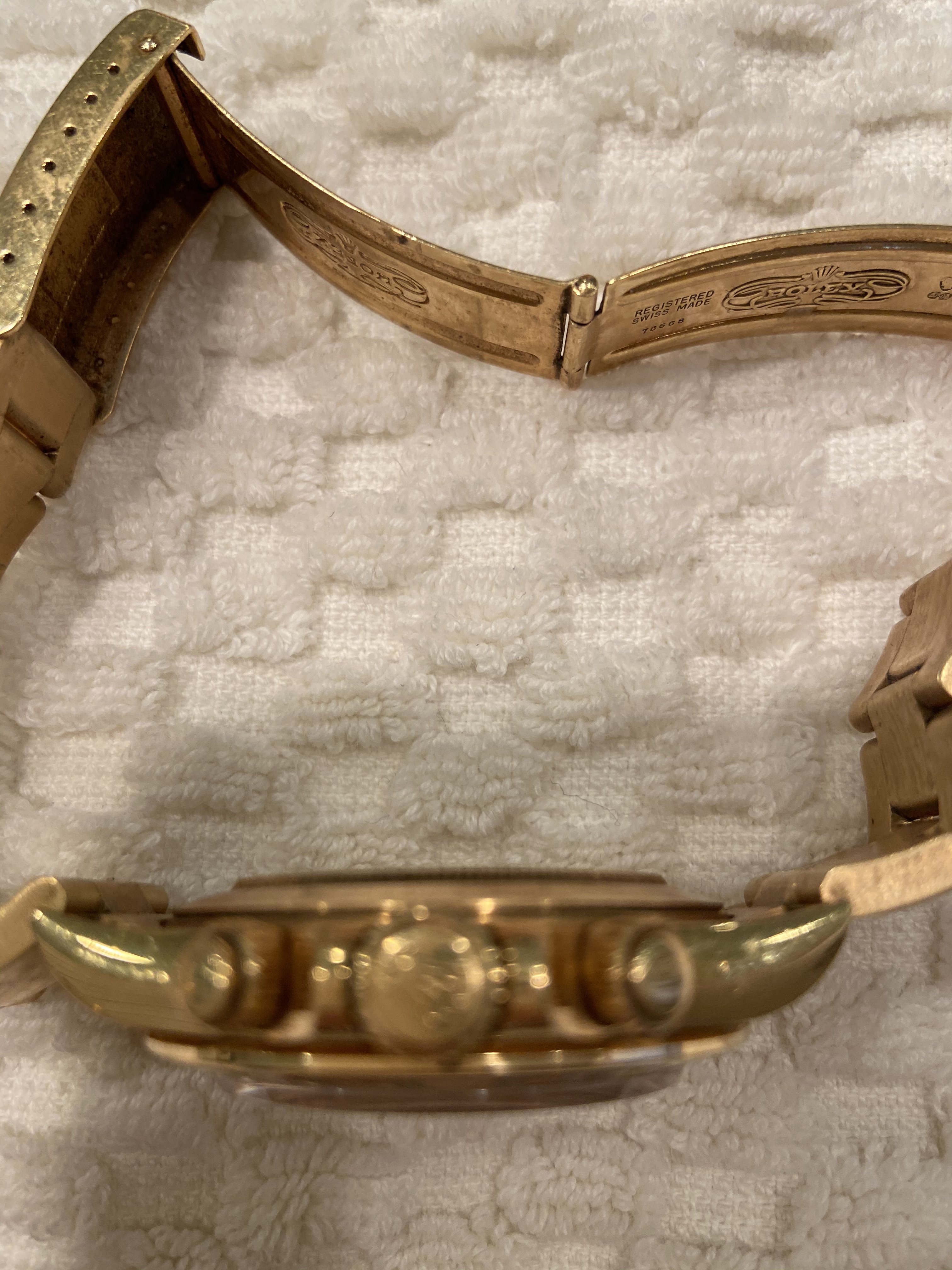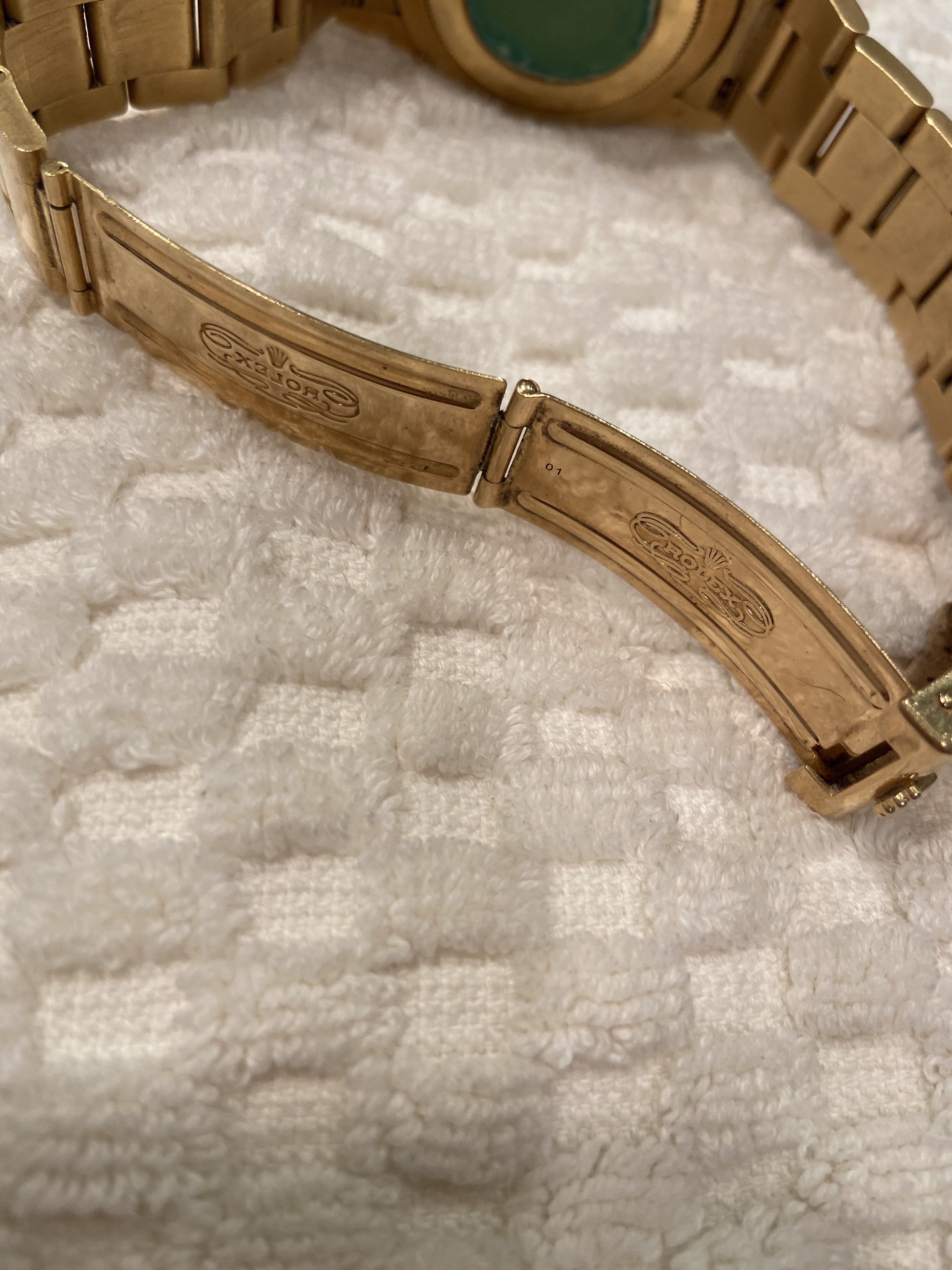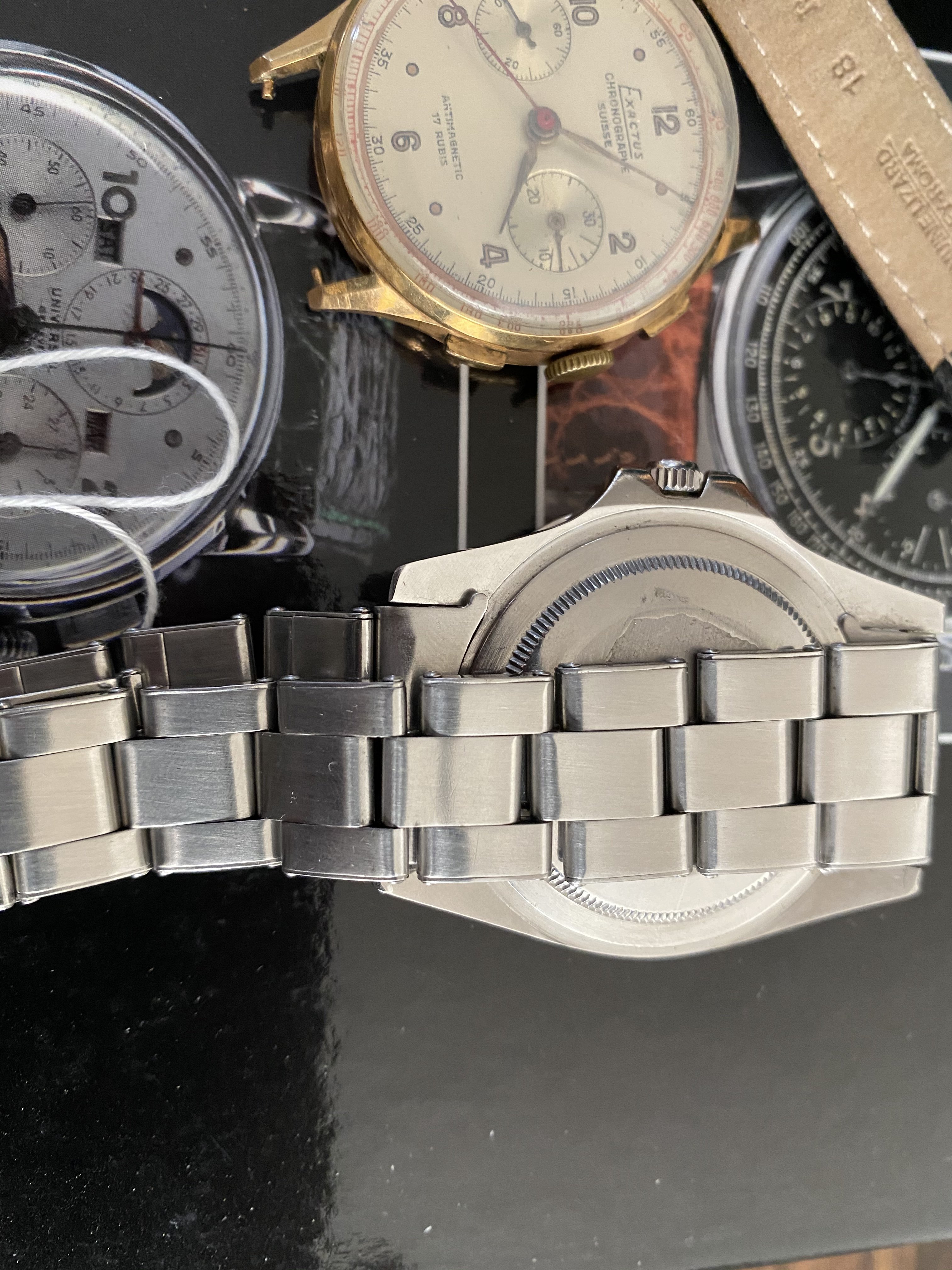 It's a C&I USA-made Rolex bracelet IMO. They have integrated end-links without numbers, and they don't really fit very well unless you put a lot of work into tweaking them. The clasp should be signed C&I, but the photos don't show that part of the clasp. It's the least desirable type of bracelet, but legit, and possibly original.