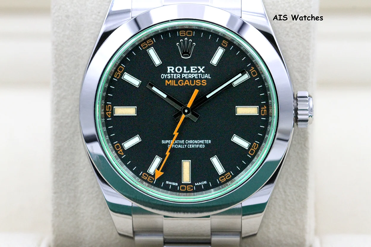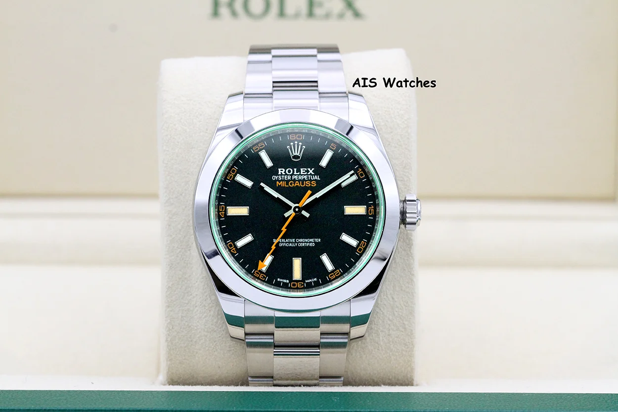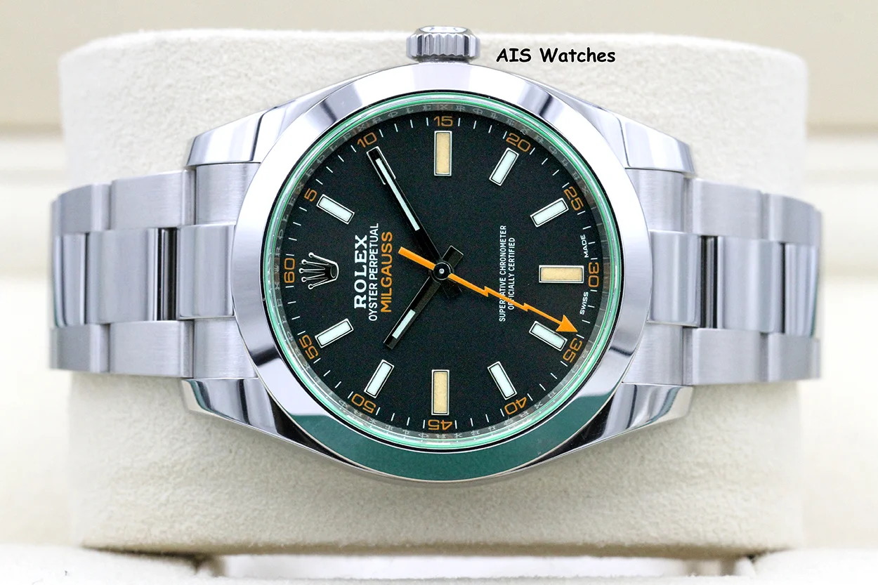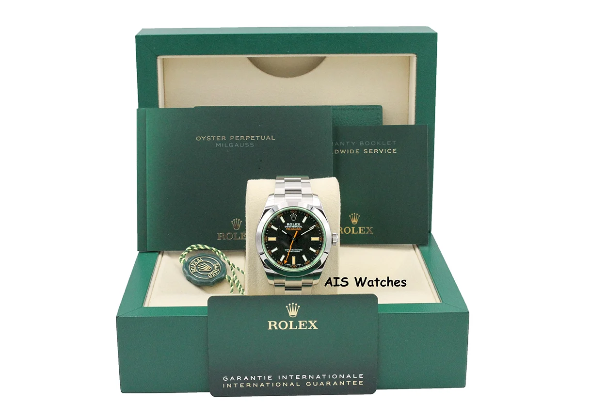 Up for sale is a Rolex Milgauss 116400GV Green Crystal Black Dial Random Serial Box & Papers. The timepiece is in excellent condition.