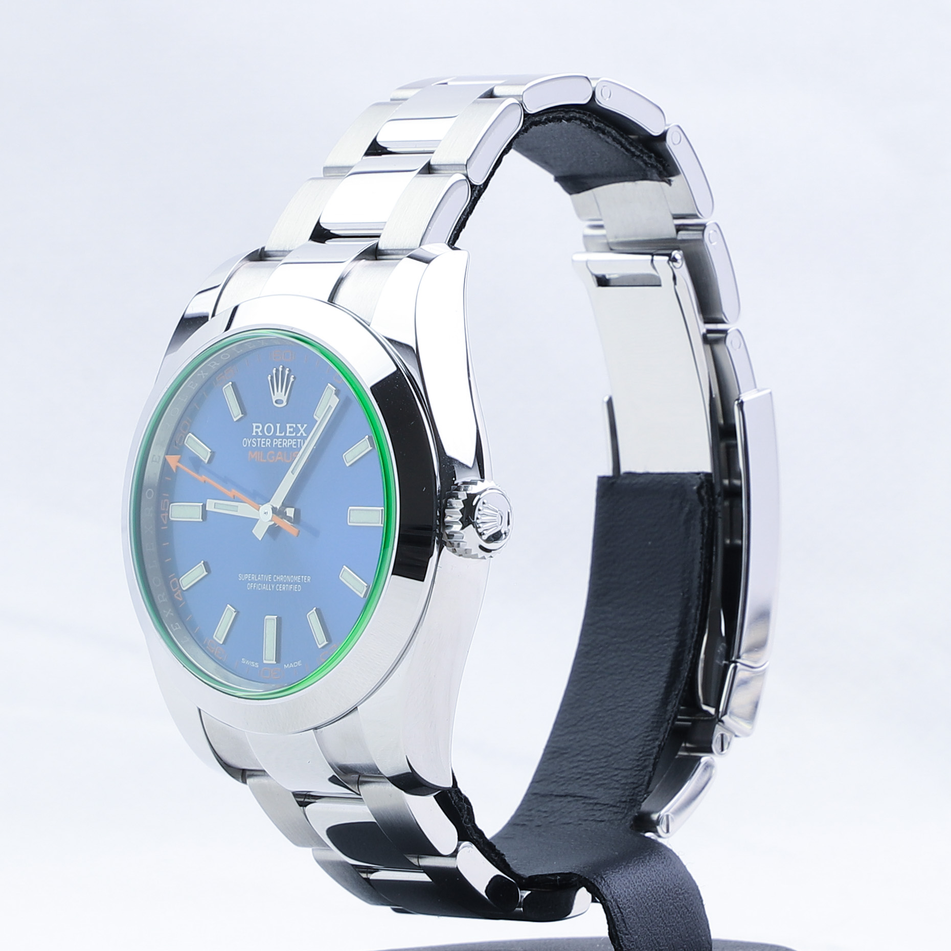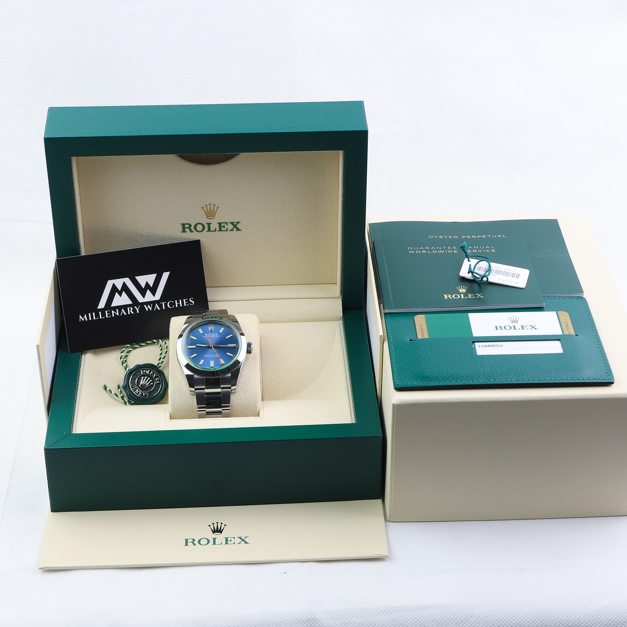 Selling a BNIB Rolex Milgauss ref 116400GV Z-blue dial. Complete with box and papers, dated 2019.