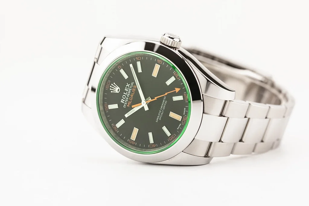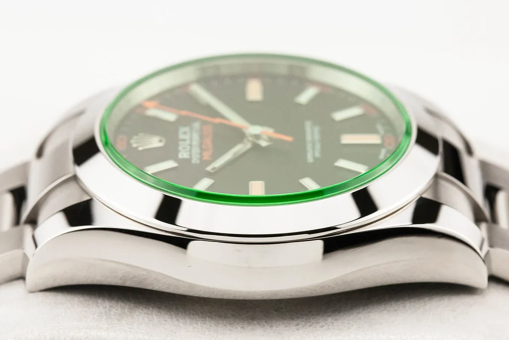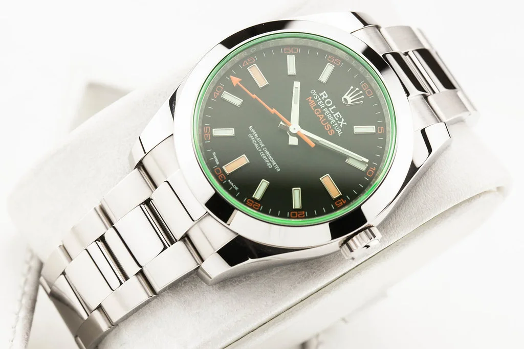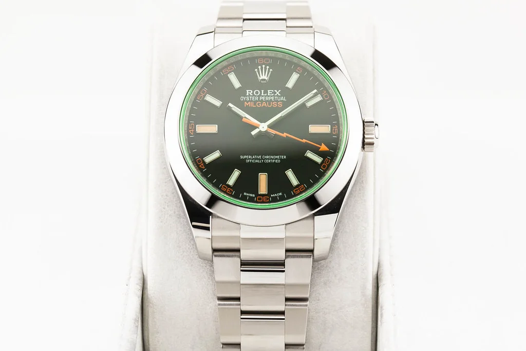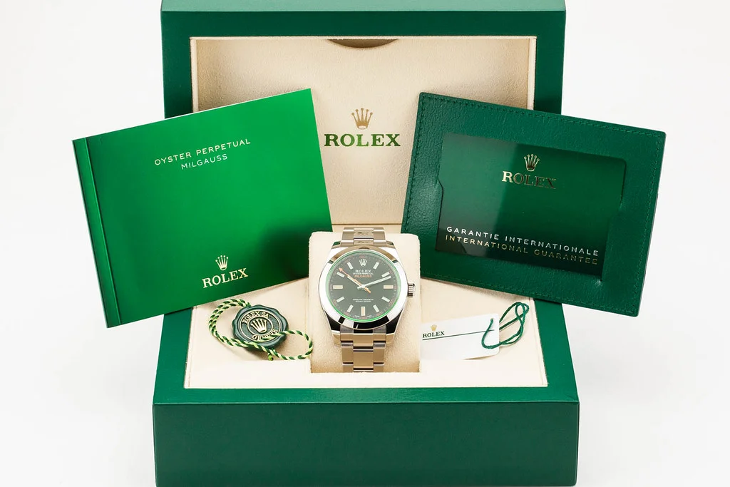 ·Up for sale is an excellent condition Rolex Milguass Black Dial 40mm reference # 116400GV. It comes complete with all boxes, papers, booklets, hang tags and Rolex Warranty Card dated October 2021.