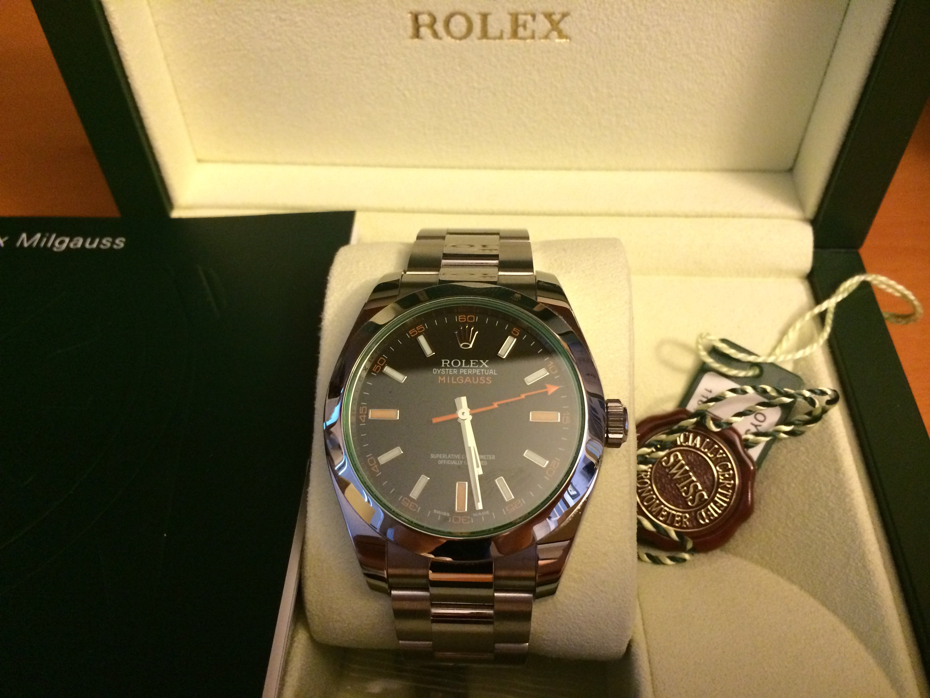 Posts 640 Likes 194 randomguy ·May 25, 2014 Rolex Milgauss GV Green Crystal 116400 V Serial Complete set mint. This safe queen has only been let out on occasion, as you can see by the pictures. $6,250 obo shipped across Canada. MSRP is $8,250+tax.