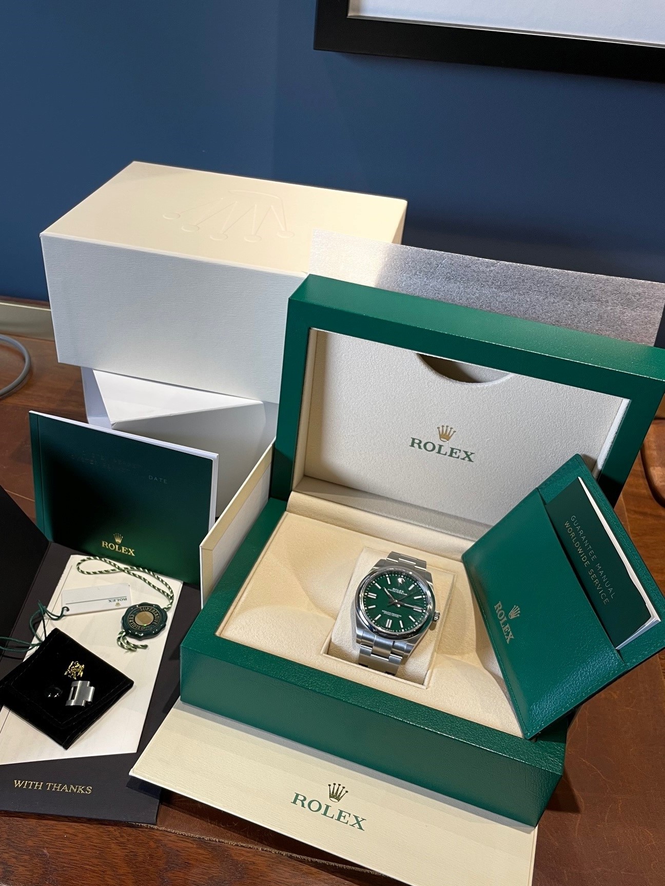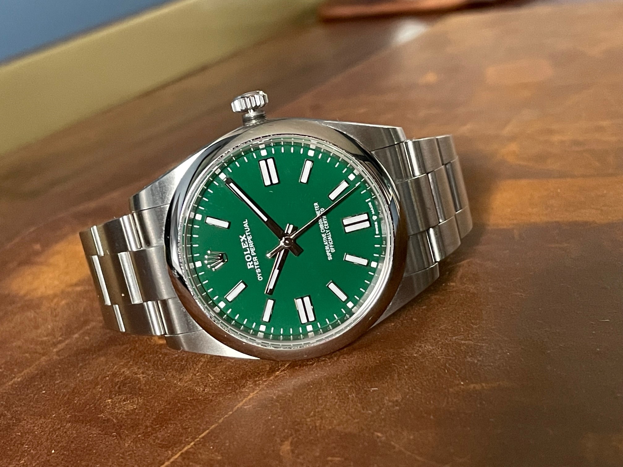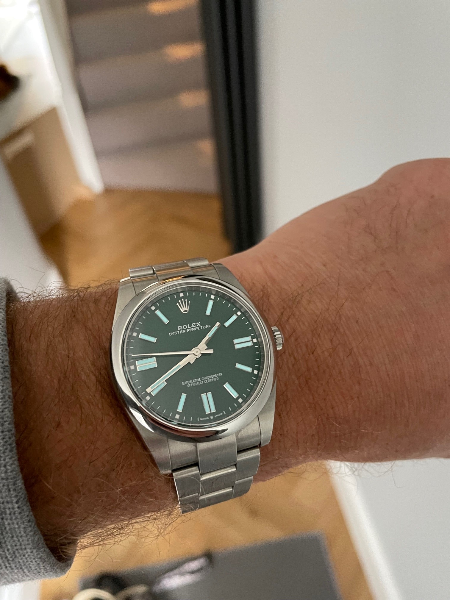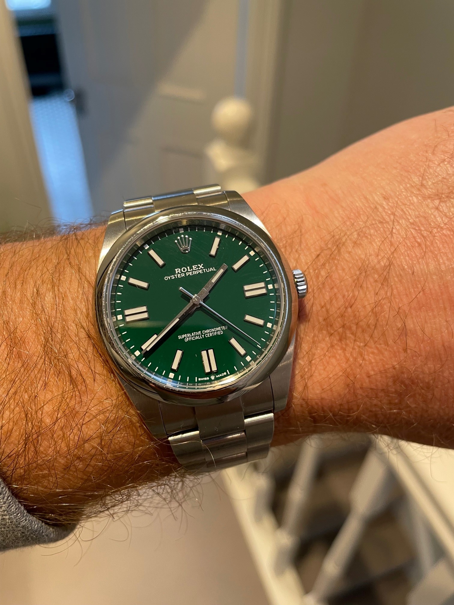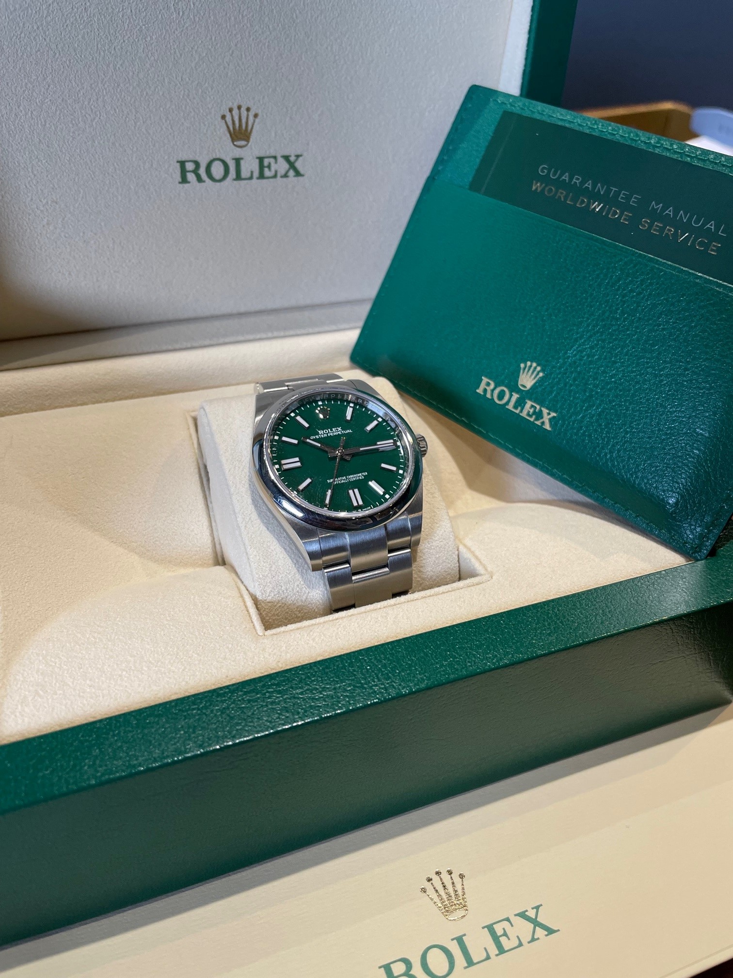 ·I'm putting up for sale my Rolex OP41 124300 Green Dial, purchased from a Mayfair Rolex OD in October 2020, making this one of the very first delivered.