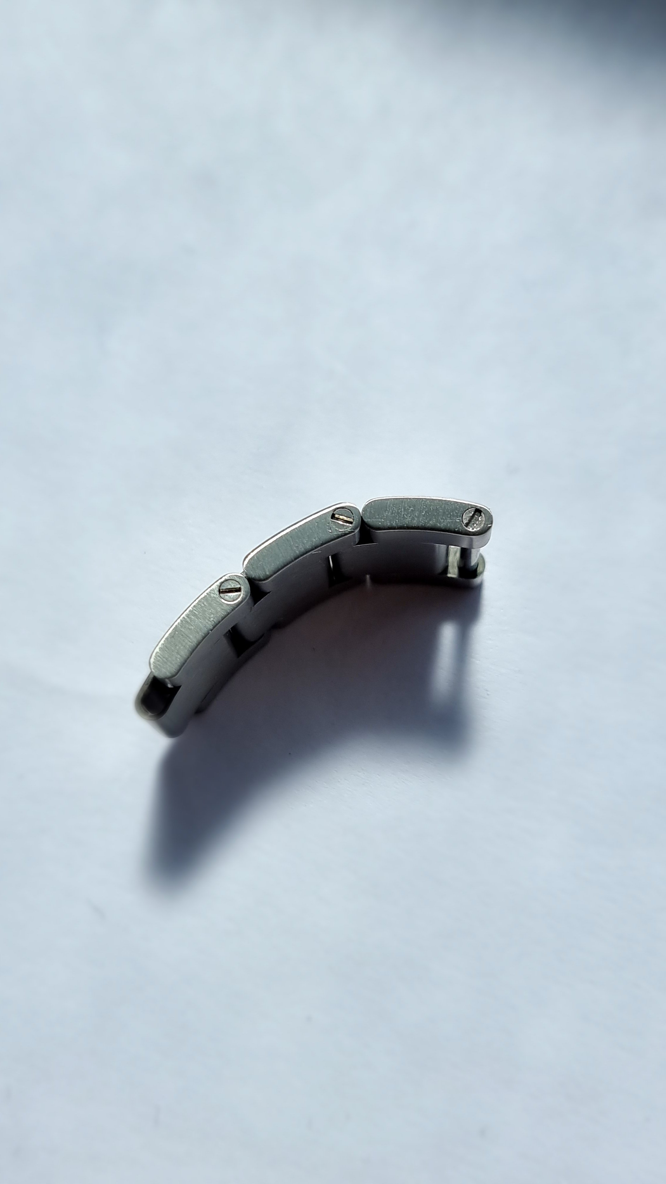·100% Authentic Rolex Oyster bracelet extension links. These are the hollow Oyster links, they measure 15.5mm wide and are made from stainless steel. The top of these links have a brushed/matt finish as do the sides. These links are supplied ready to wear as they come complete with their original Rolex screw to allow you to install it directly onto your bracelet. The 3 links are in very good condition with only a few small hairline scratches from use, please see photos.
