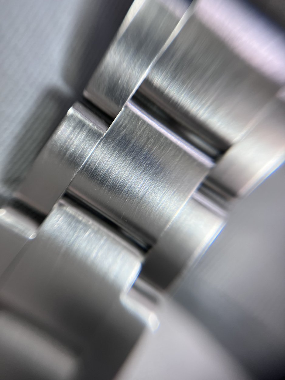 Bracelet: 904L Stainless steel Oyster bracelet, featuring flat three-piece links (11 links supplied)