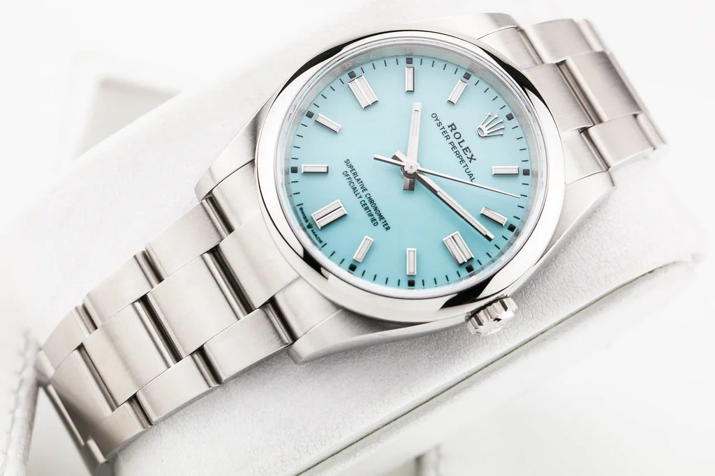 ·Up for sale is a brand new Rolex Oyster Perpetual 36 with Turquoise / Tiffany Blue Dial, reference # 126000. It comes complete with all boxes, papers, booklets, hang tags, and Rolex Warranty Card dated November 2024.