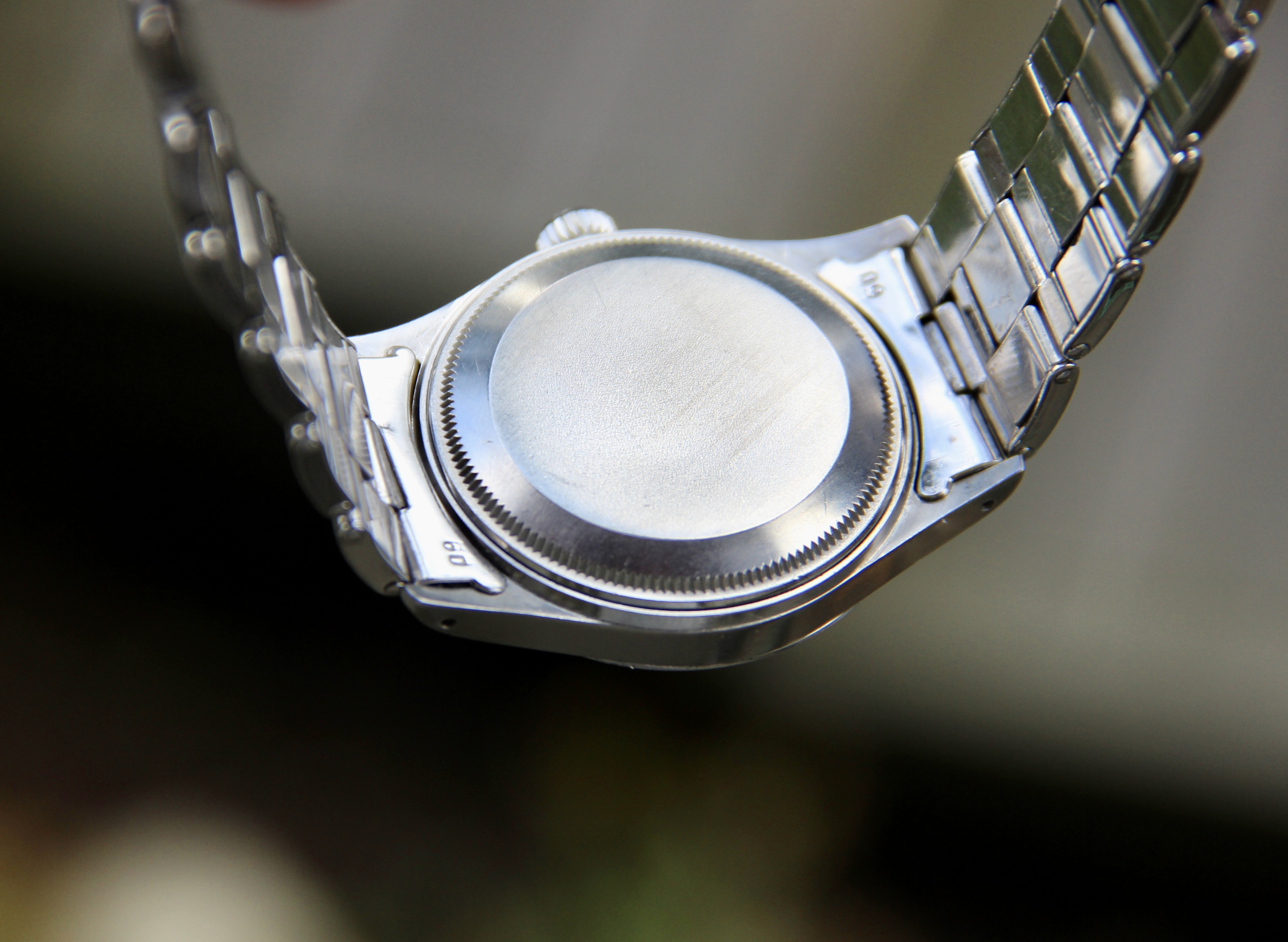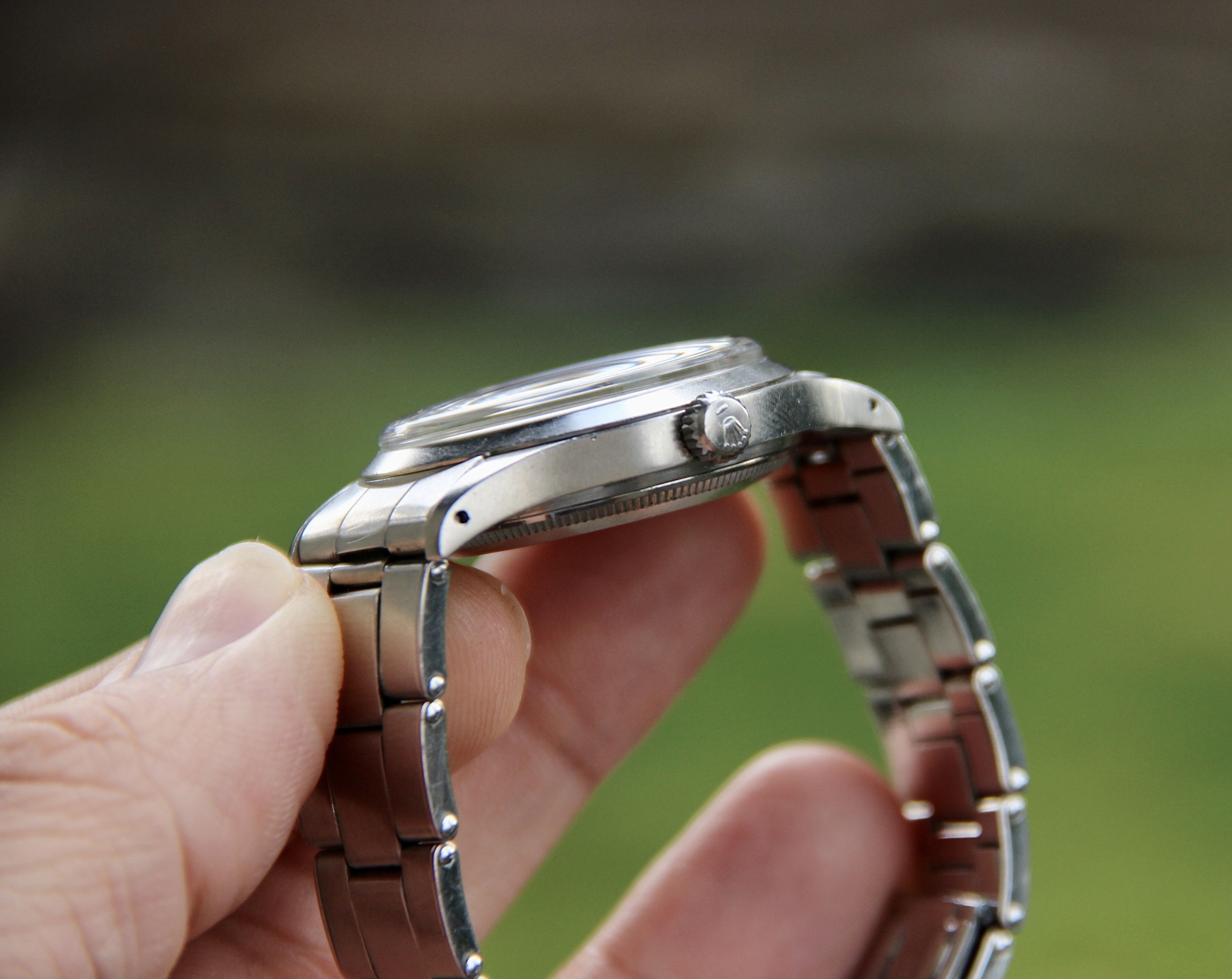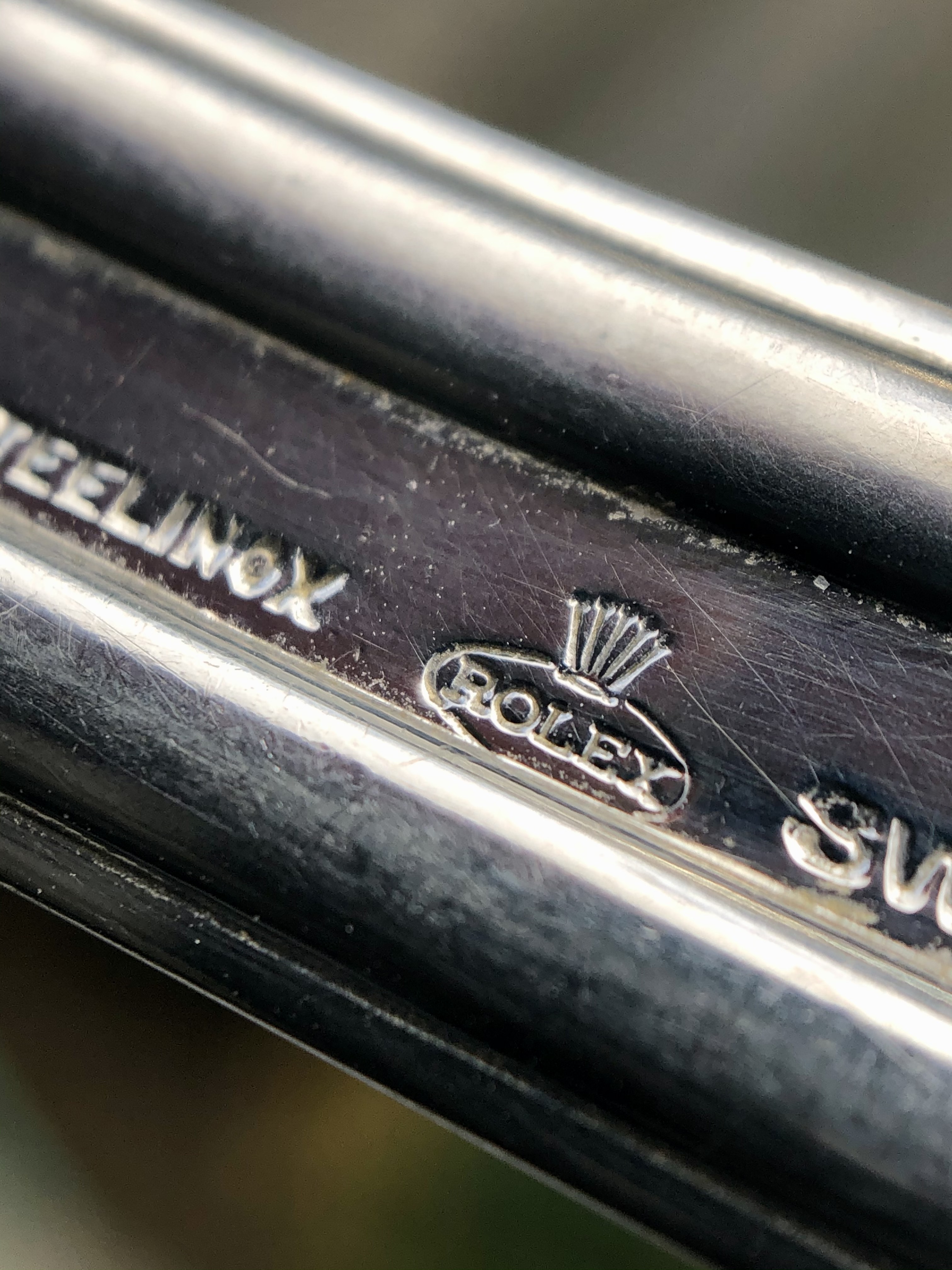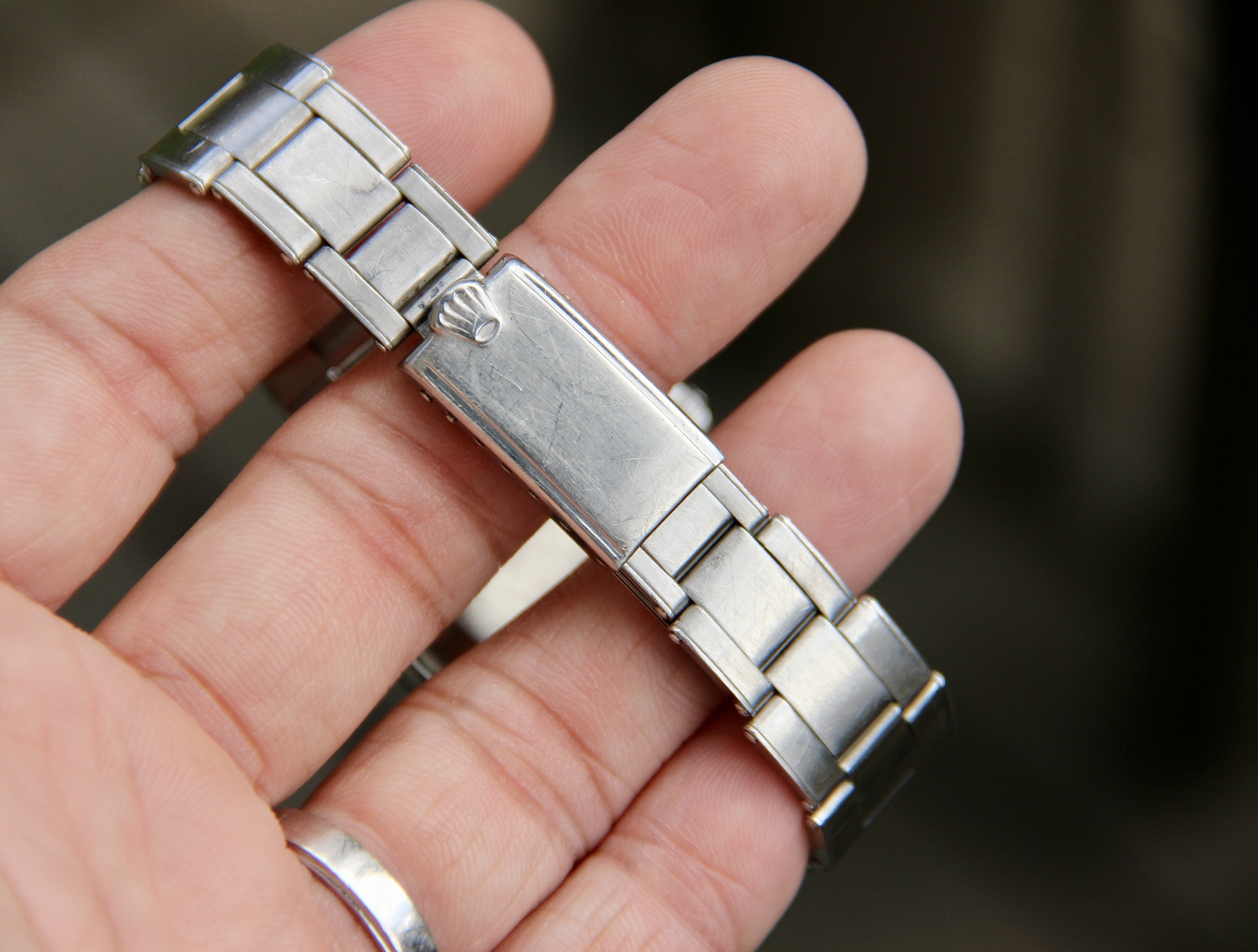 Serial number of this watch is 363XXX which dates it to 1958. Caseback is engraved 6532 and with IV.58 (fourth quarter 1958). Bracelet is a rivet style, clasp has ‘1-58’ date code. Movement is the automatic winding Rolex Caliber 1030 with 25 jewels. Original stainless steel case is approx 34mm in diameter and 11mm thick.