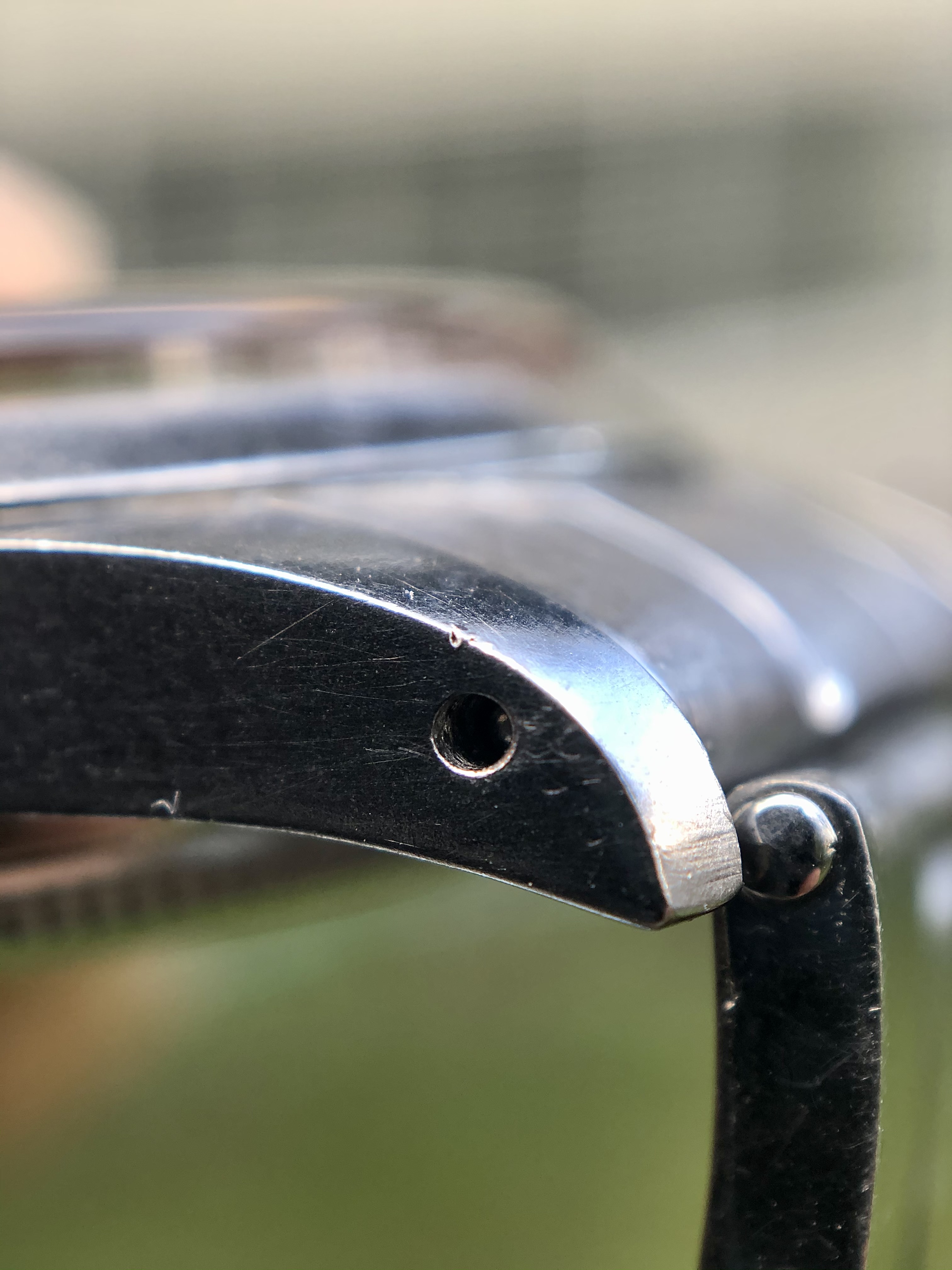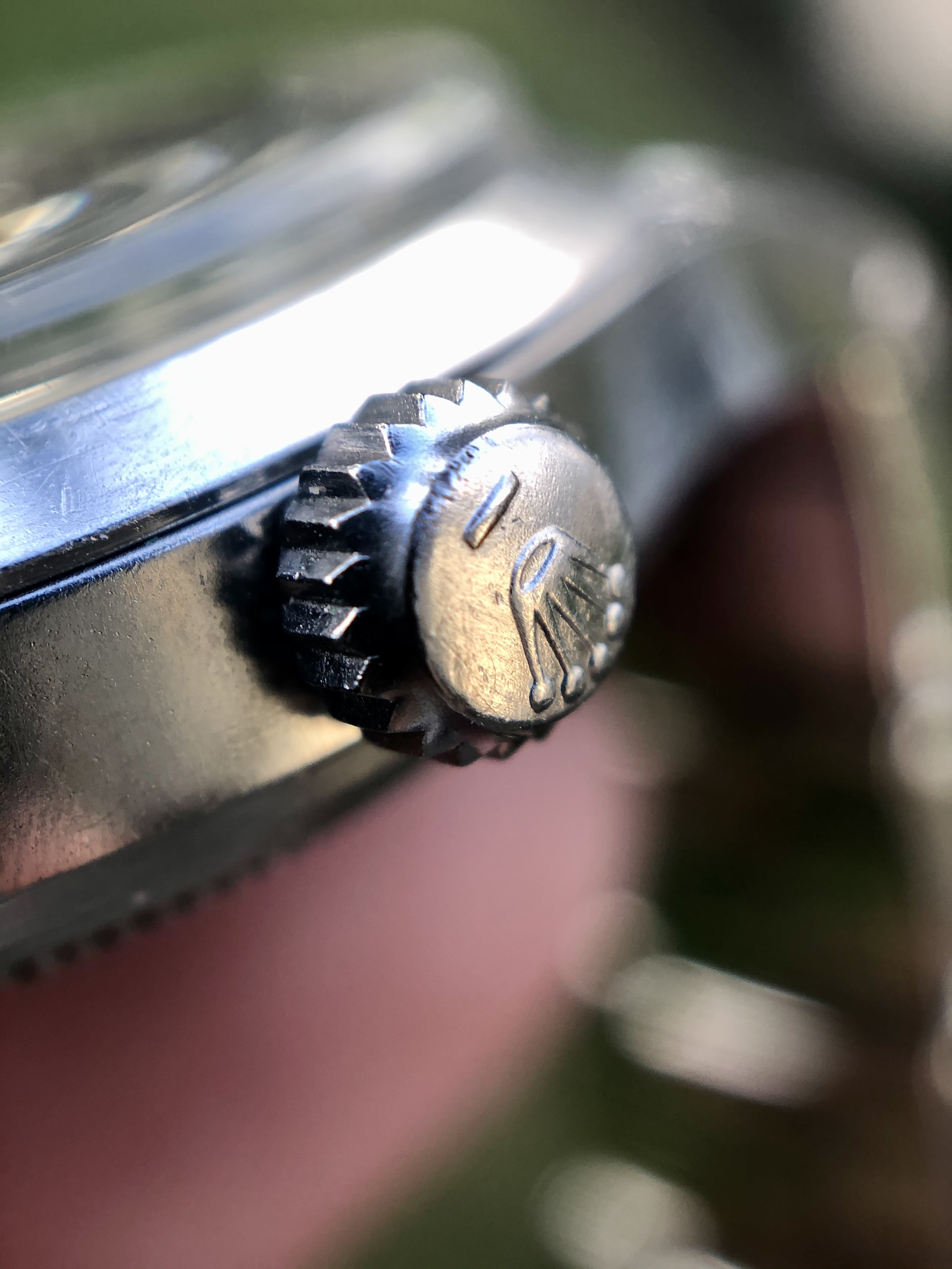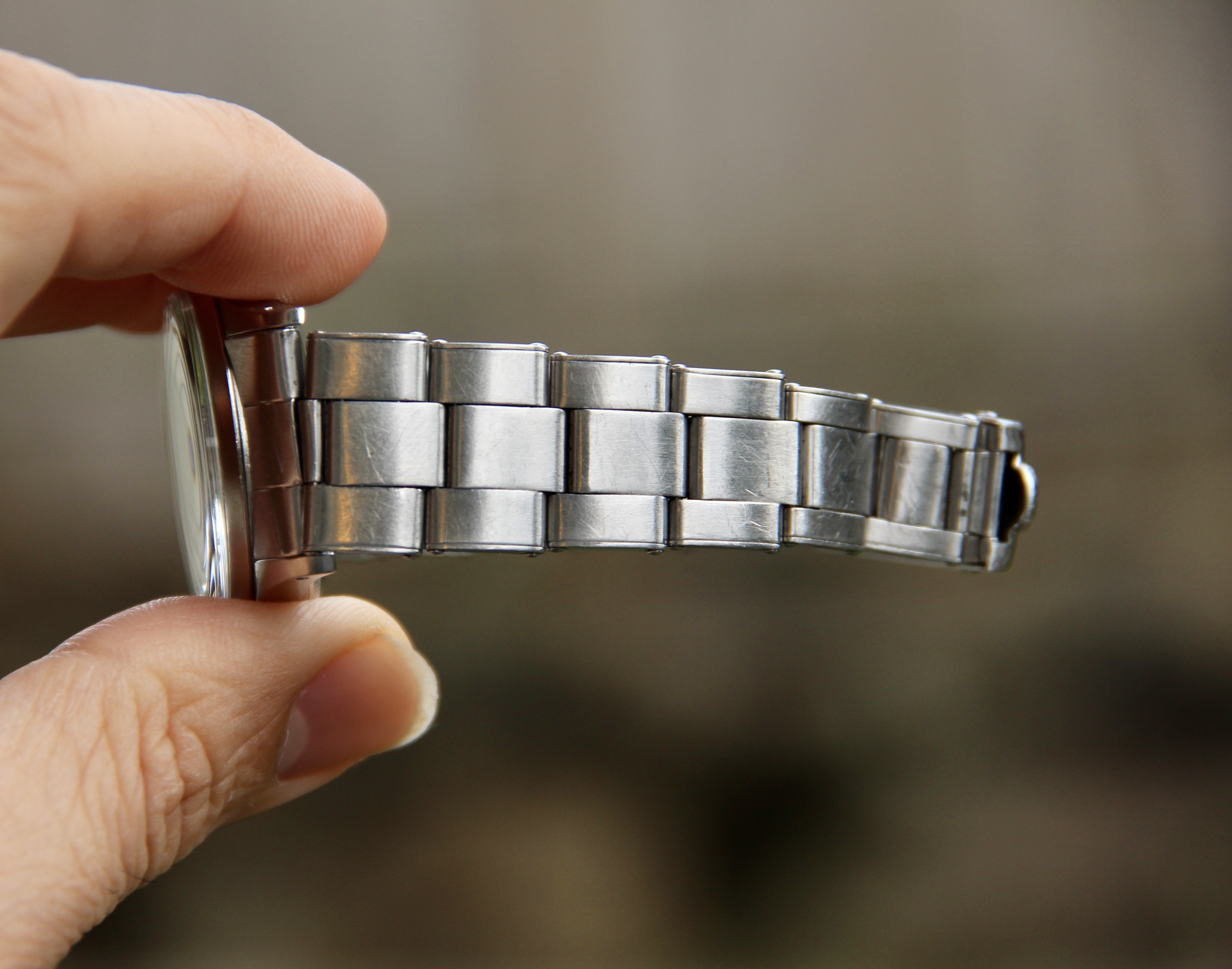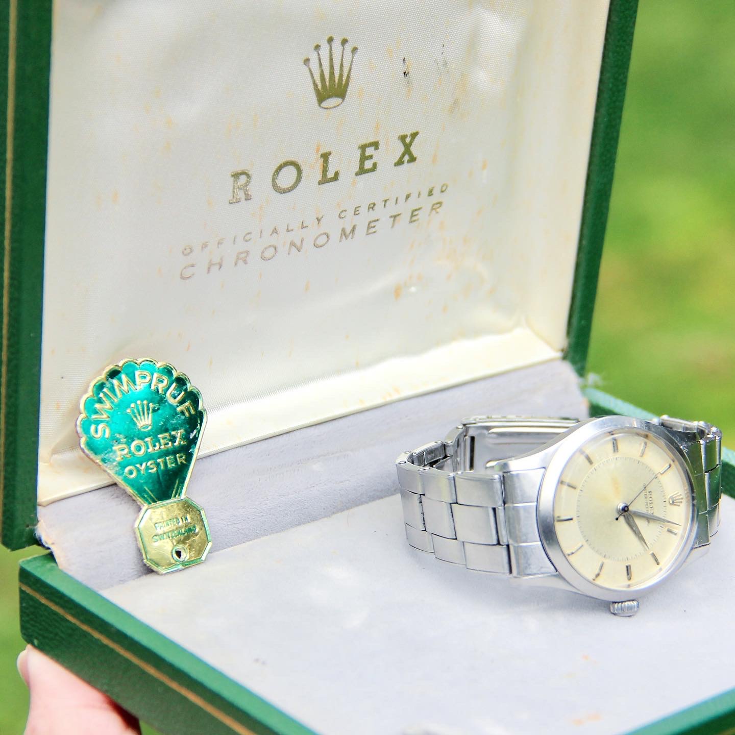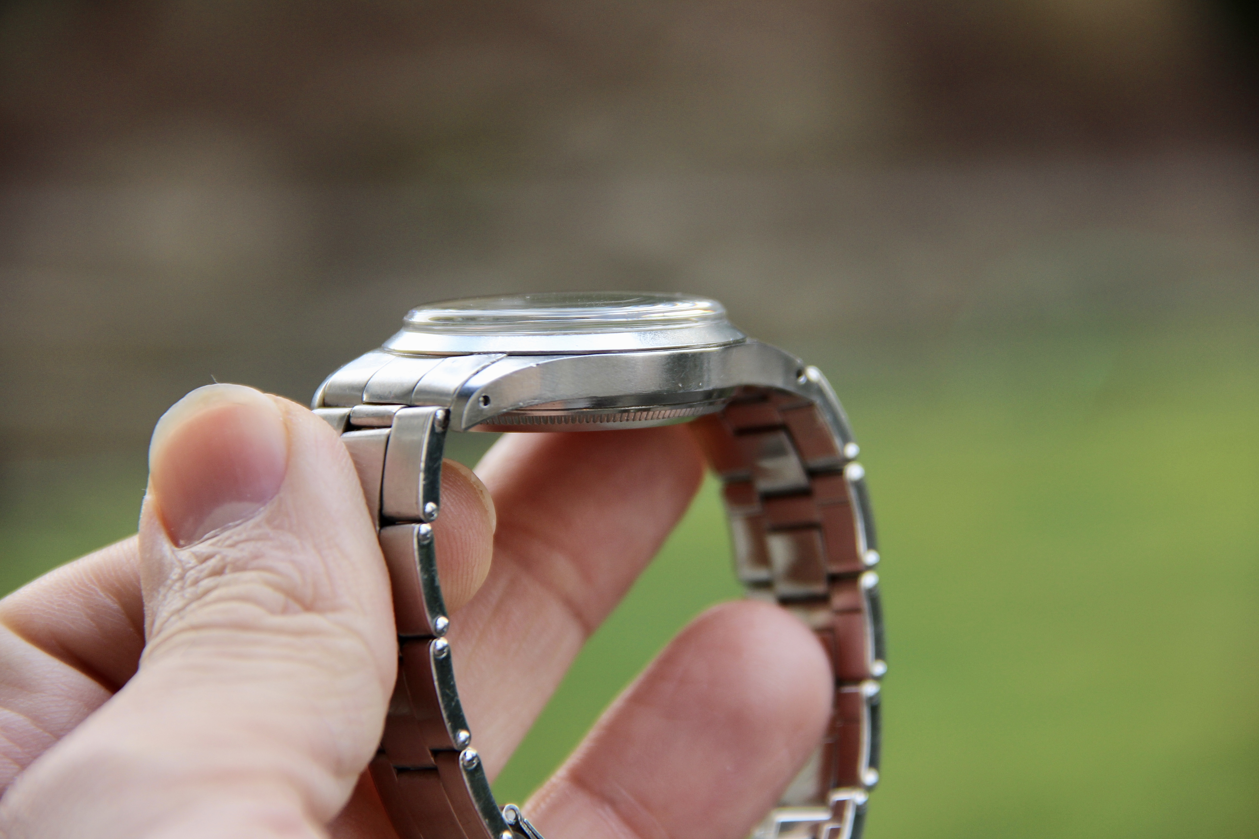 Serial number of this watch is 363XXX which dates it to 1958. Caseback is engraved 6532 and with IV.58 (fourth quarter 1958). Bracelet is a rivet style, clasp has ‘1-58’ date code. Movement is the automatic winding Rolex Caliber 1030 with 25 jewels. Original stainless steel case is approx 34mm in diameter and 11mm thick.