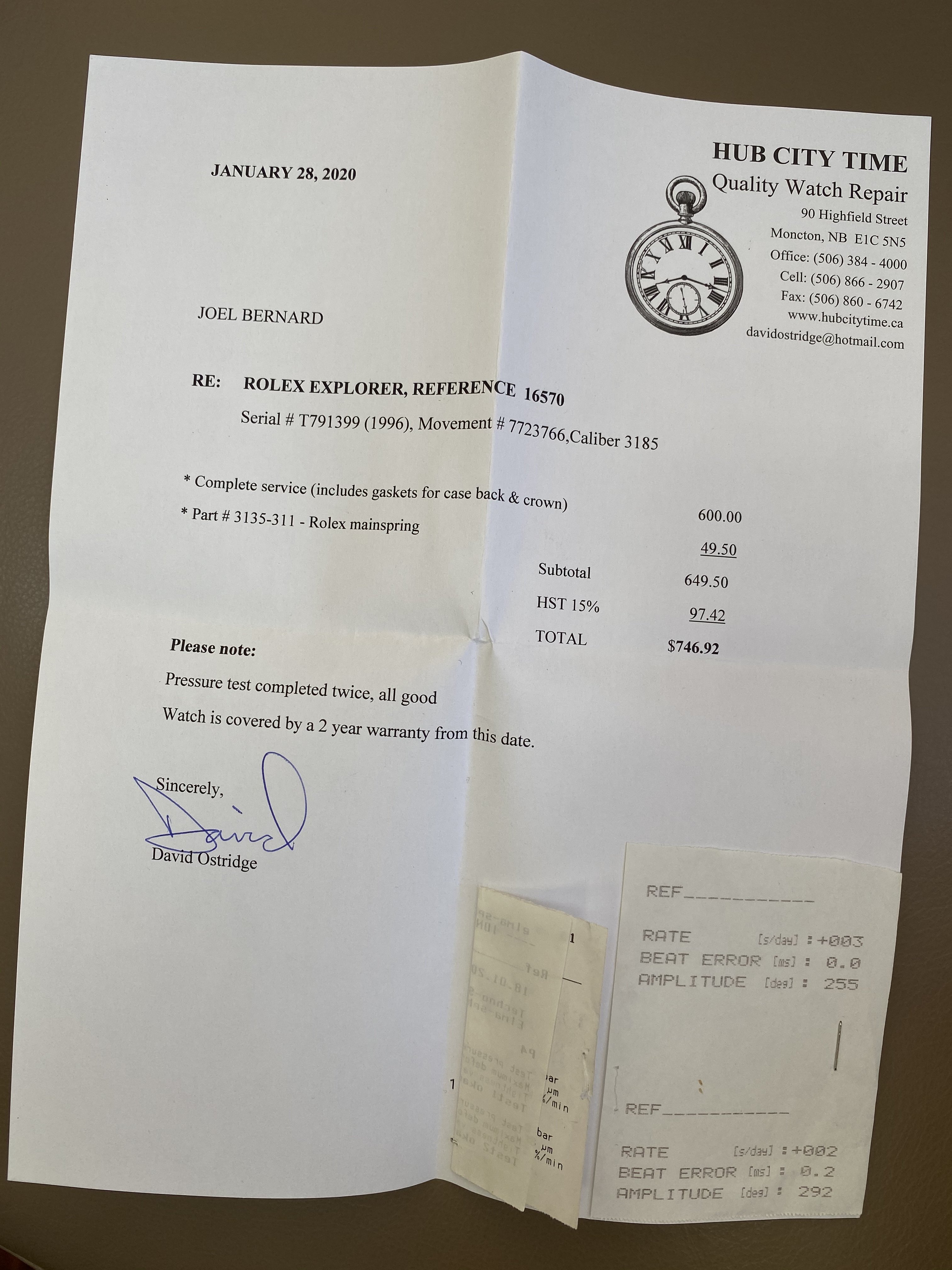 the watch comes watch only with one extra link and rolex service receipt less than one year ago where the watch underwent its first service and is running great, very accurate. Only thing replaced was the mainspring and general movement service