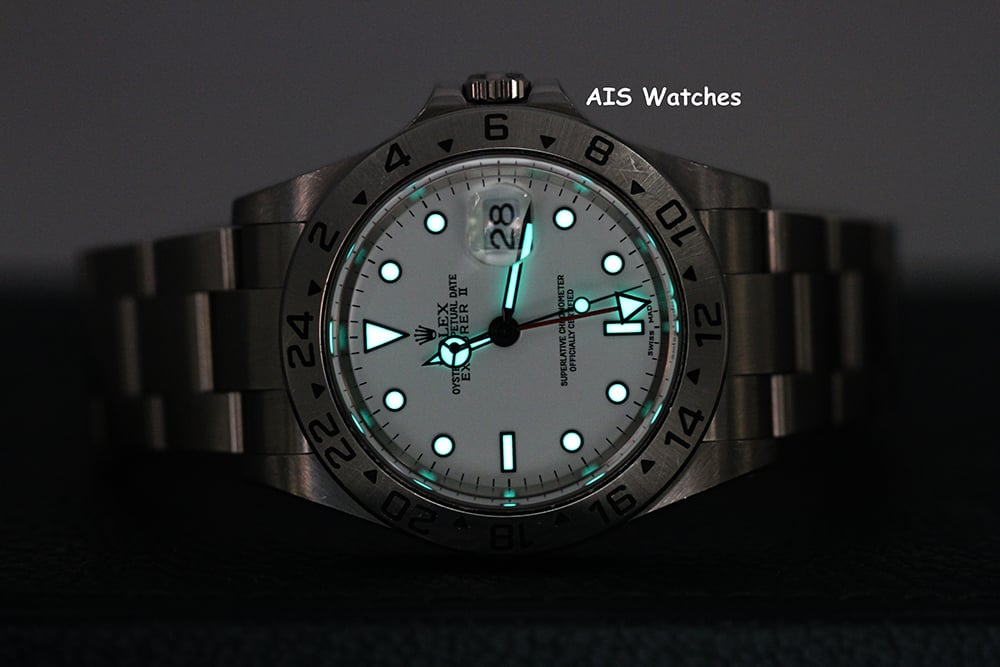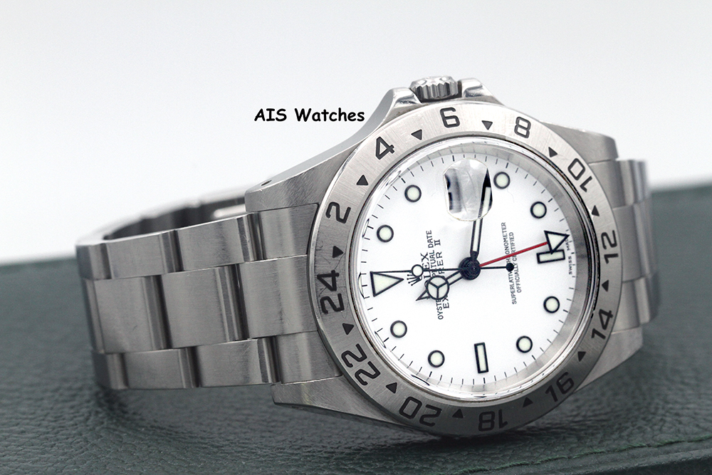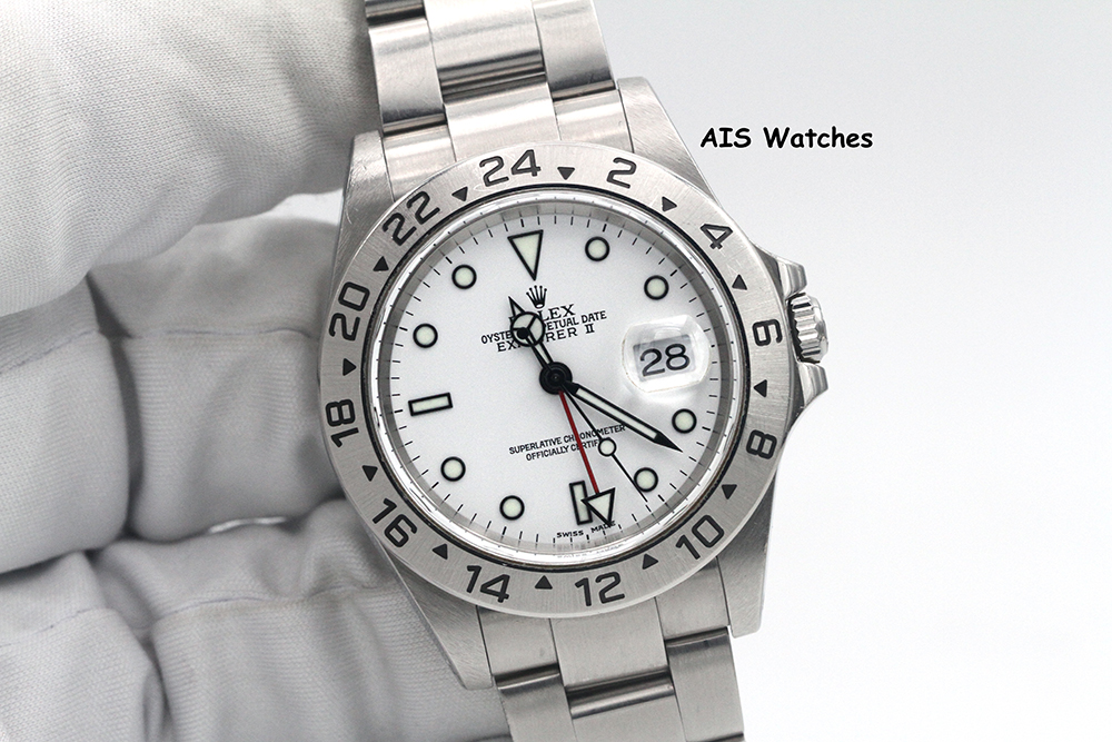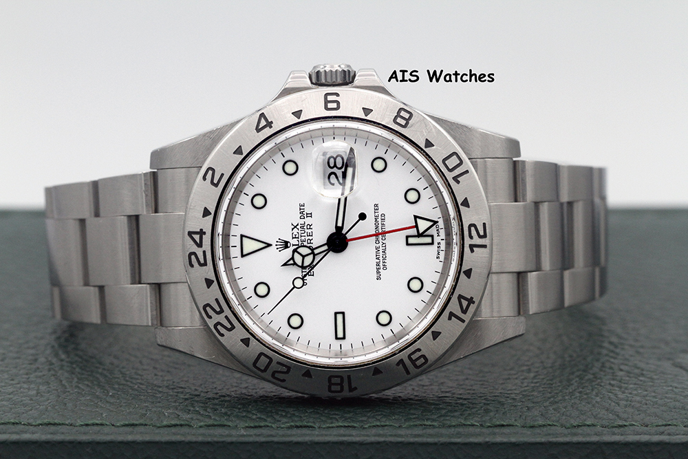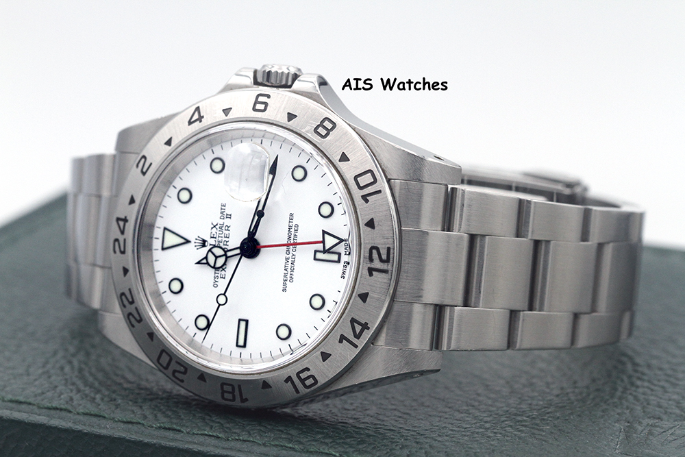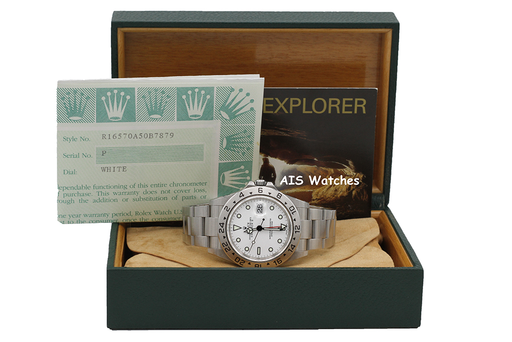 Up for sale is a Rolex Polar Explorer II 16570 with White Dial Box & Papers. This watch is a P Serial with Lug Hole Case and Solid End Links (SEL). The timepiece has minimal bracelet stretch and in excellent condition.