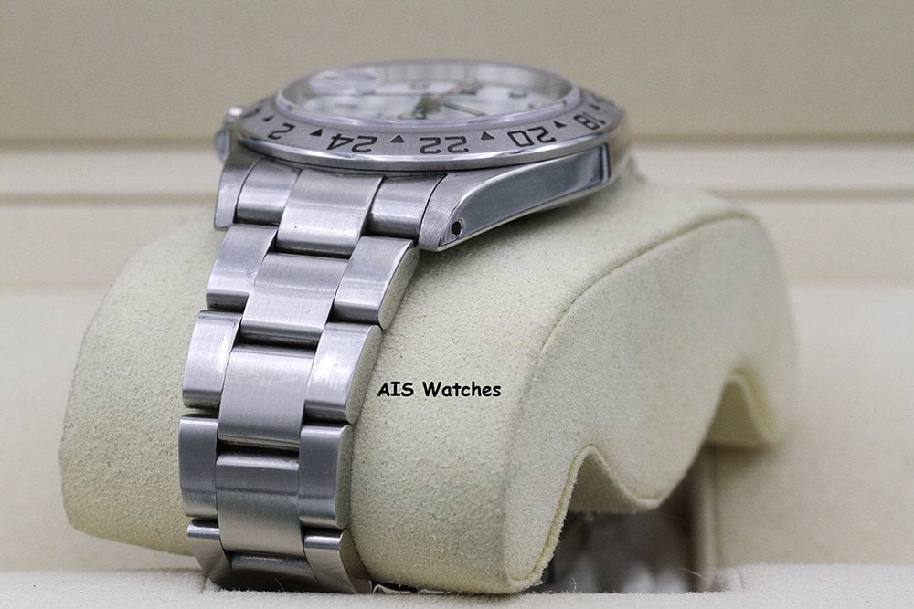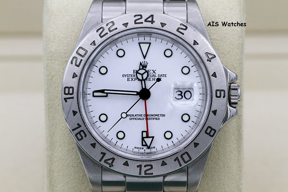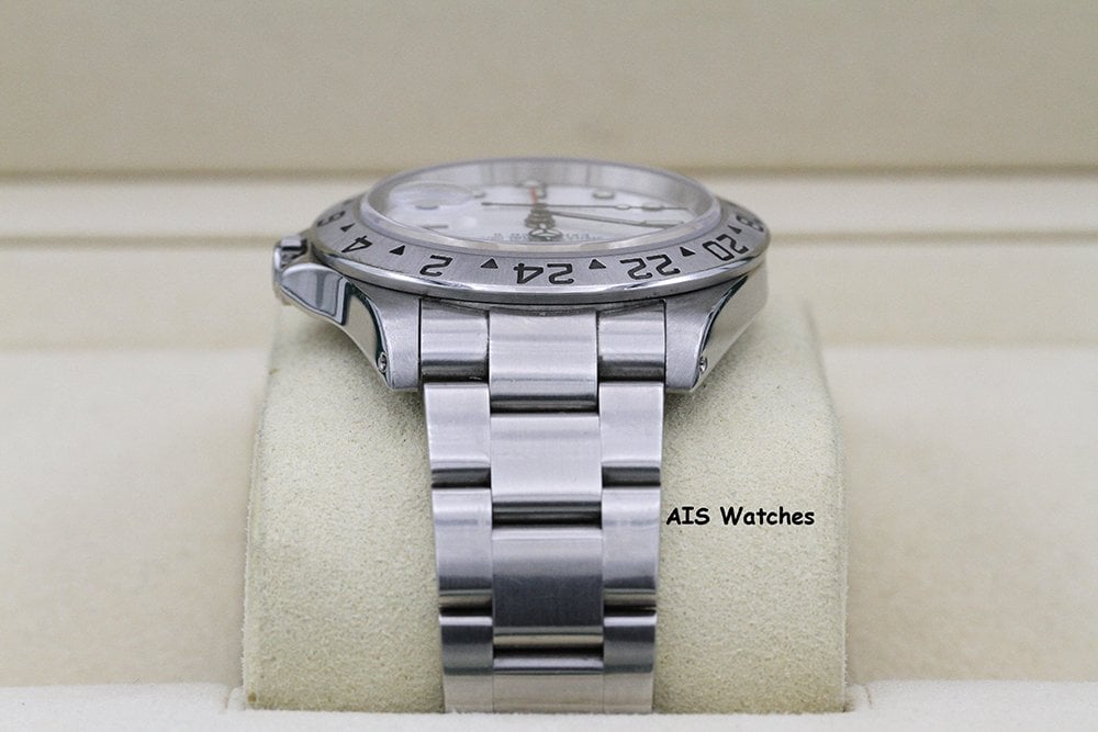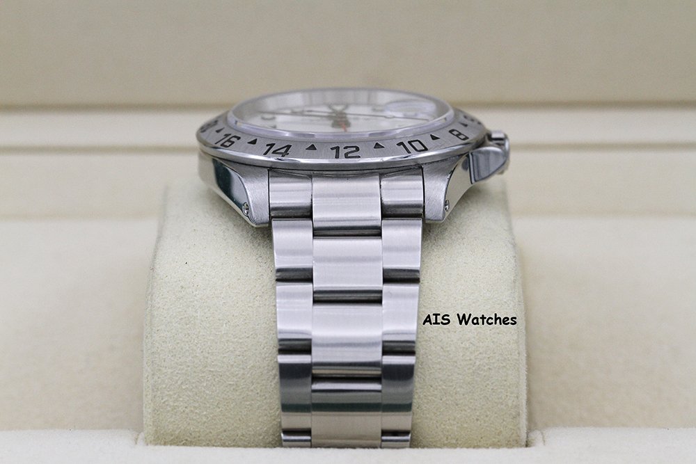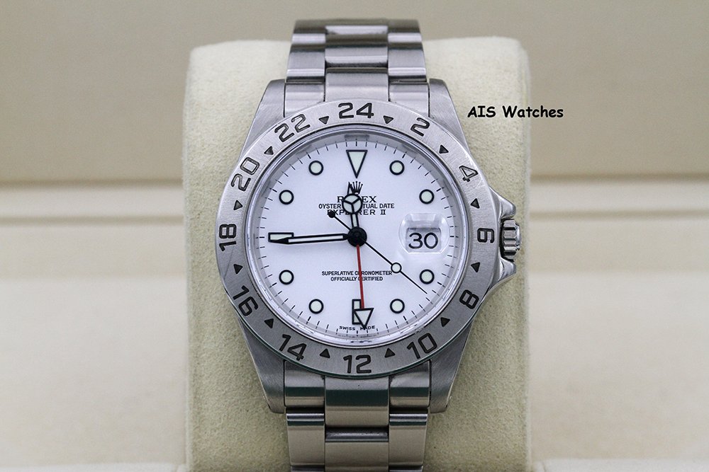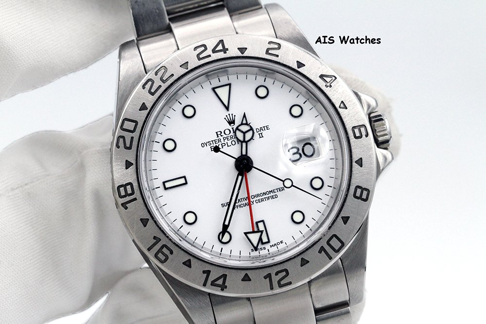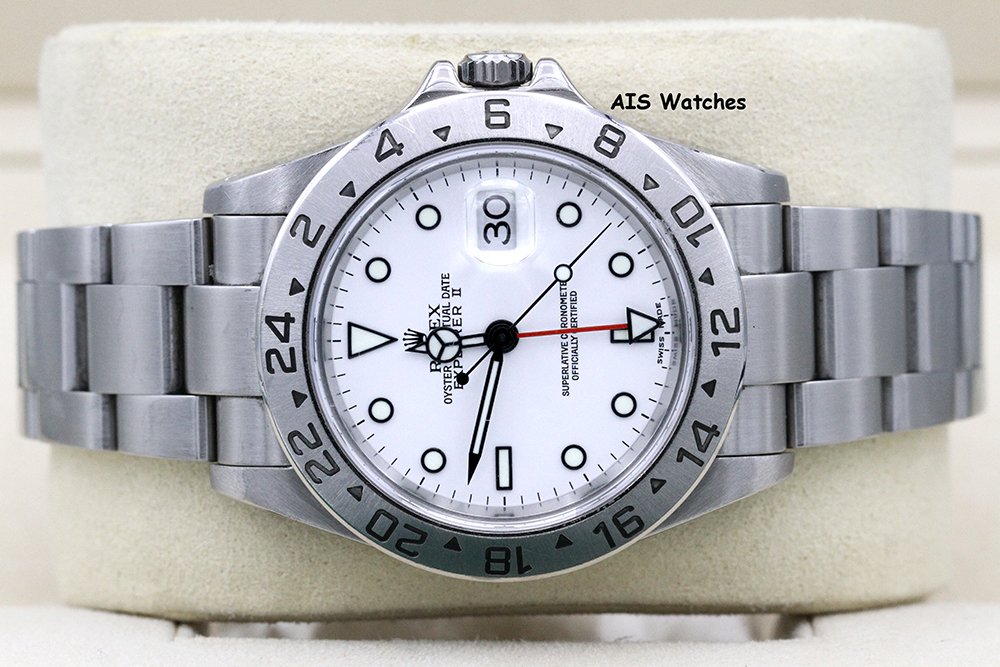 Up for sale is a Rolex Polar Explorer II 16570 with White Dial RSC + Box & Papers. This watch is a Y Serial with Lug Hole Case and Solid End Links (SEL). The timepiece has minimal bracelet stretch and is in excellent condition.