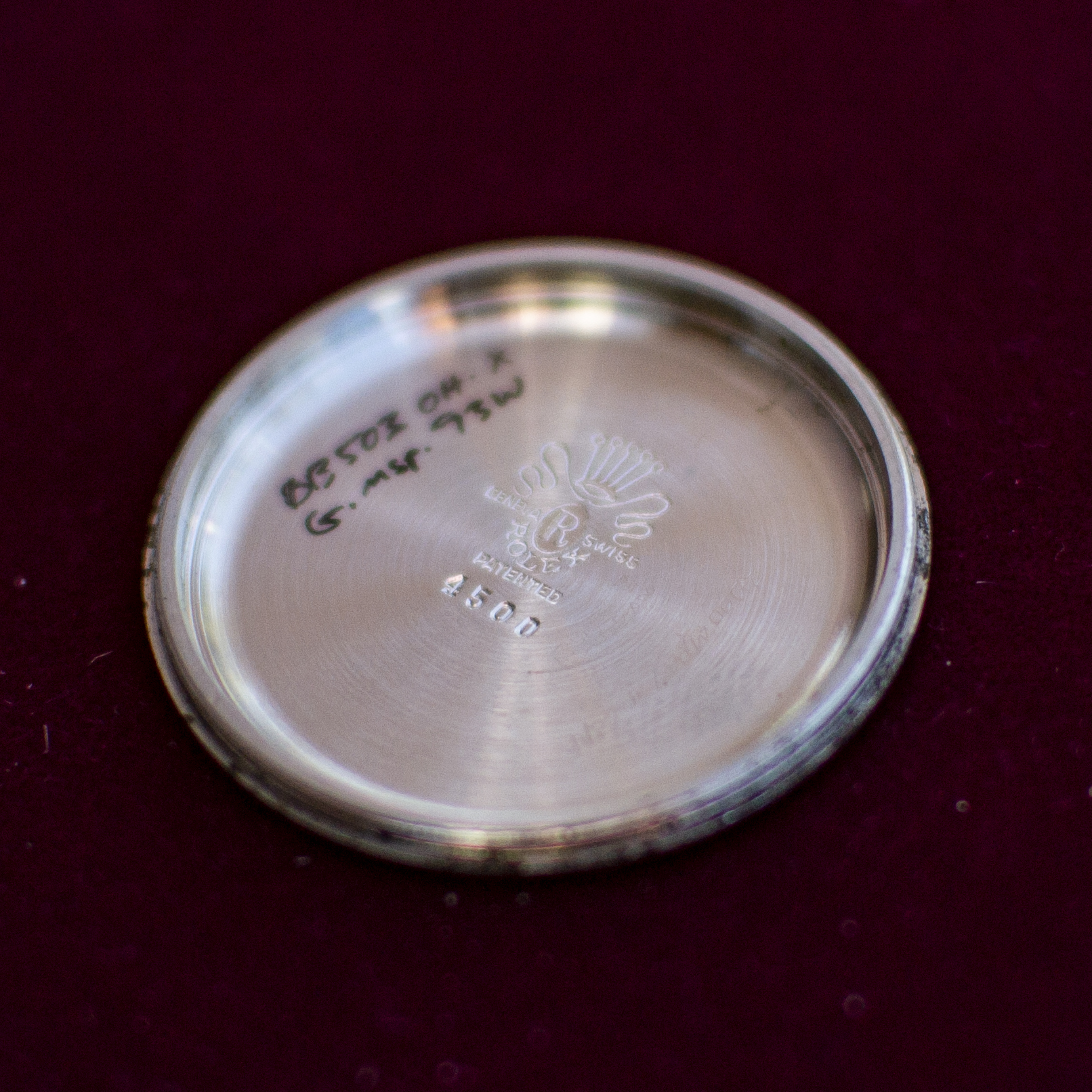 The case back, unfortunately, was replaced with a similar but incorrect case back meant for a reference 4500. This is obvious by the inner case back marking.