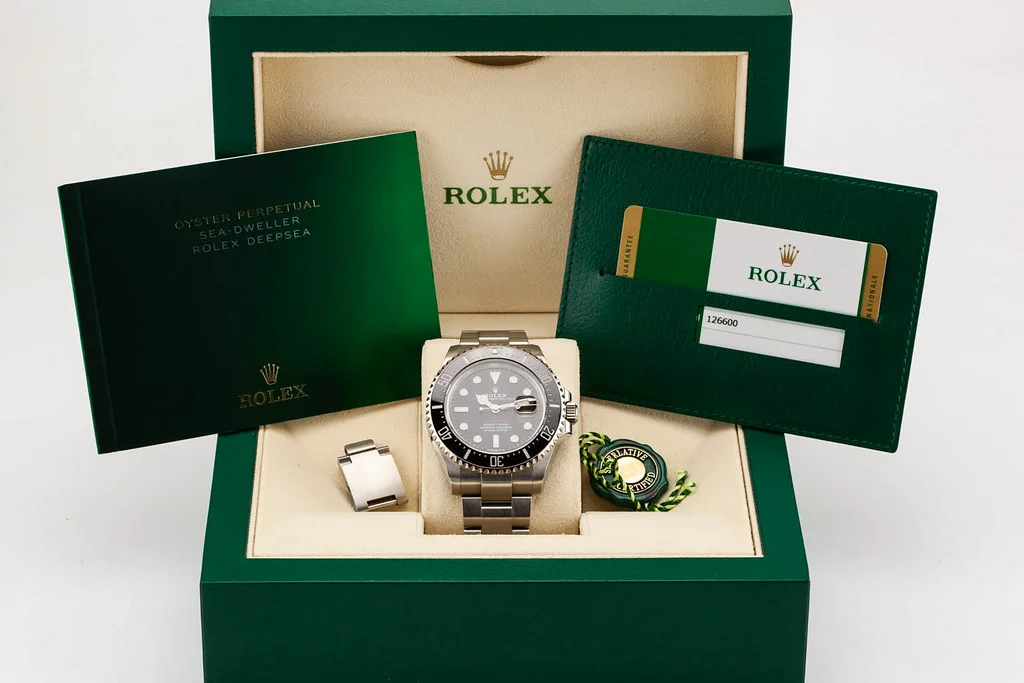 ·Up for sale is an excellent condition Rolex Sea-Dweller 43mm on Stainless Steel Bracelet, reference # 126600. It comes with all boxes, papers, booklets, hang tag, diver extension and Rolex Warranty Card dated July 2019.
