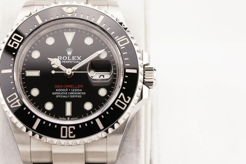 ·Up for sale is an excellent condition Rolex Sea-Dweller 43mm on Stainless Steel Bracelet, reference # 126600. It comes complete with all boxes, papers, booklets, hang tags, bezel guard, diver extension and Rolex Warranty Card dated May 2021. Rolex Service note indicates an original part swapped during service.