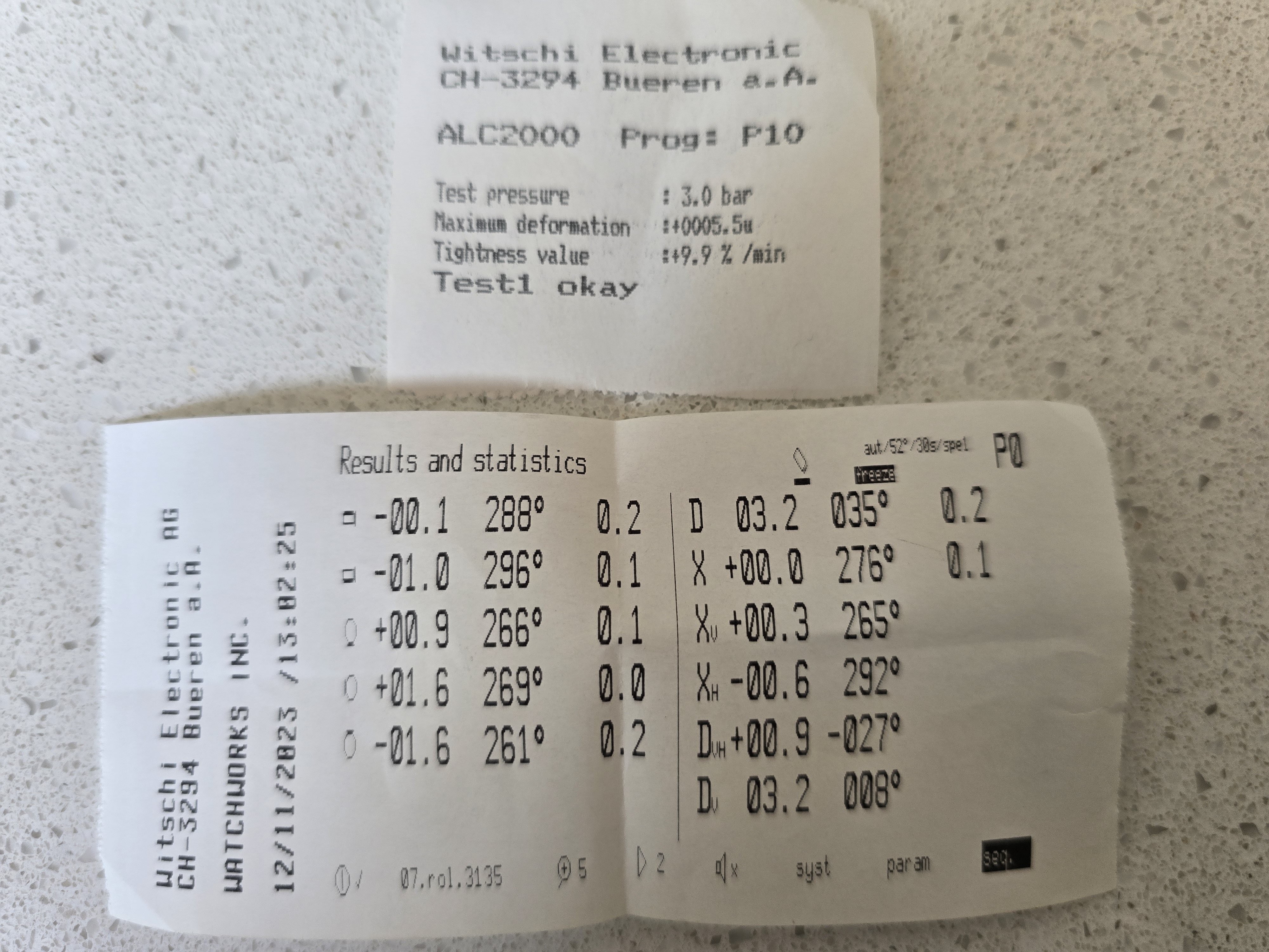 Timing and pressure test results in photos.