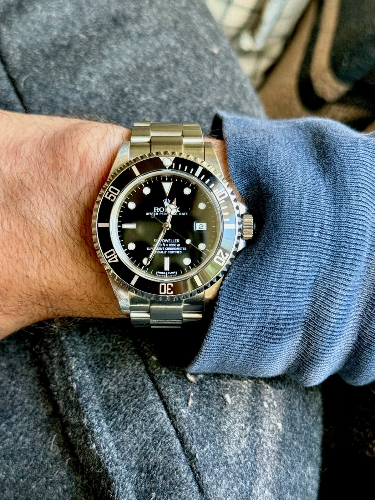 ··"I cut it TWICE and it's still short!"Rolex 40mm Sea-Dweller, Black Dial, Oyster Bracelet, Ref. 16600, circa 2006.