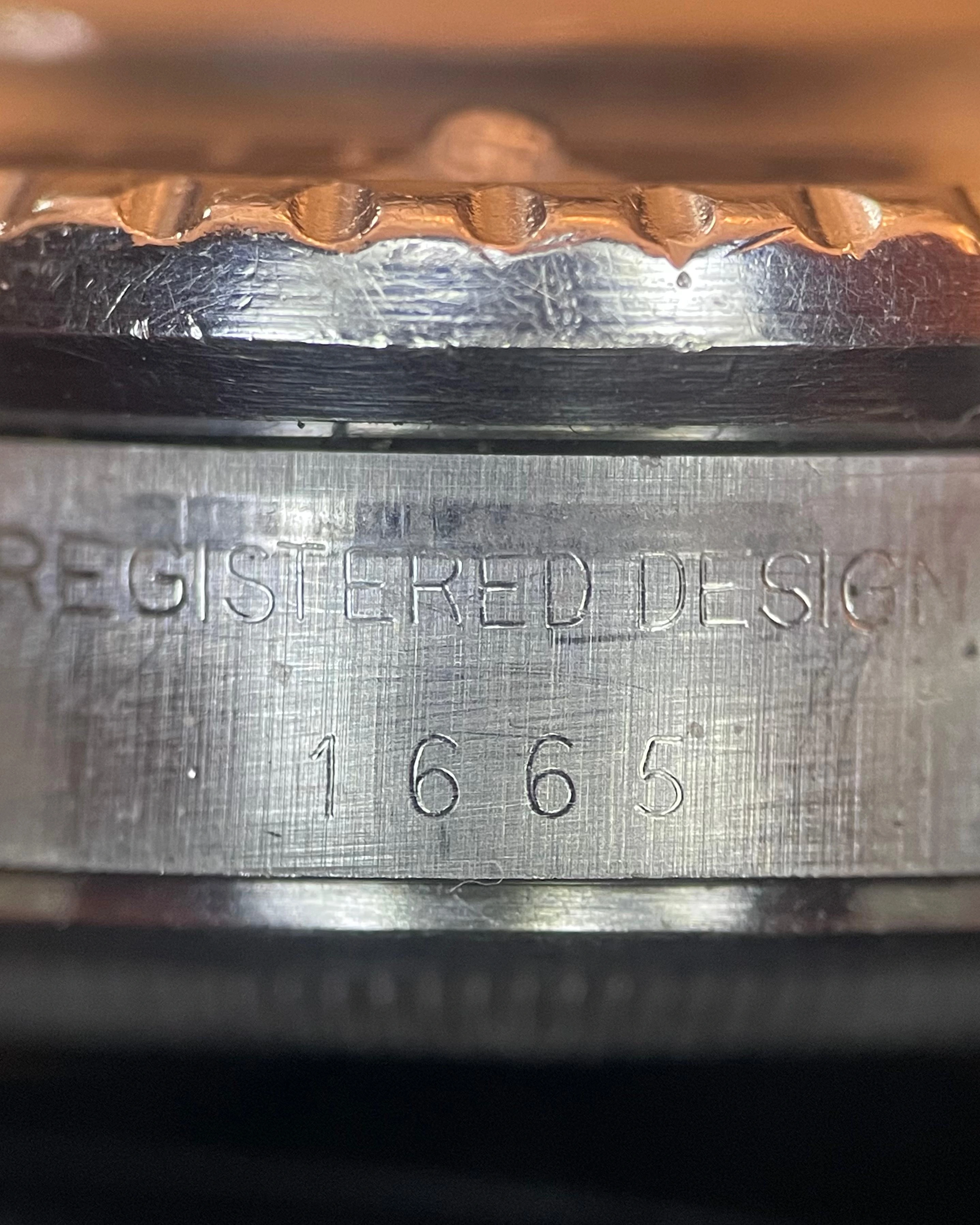 This example of the Sea-Dweller ref. 1665 follows the ten-year production of the Double Red Sea-Dweller (1967–1977).