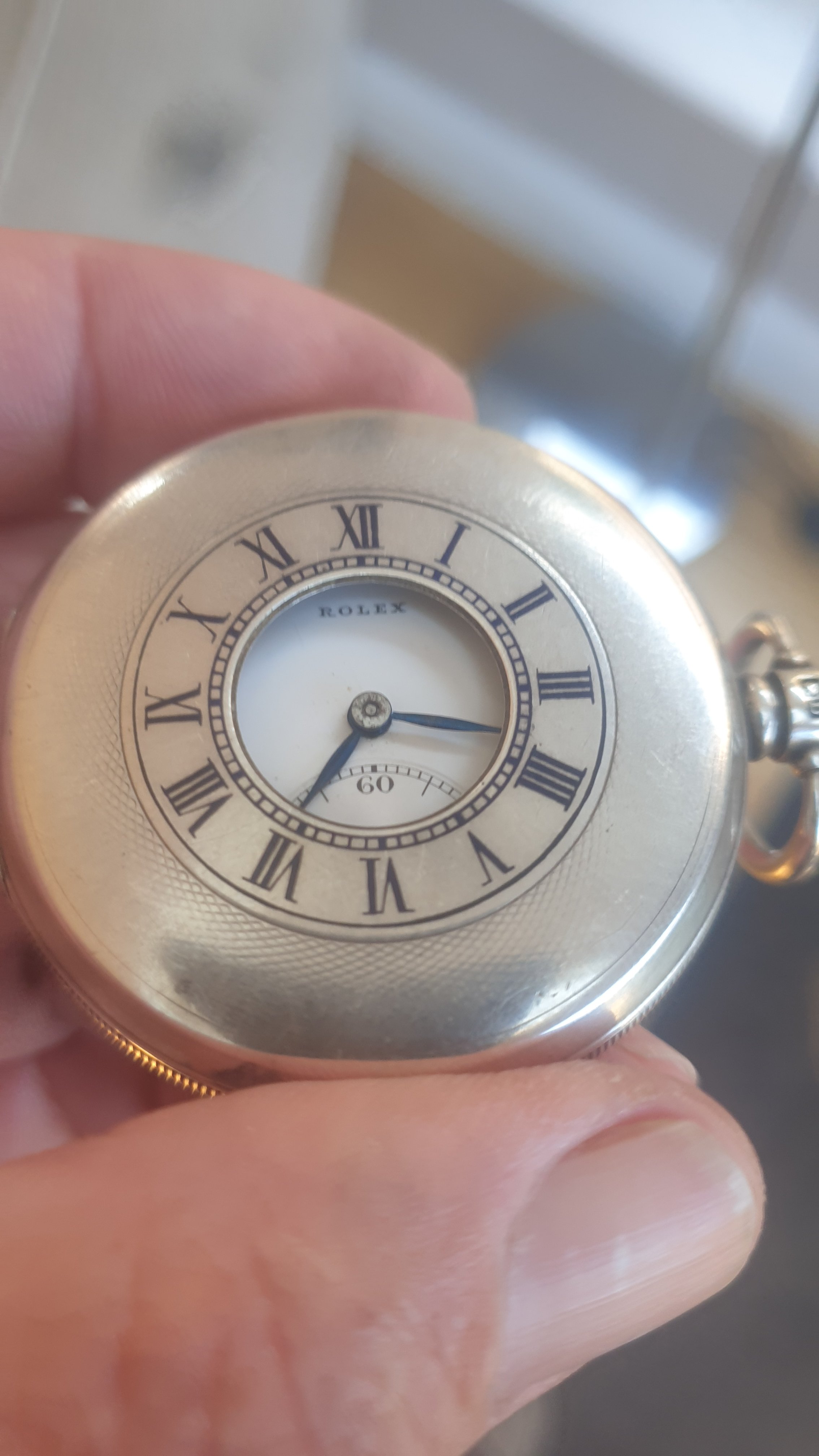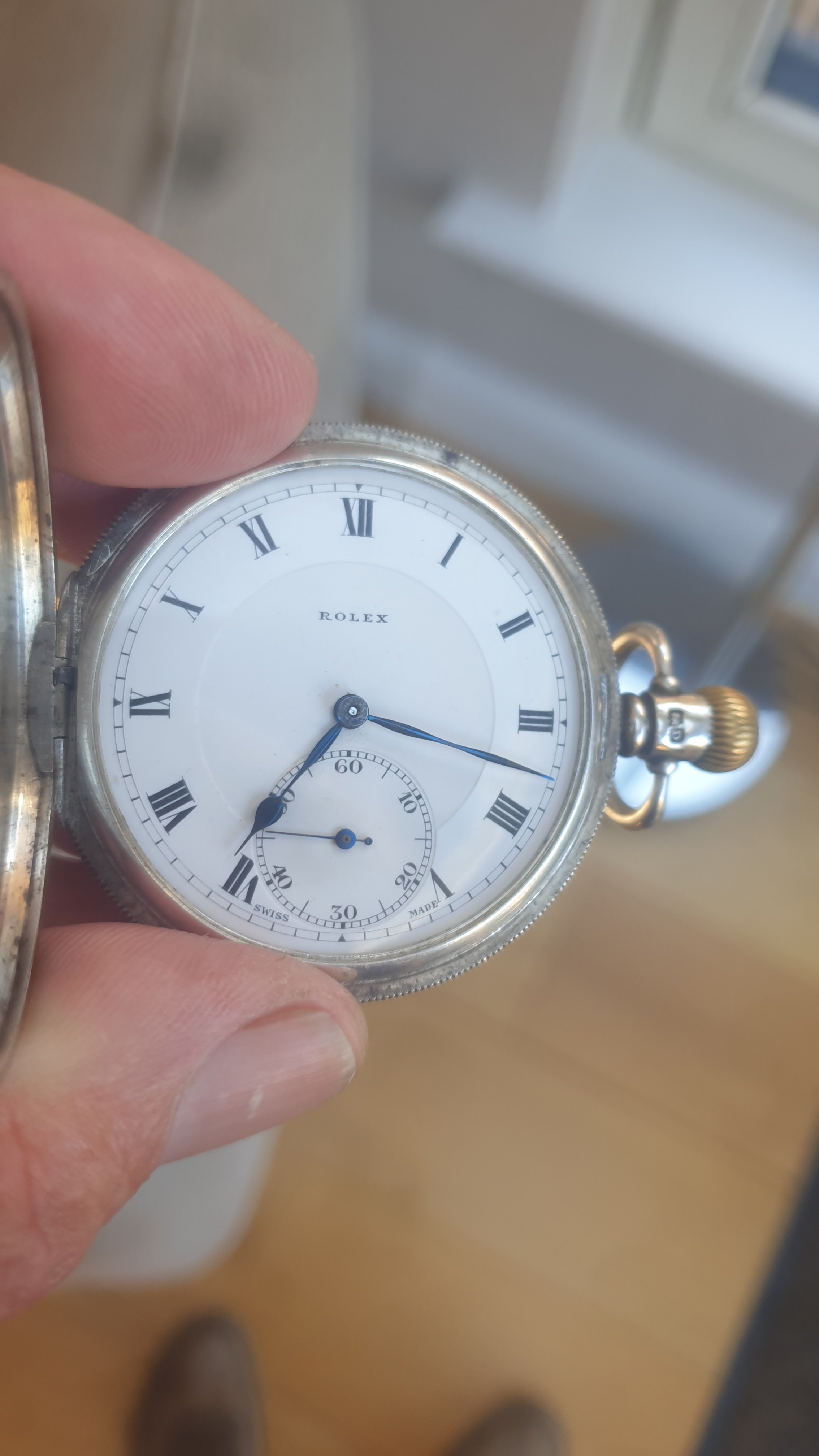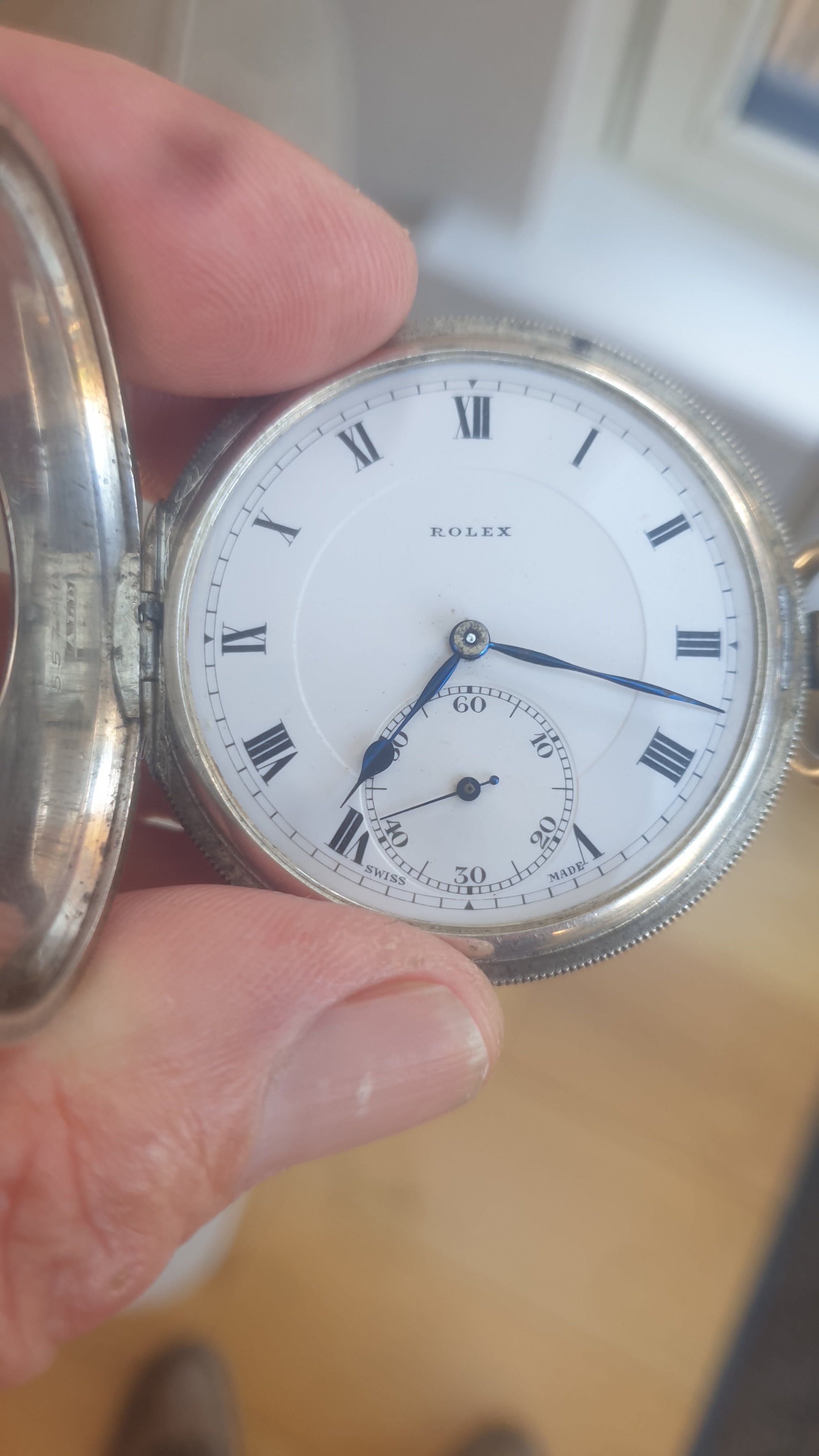 ·Rolex Solid Silver Half Hunter pocket watch for sale. Dennison cased , dating from 1928 according to the hallmarks. Watch is in very good working condition and keeps good time. Watch is missing its glass but this is an easy fix. I am asking 750 euros for this rare timepiece. Watch and I are Dublin Ireland based and shipping costs to be discussed. Thanks to OF for the platform and thanks for looking.