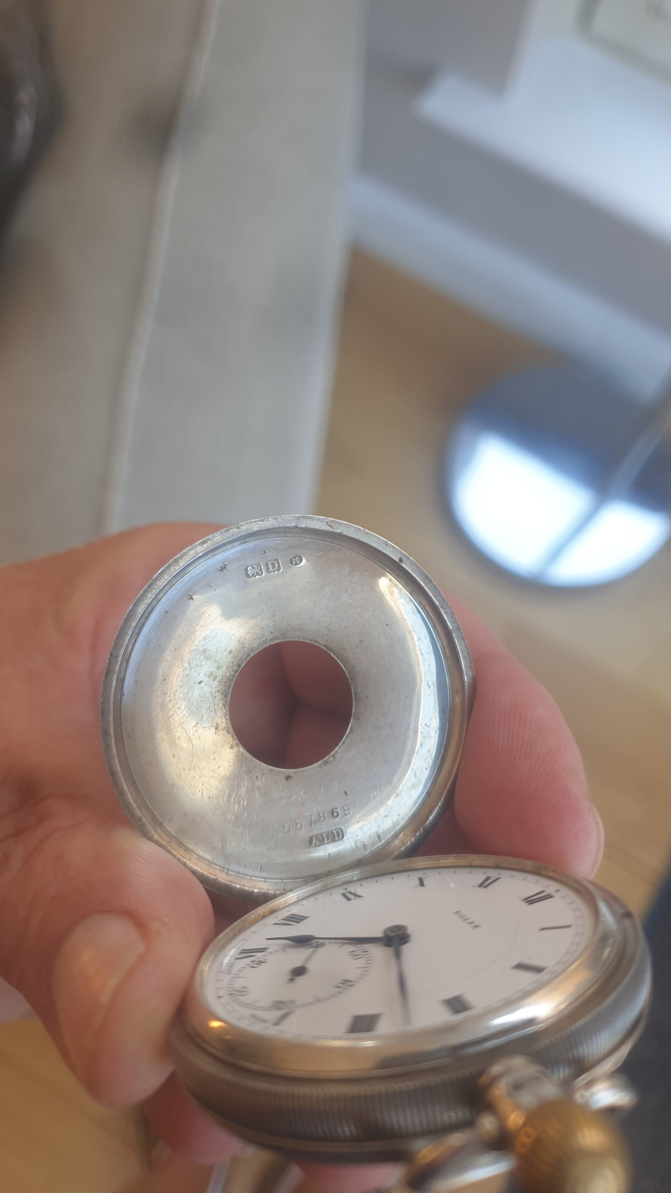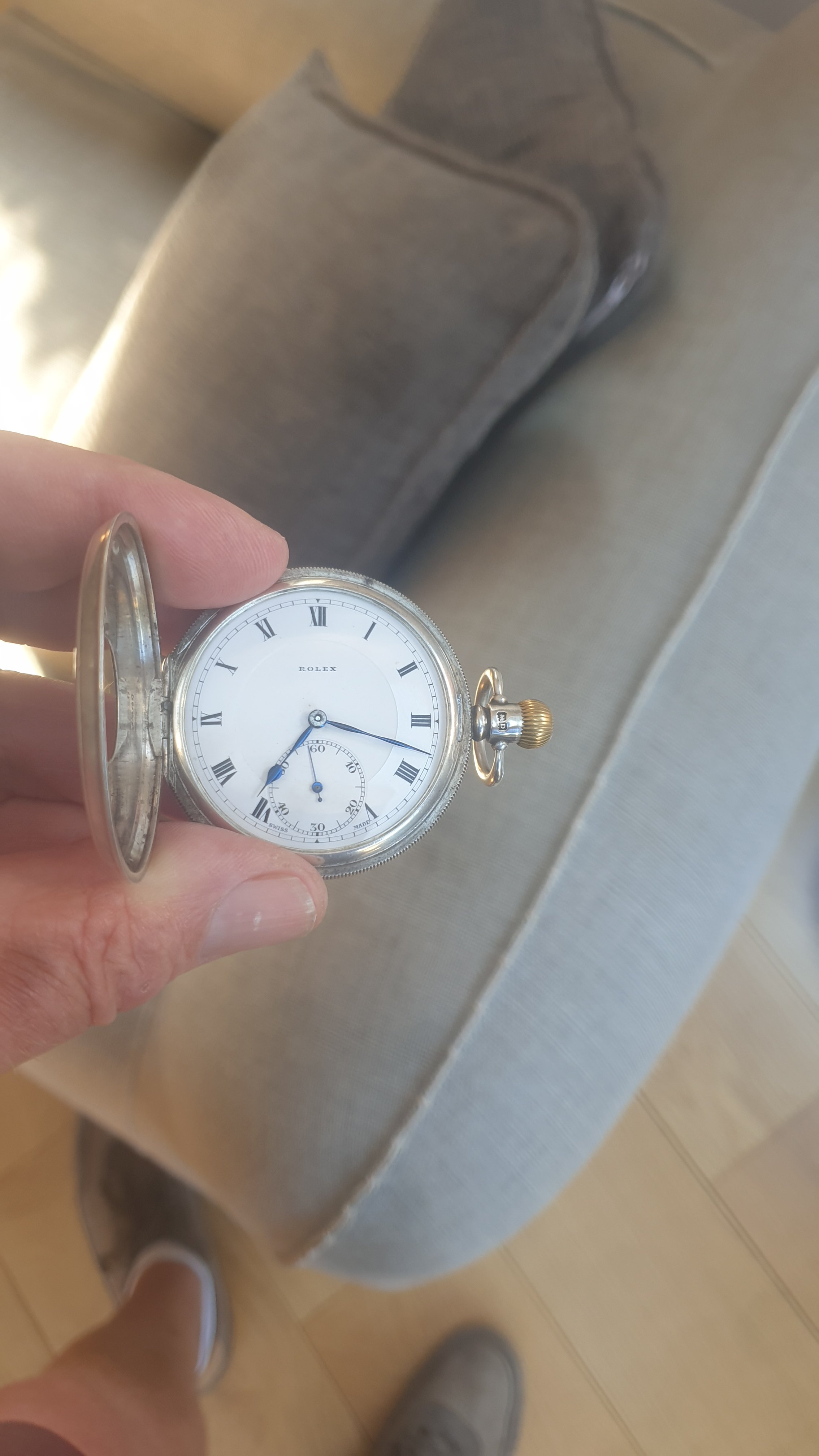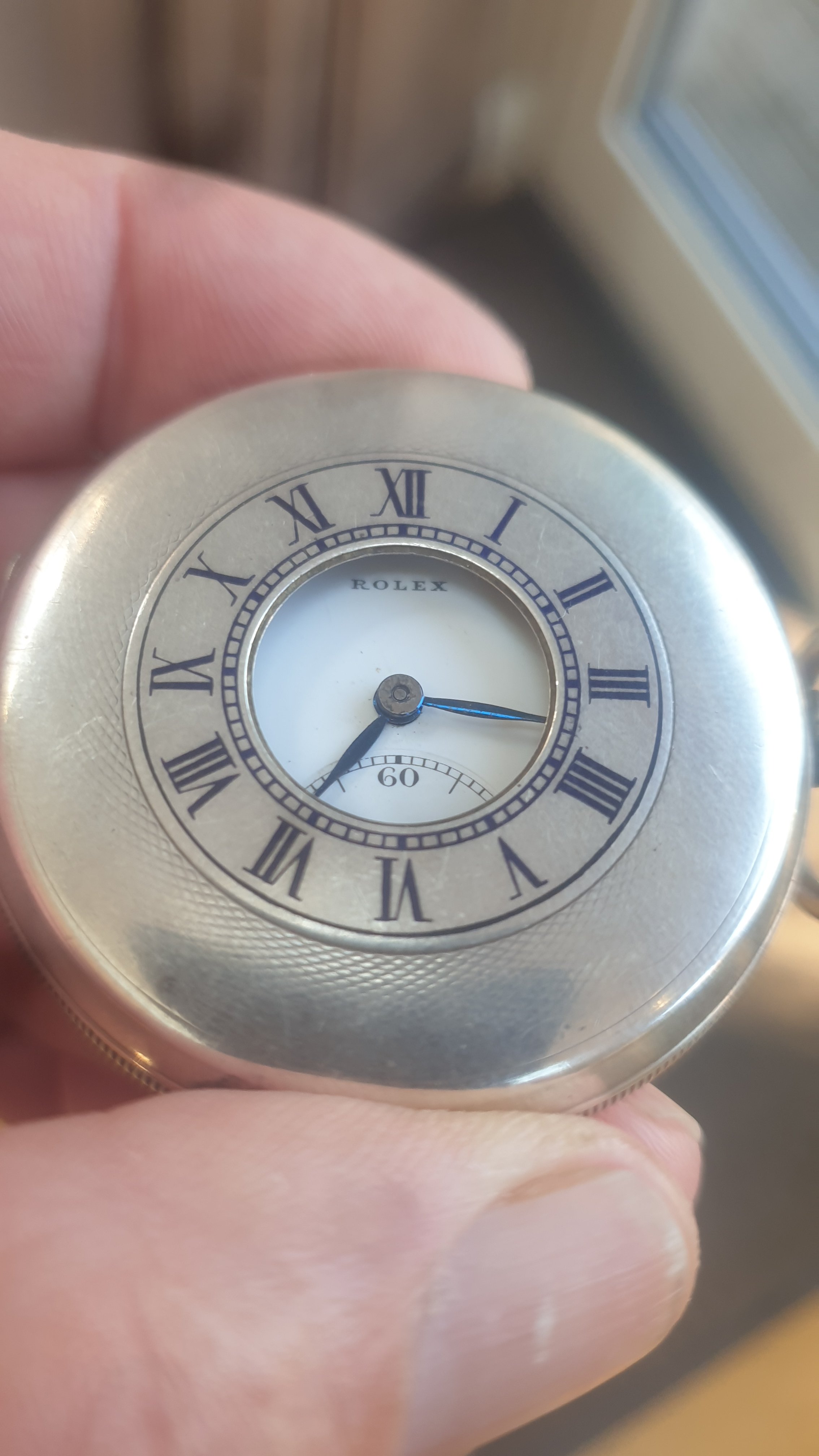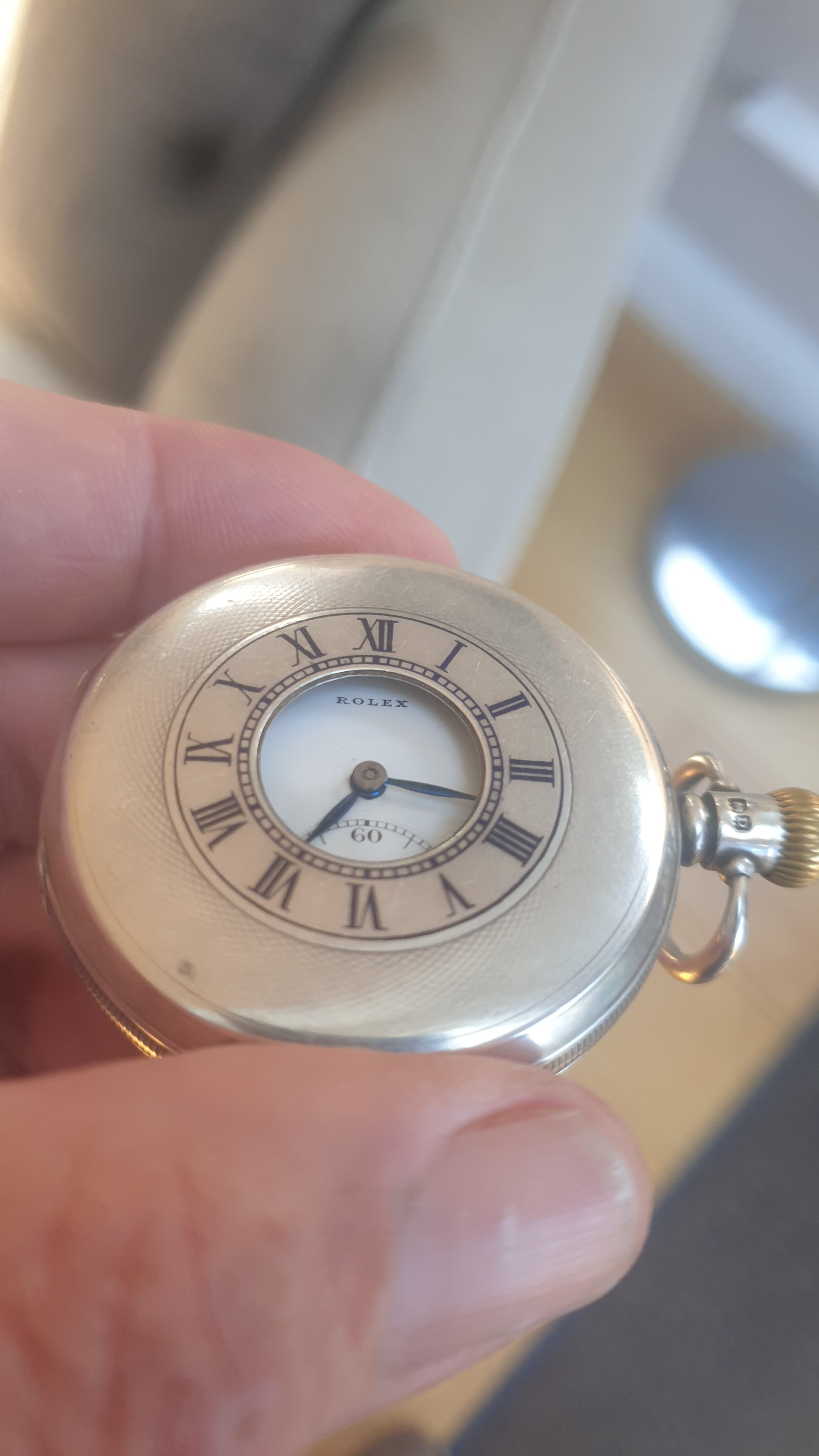 ·Rolex Solid Silver Half Hunter pocket watch for sale. Dennison cased , dating from 1928 according to the hallmarks. Watch is in very good working condition and keeps good time. Watch is missing its glass but this is an easy fix. I am asking 750 euros for this rare timepiece. Watch and I are Dublin Ireland based and shipping costs to be discussed. Thanks to OF for the platform and thanks for looking.