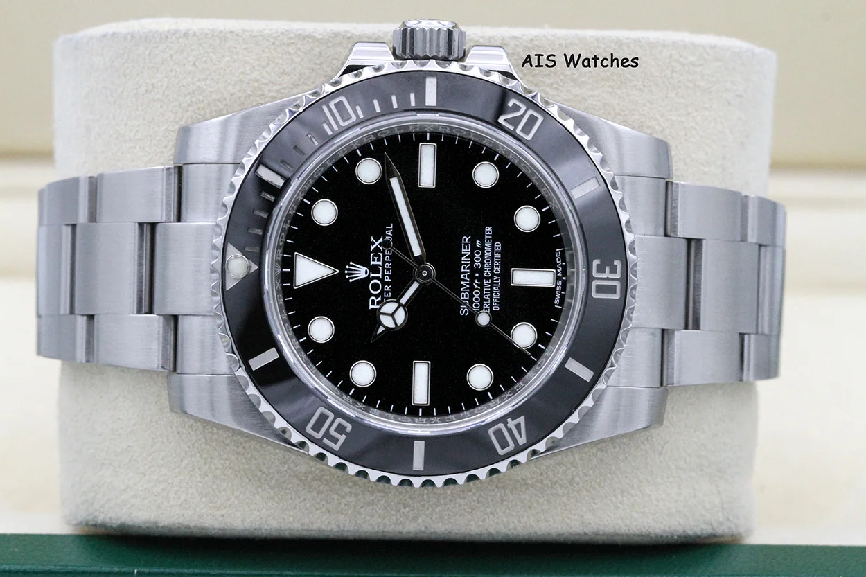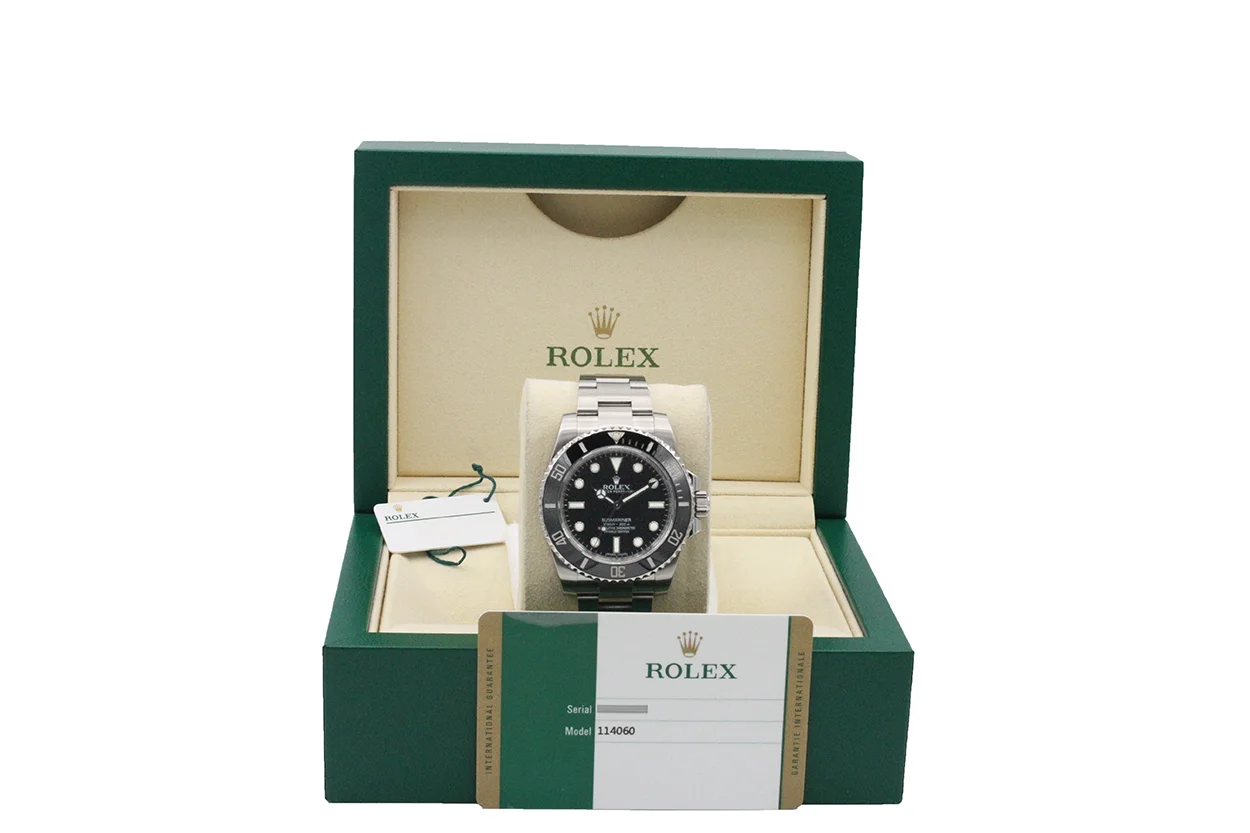 Up for sale is a Discontinued Rolex Submariner 114060 No Date 40MM Ceramic Bezel Box & Papers. The timepiece is in excellent condition.