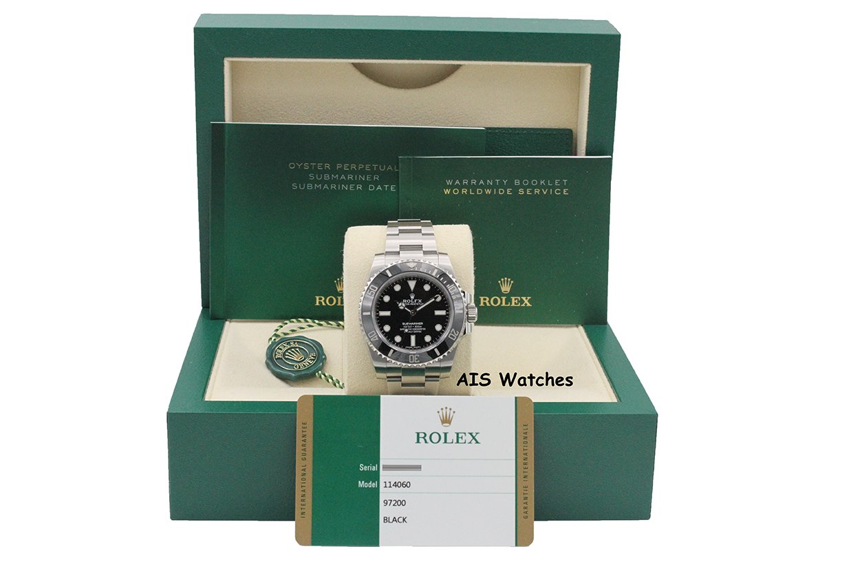 Up for sale is a Discontinued Rolex Submariner 114060 No Date 40MM Ceramic Bezel Box & Papers. The timepiece is in excellent condition.