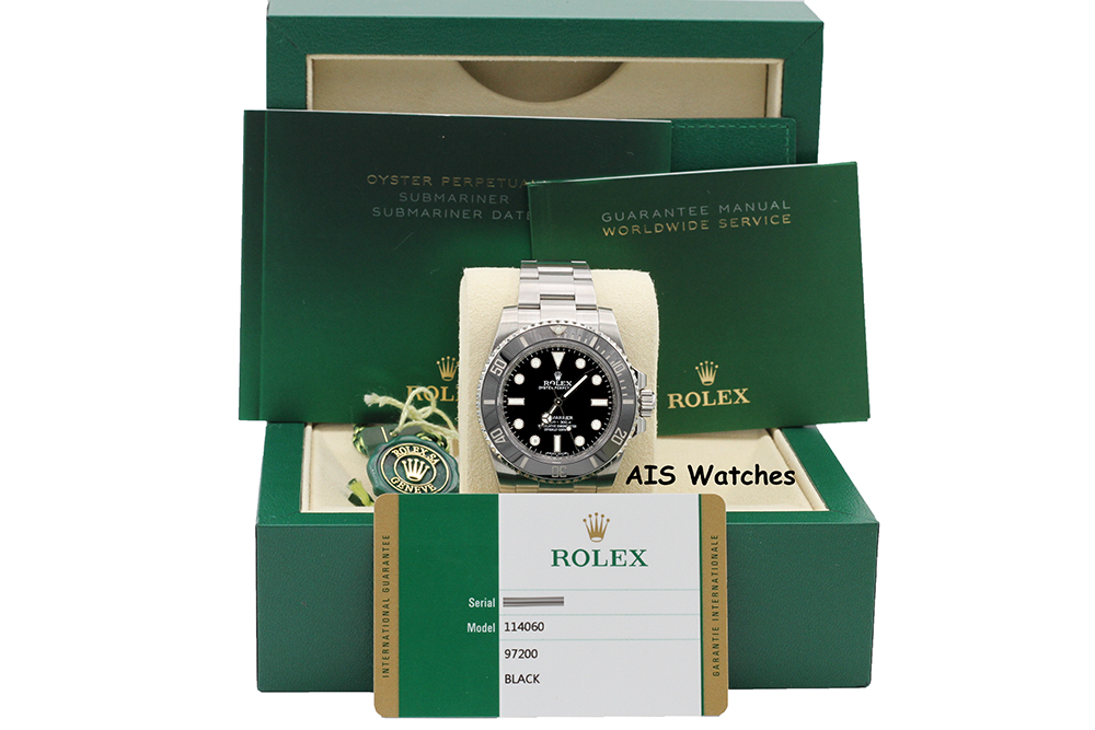 Up for sale is a Discontinued Rolex Submariner 114060 No Date Ceramic Bezel Box & Papers. The timepiece is in excellent condition.