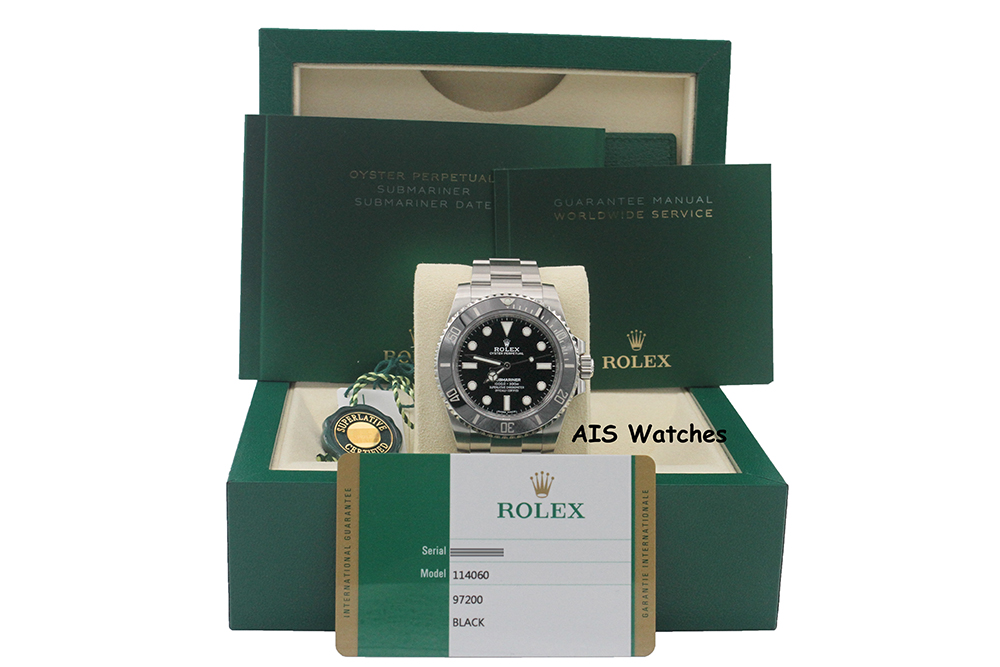 Up for sale is a Discontinued Rolex Submariner 114060 No Date Ceramic Bezel Box & Papers. The timepiece is in excellent condition.