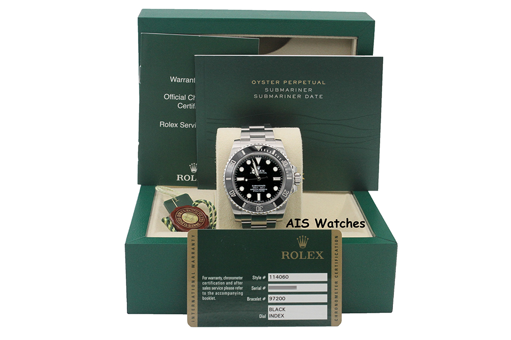 Up for sale is a Discontinued Rolex Submariner 114060 No Date Ceramic Bezel Box & Papers. The timepiece is in excellent condition.
