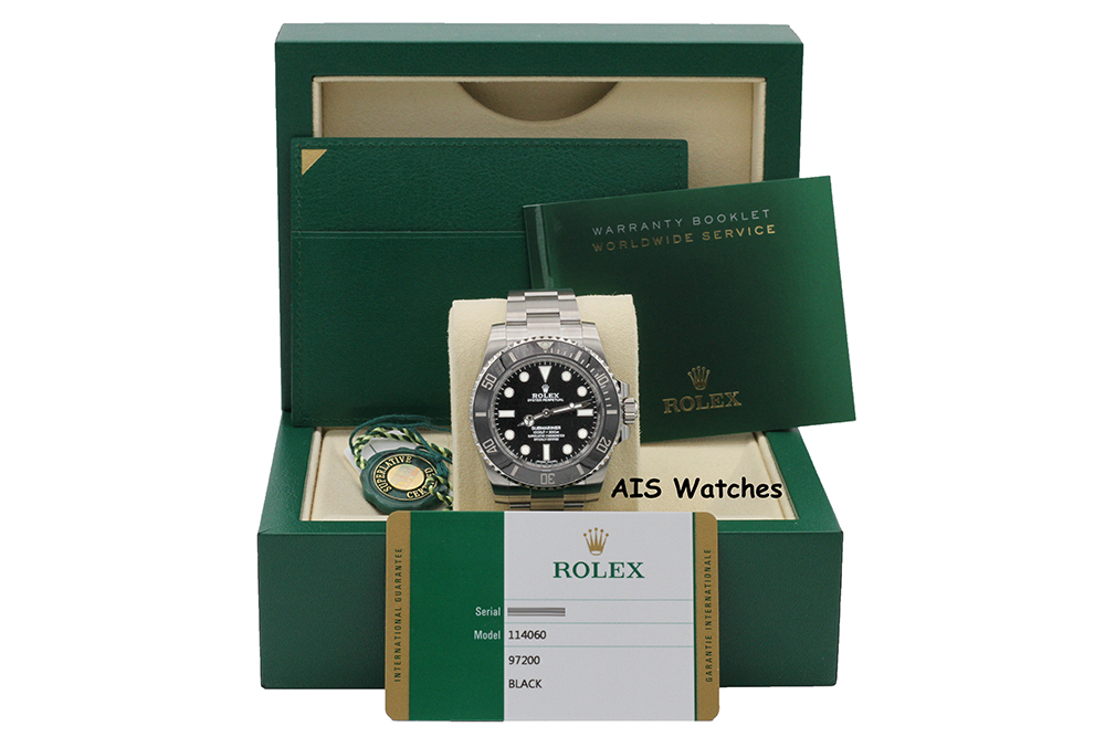 Up for sale is a Discontinued Rolex Submariner 114060 No Date Ceramic Bezel Box & Papers. The timepiece is in excellent condition.