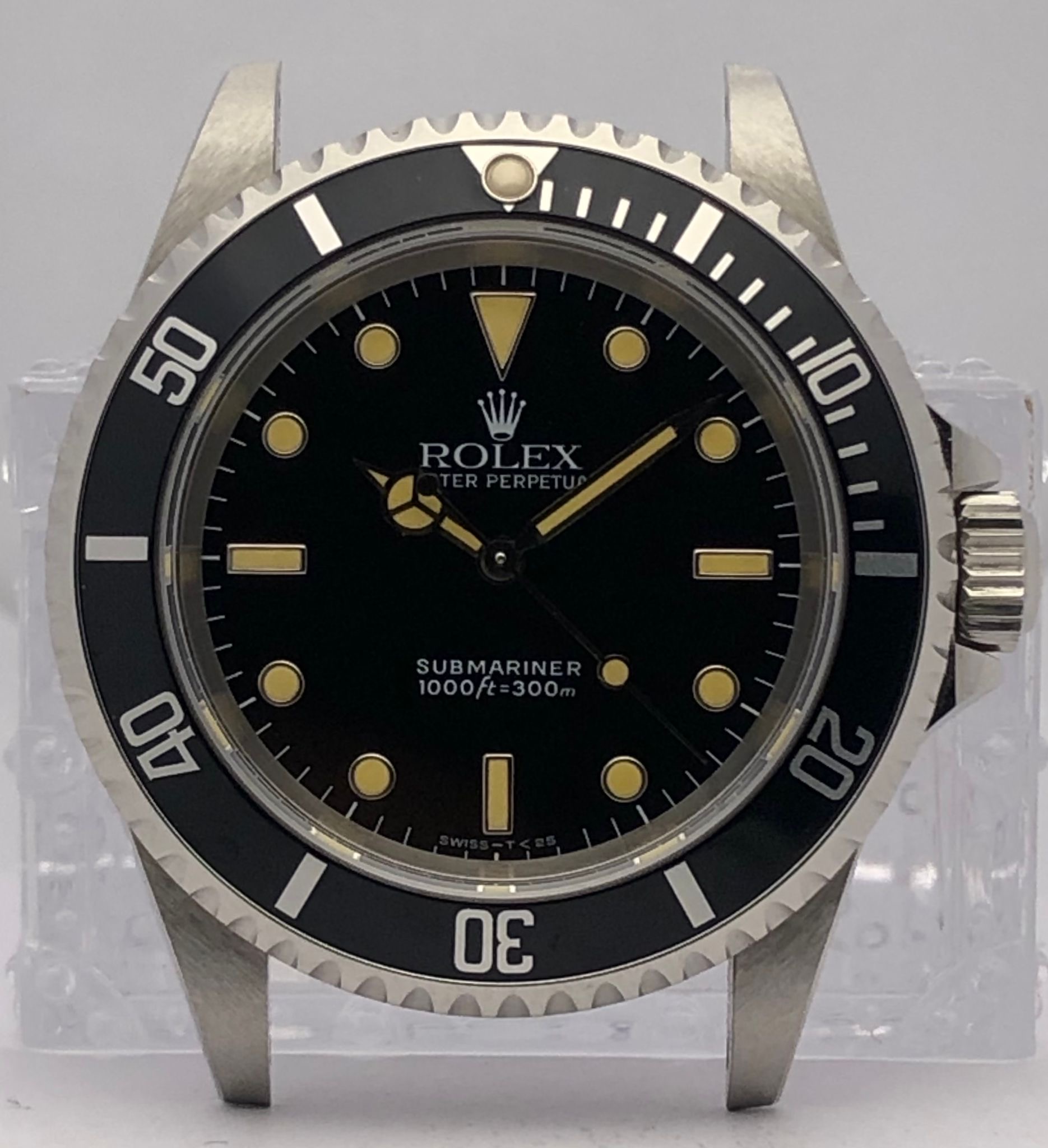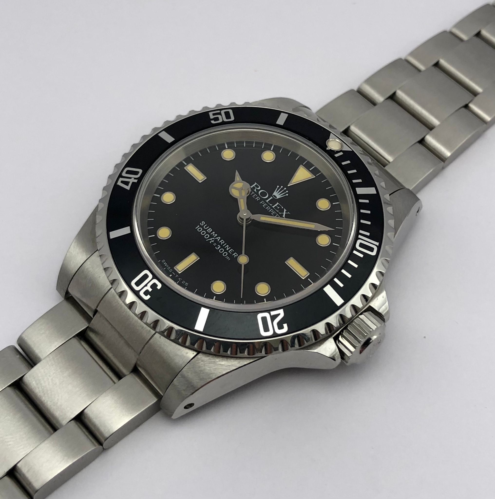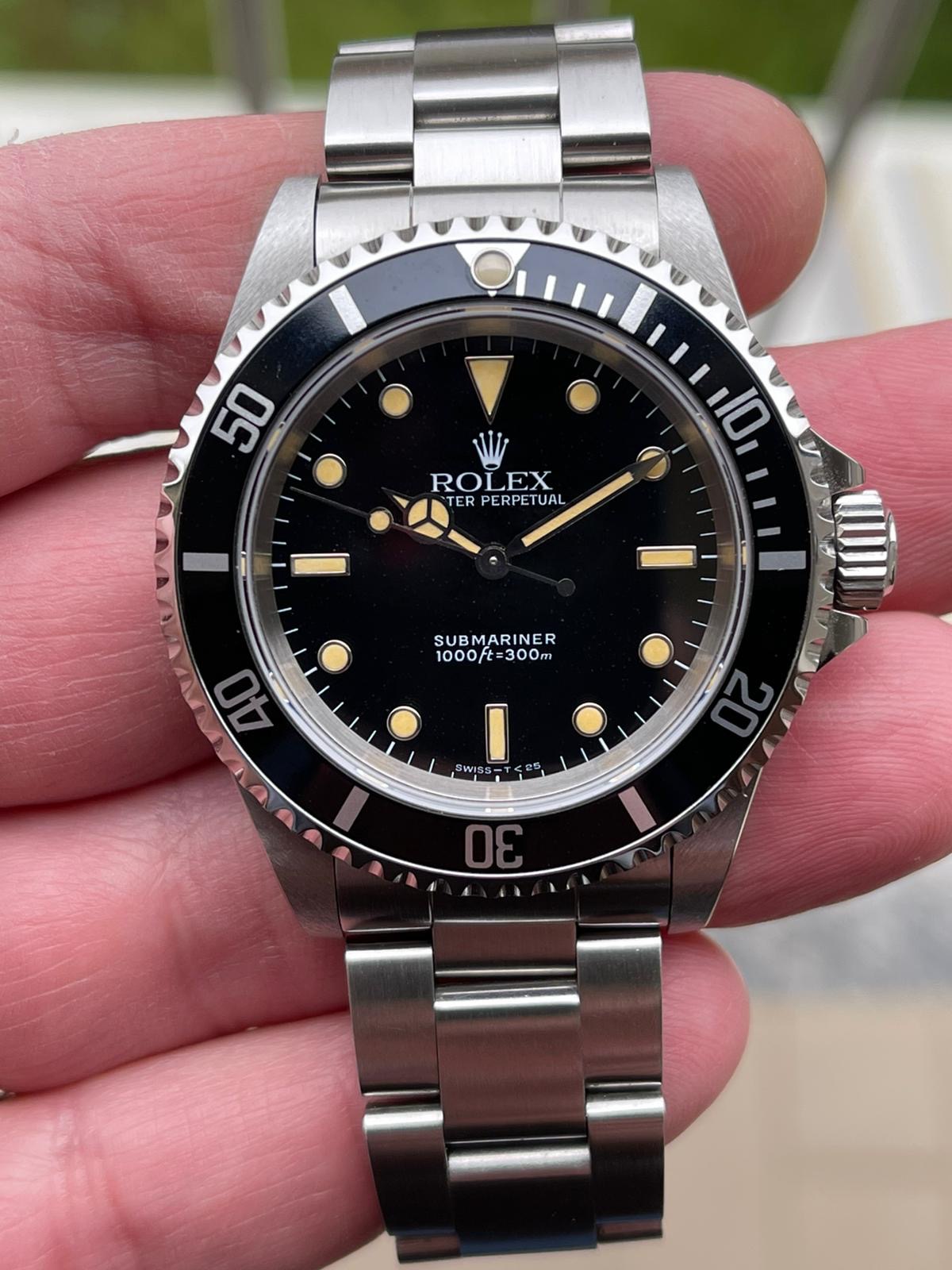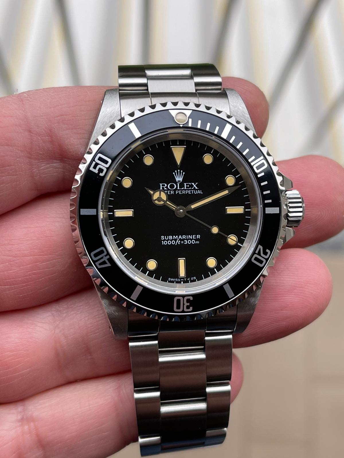 The dial is an original Rolex 14060 tritium dial with a beautiful strong patina even on all plots and all lettering is clearly visible and correct.