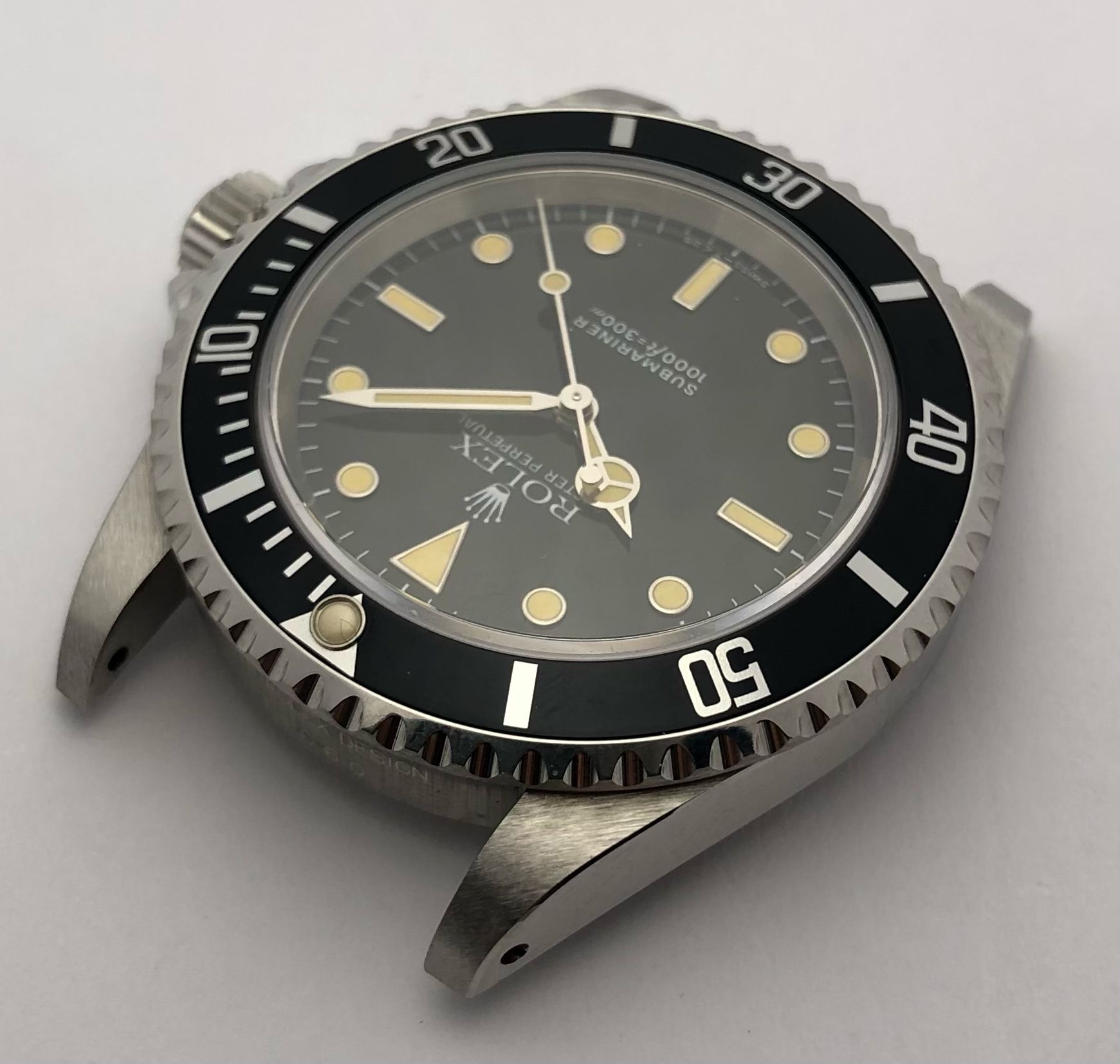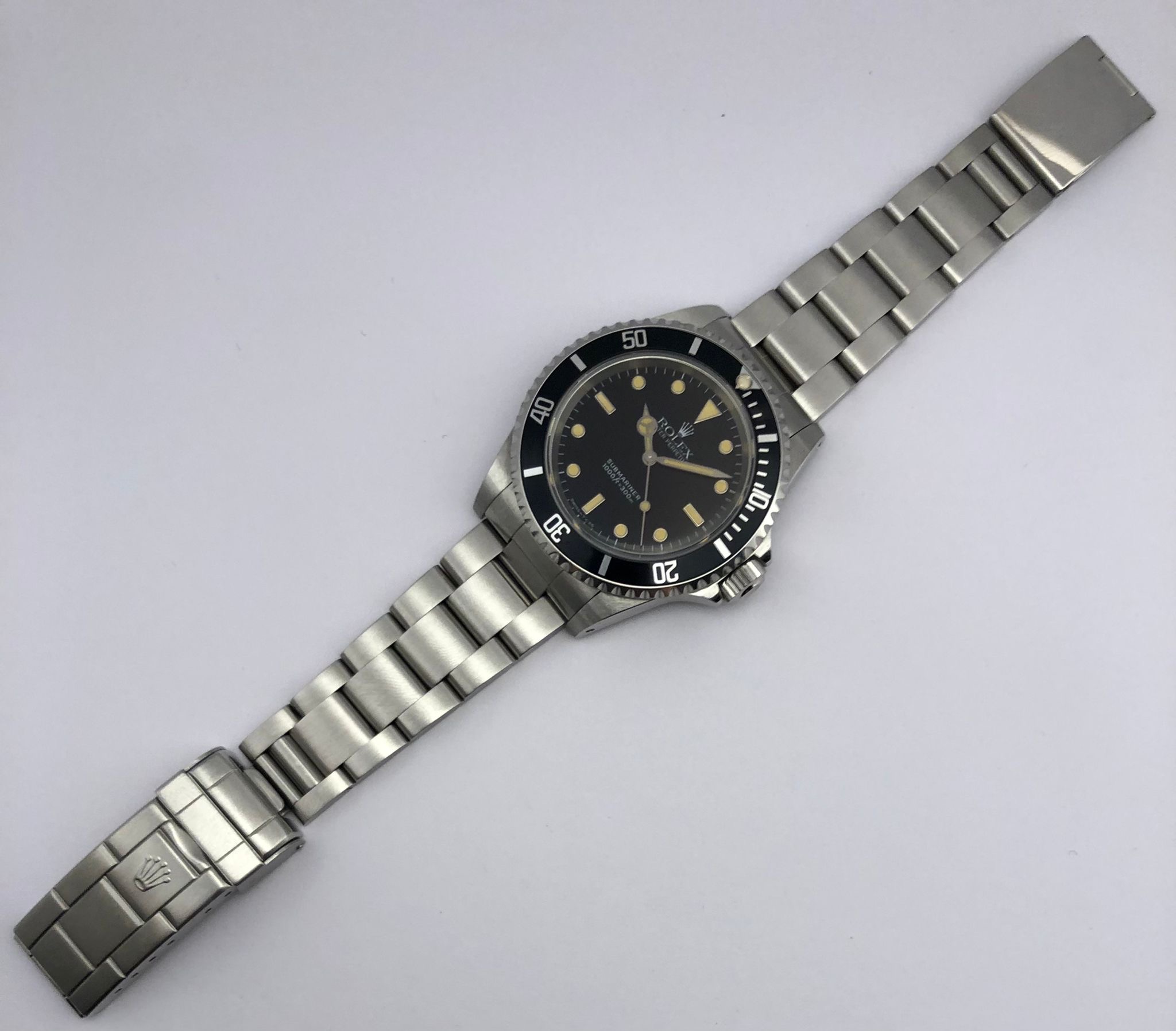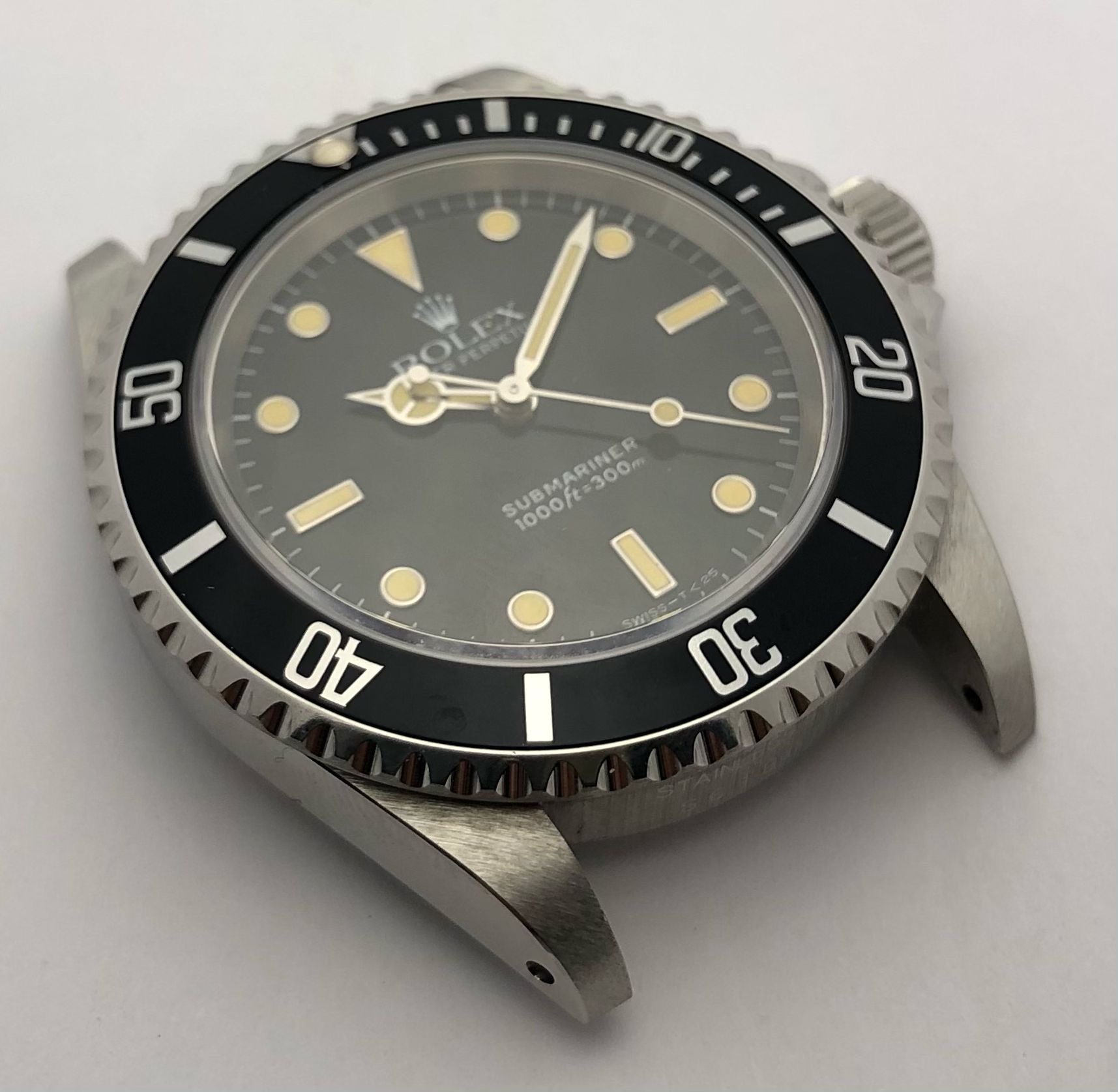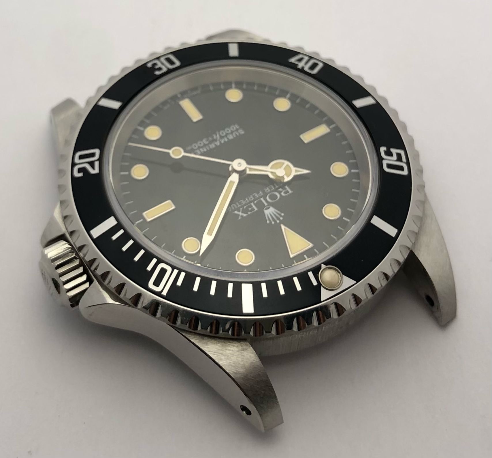The dial is an original Rolex 14060 tritium dial with a beautiful strong patina even on all plots and all lettering is clearly visible and correct.
