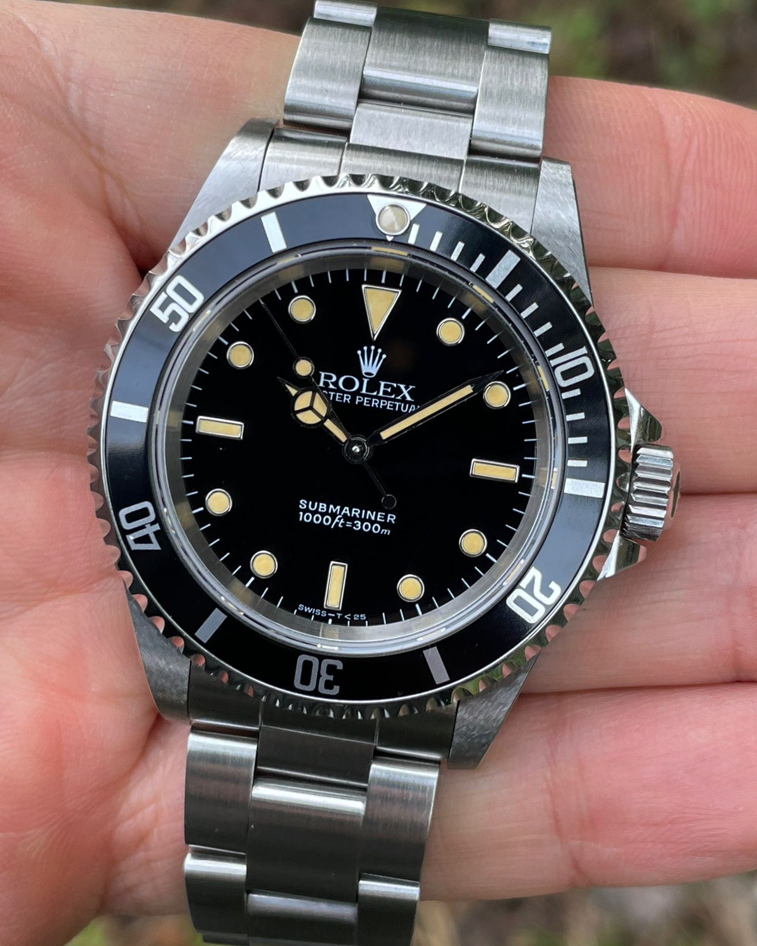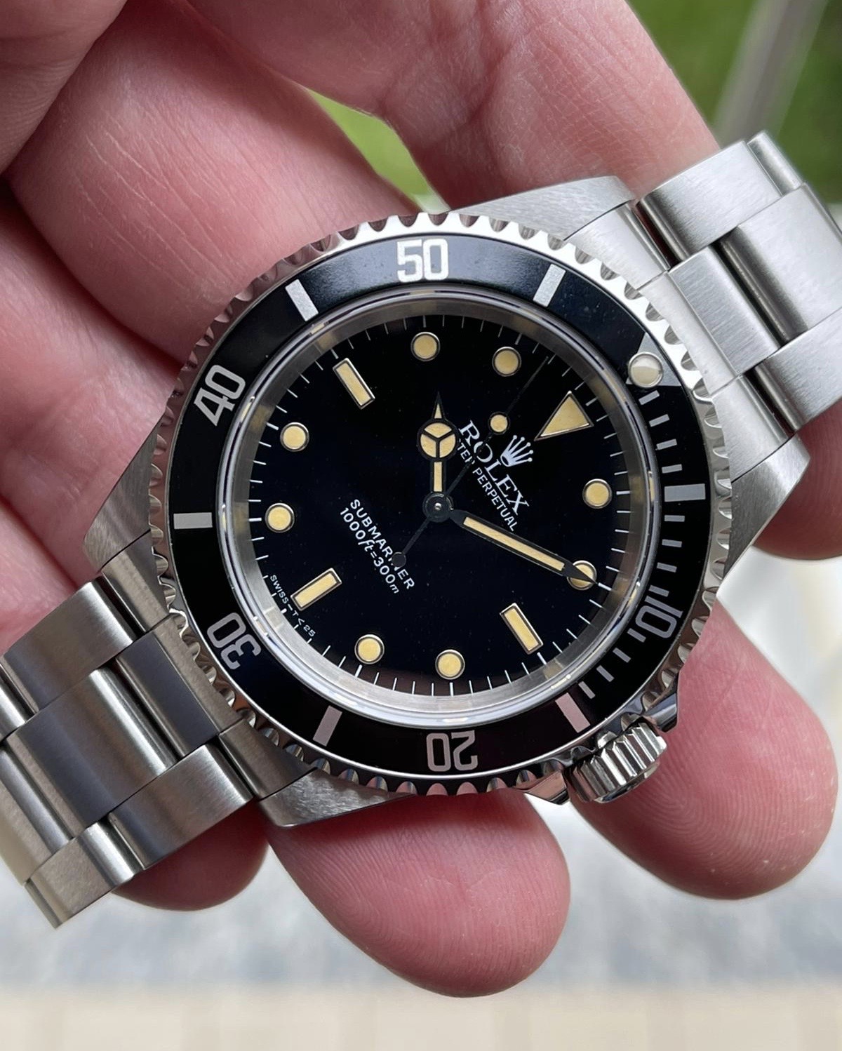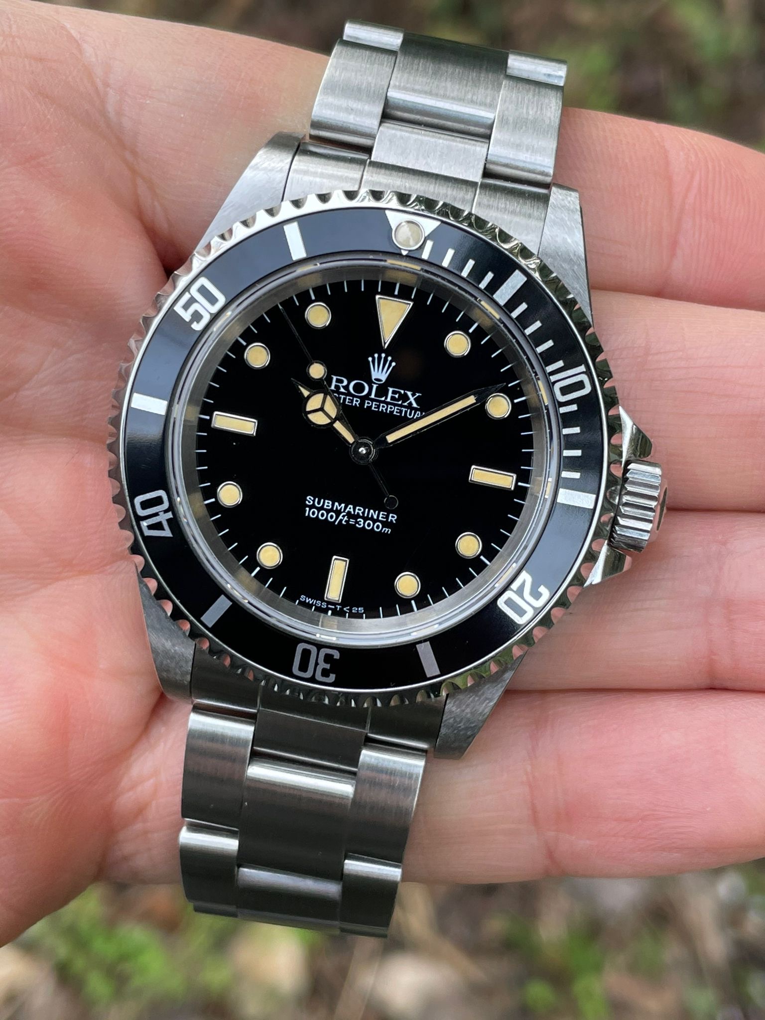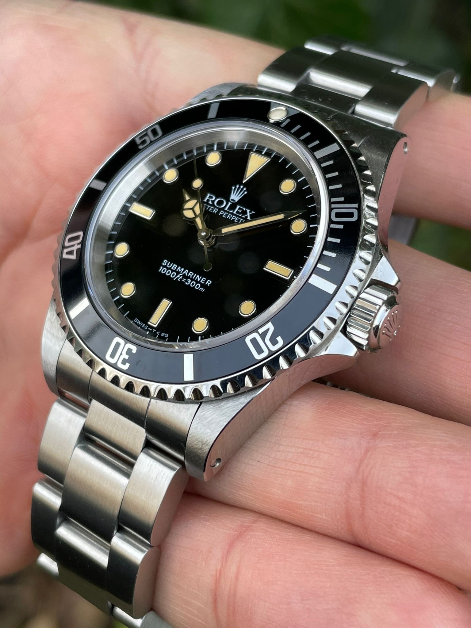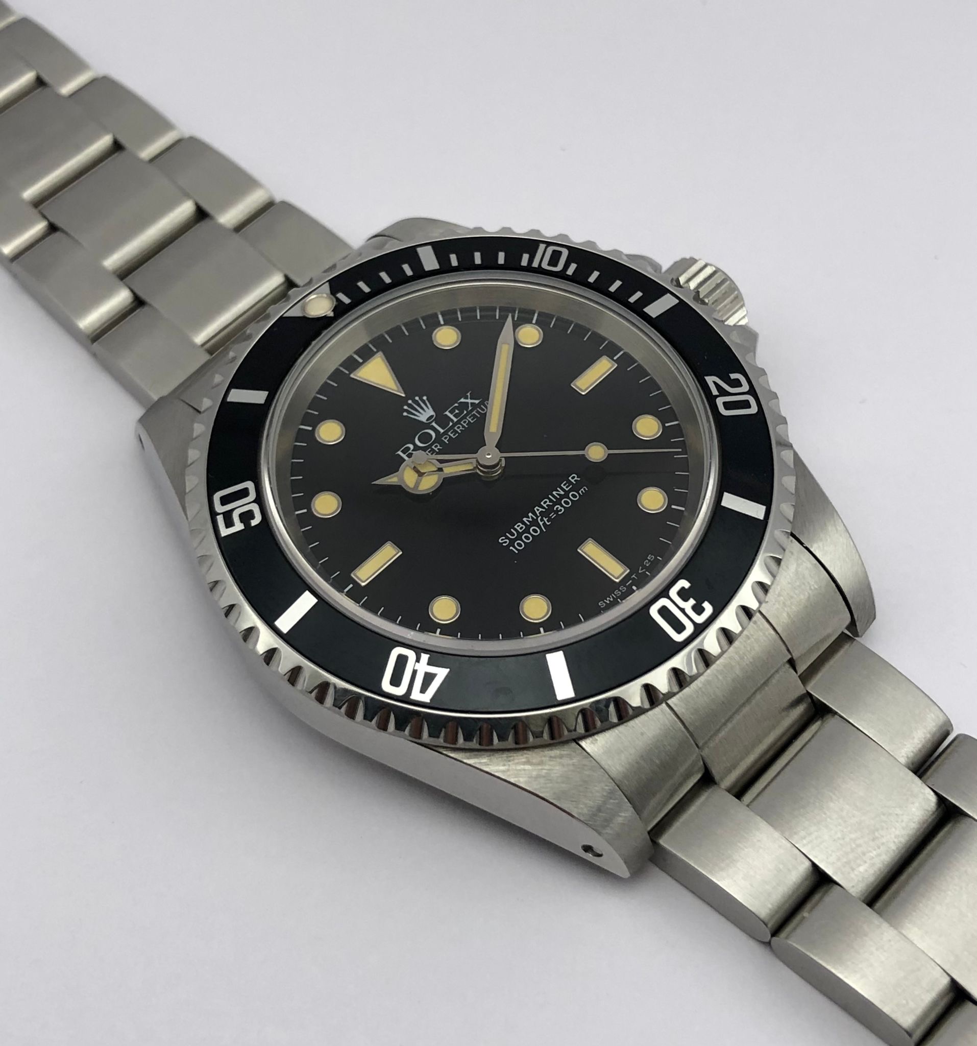 The dial is an original Rolex 14060 tritium dial with a beautiful strong patina even on all plots and all lettering is clearly visible and correct.