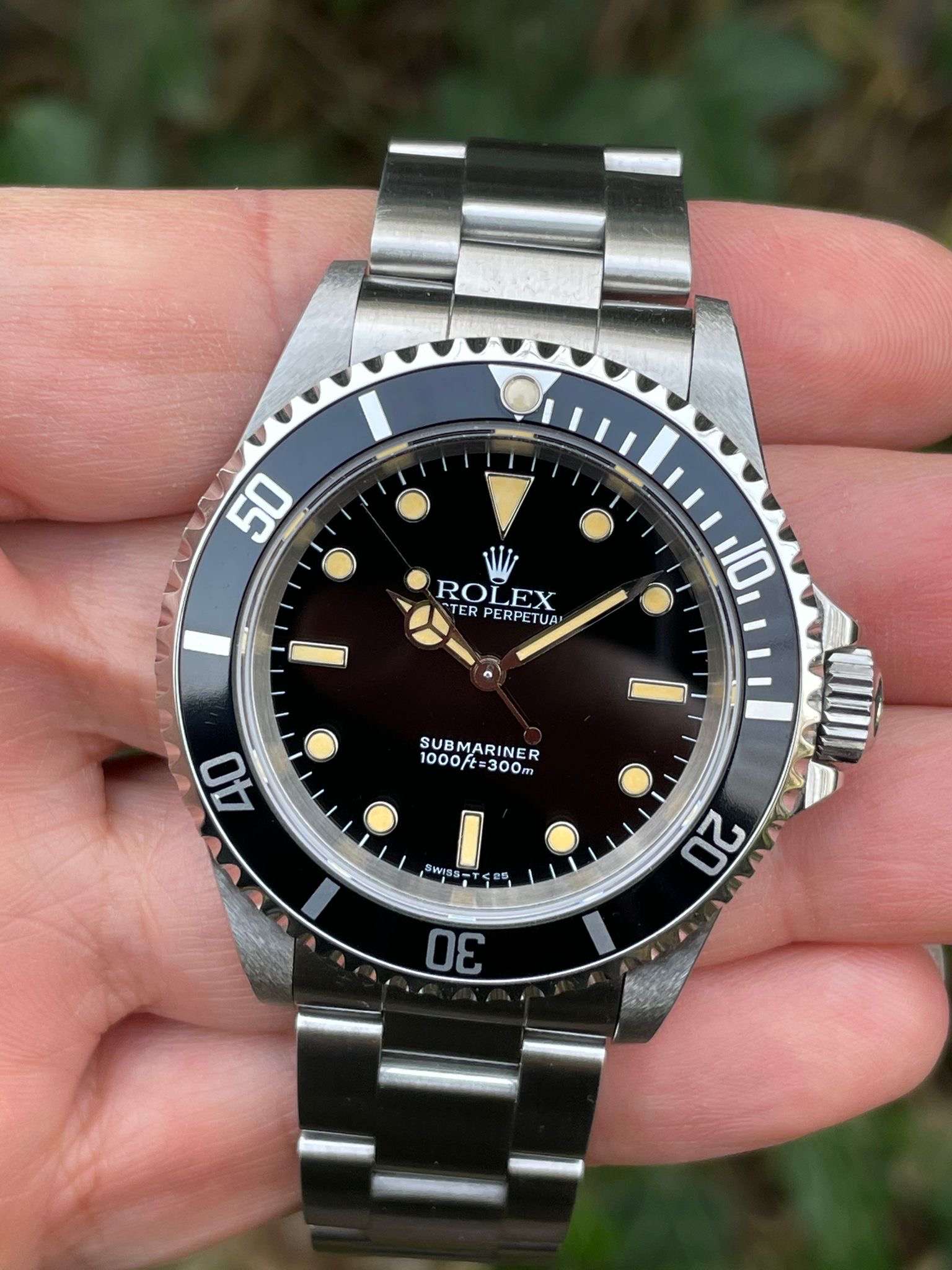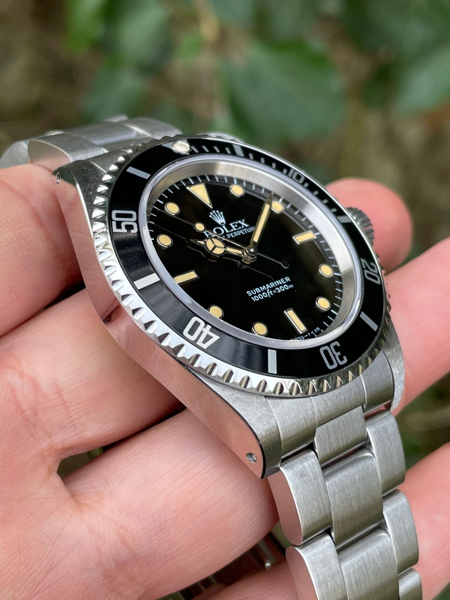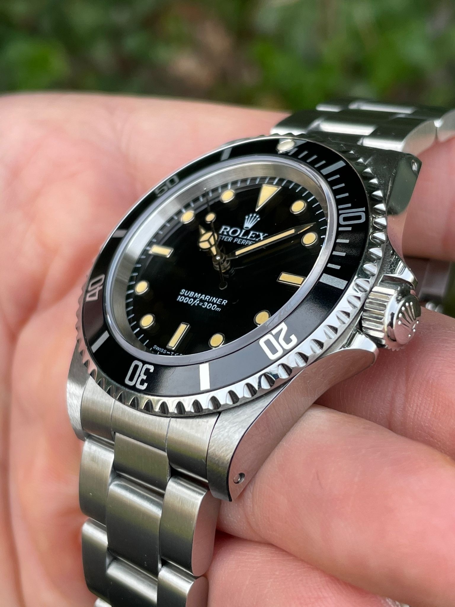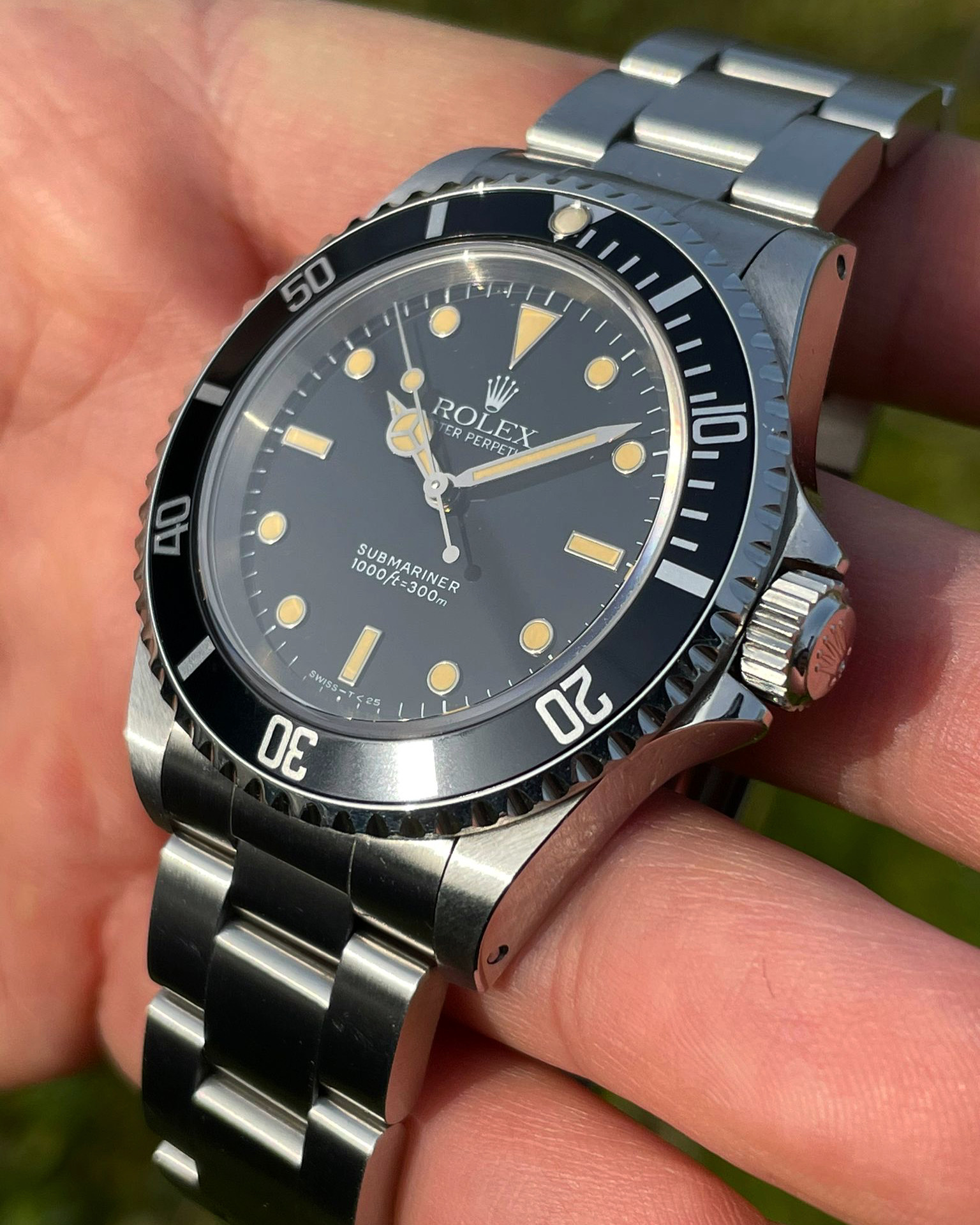 The dial is an original Rolex 14060 tritium dial with a beautiful strong patina even on all plots and all lettering is clearly visible and correct.
