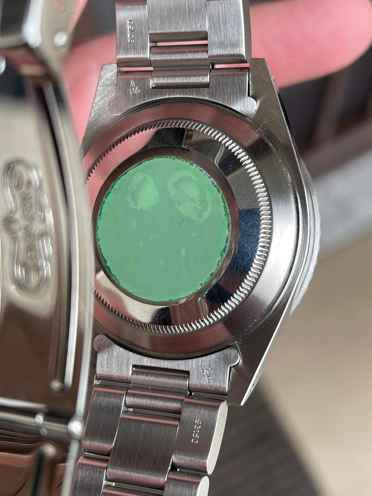 The case is even and thick with original Rolex sticker on caseback.