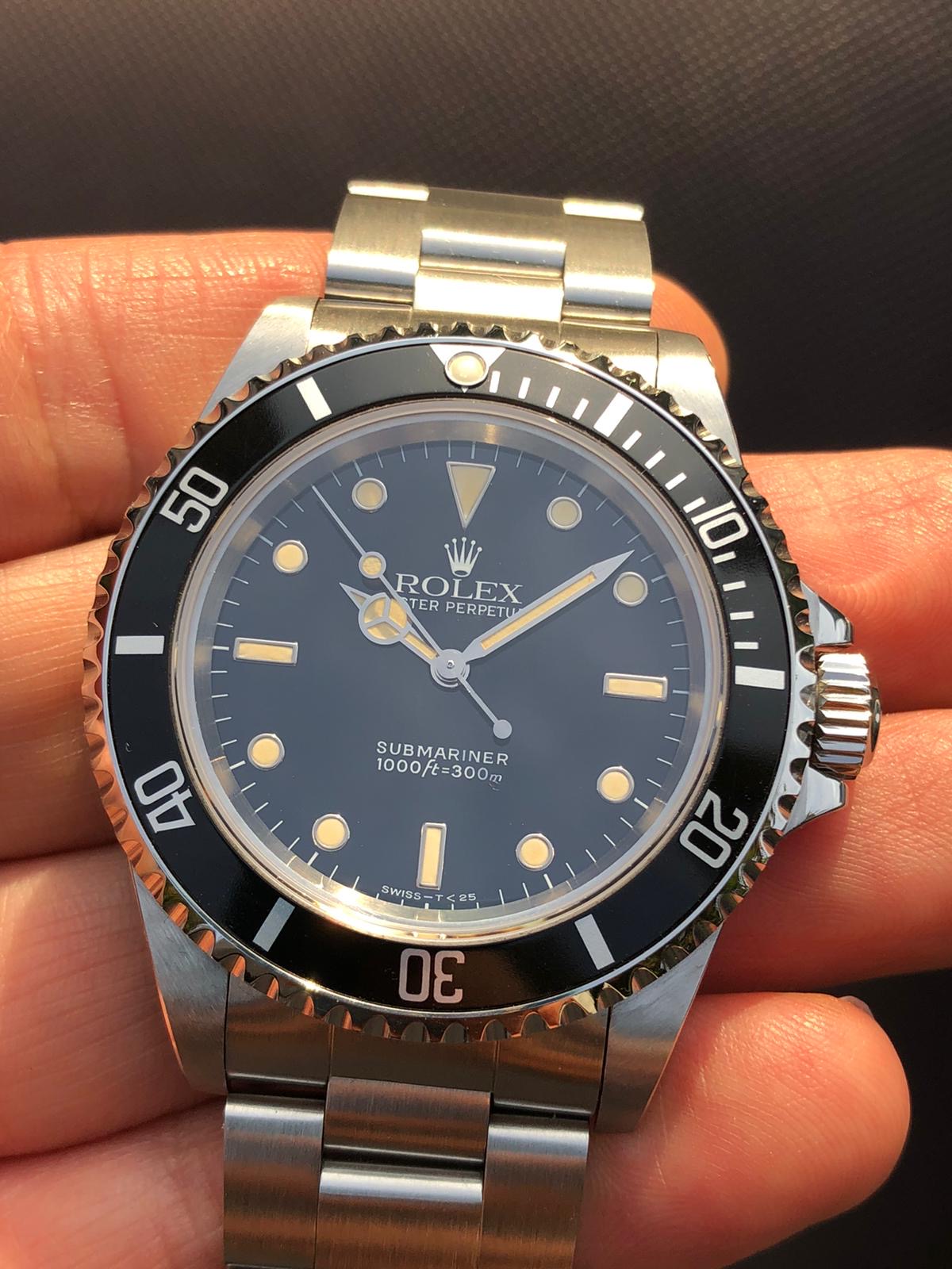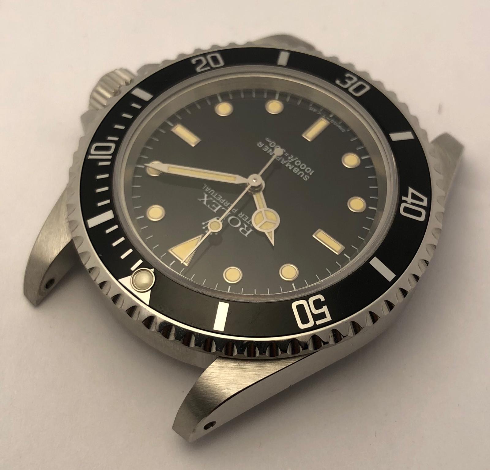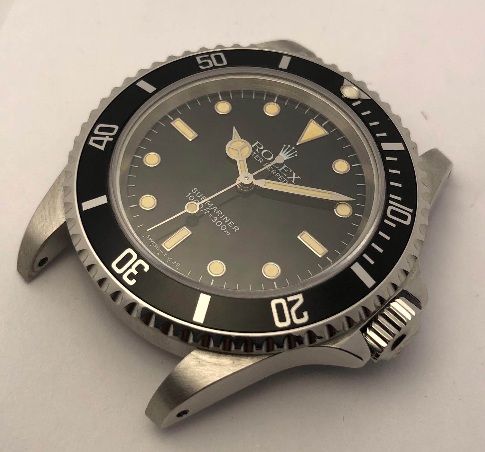 The dial is an original Rolex 14060 tritium dial with creamy patina even on all plots and all lettering is clearly visible and correct.