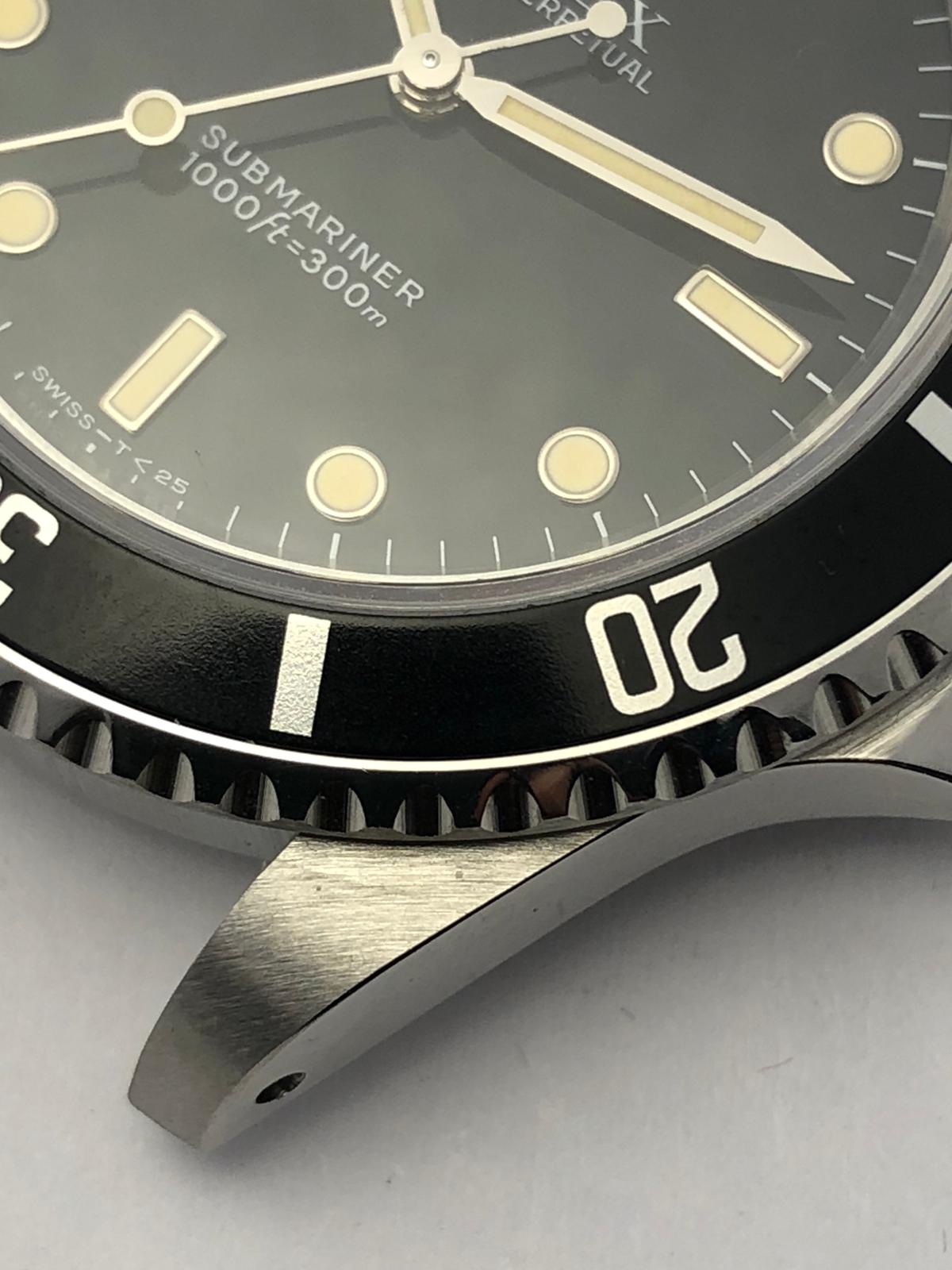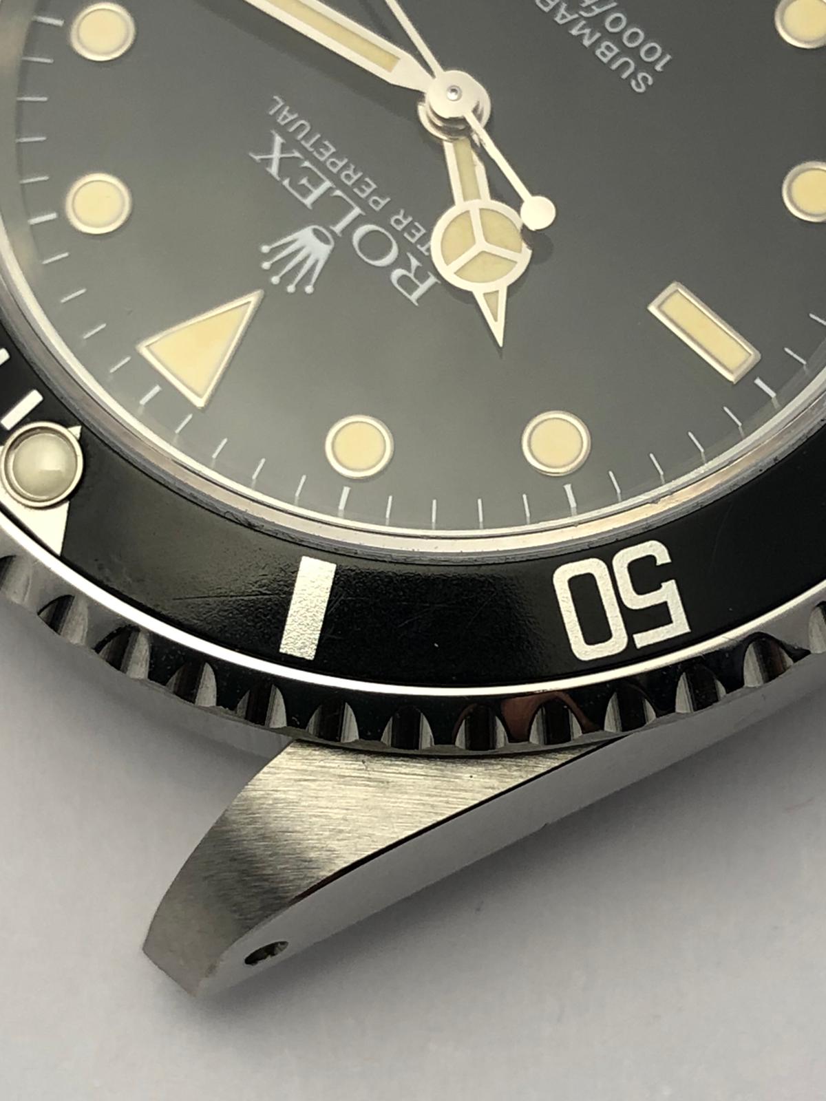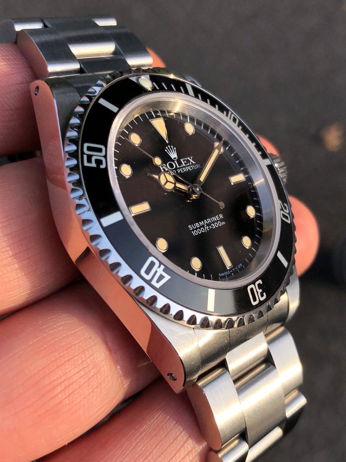 The dial is an original Rolex 14060 tritium dial with creamy patina even on all plots and all lettering is clearly visible and correct.