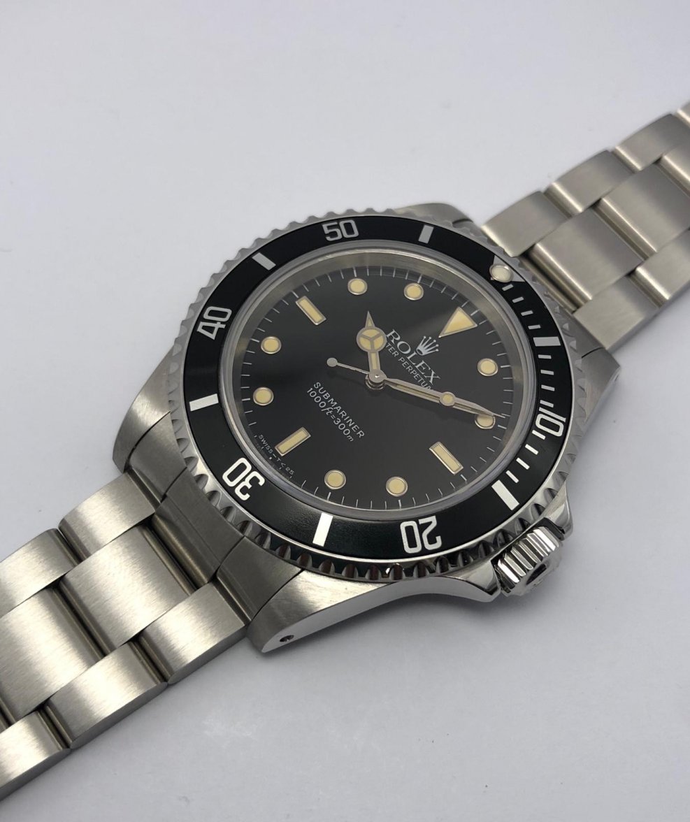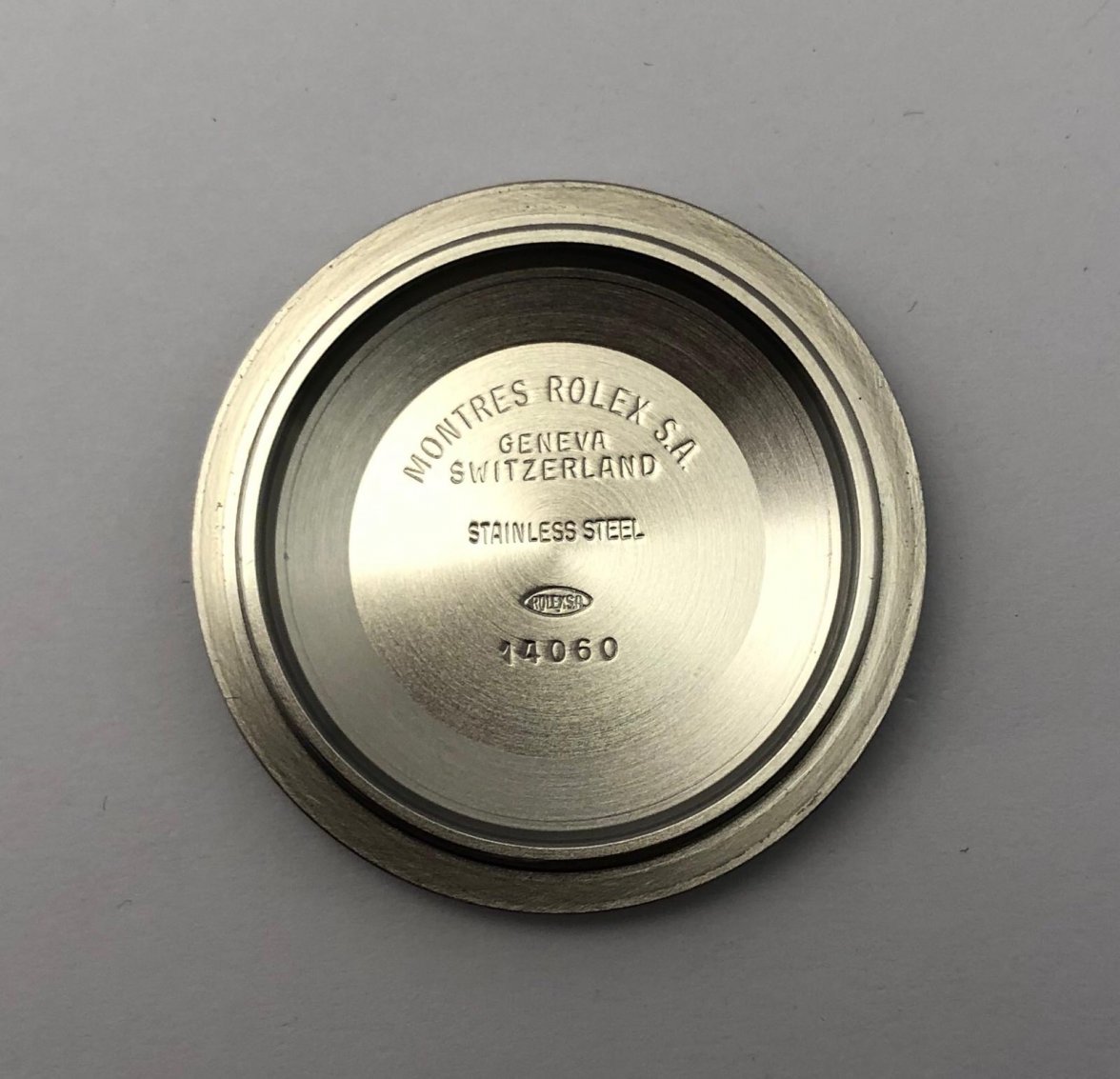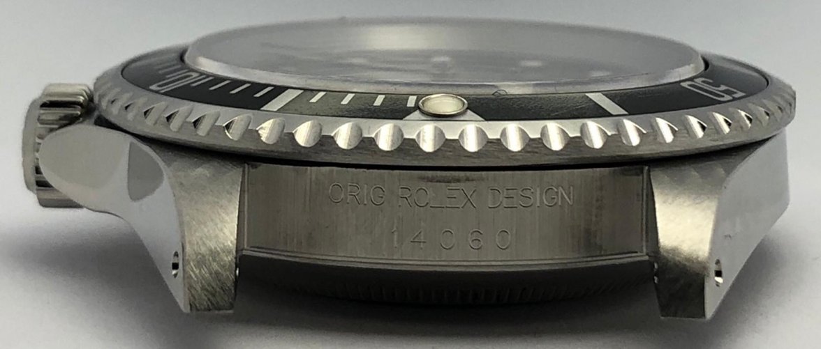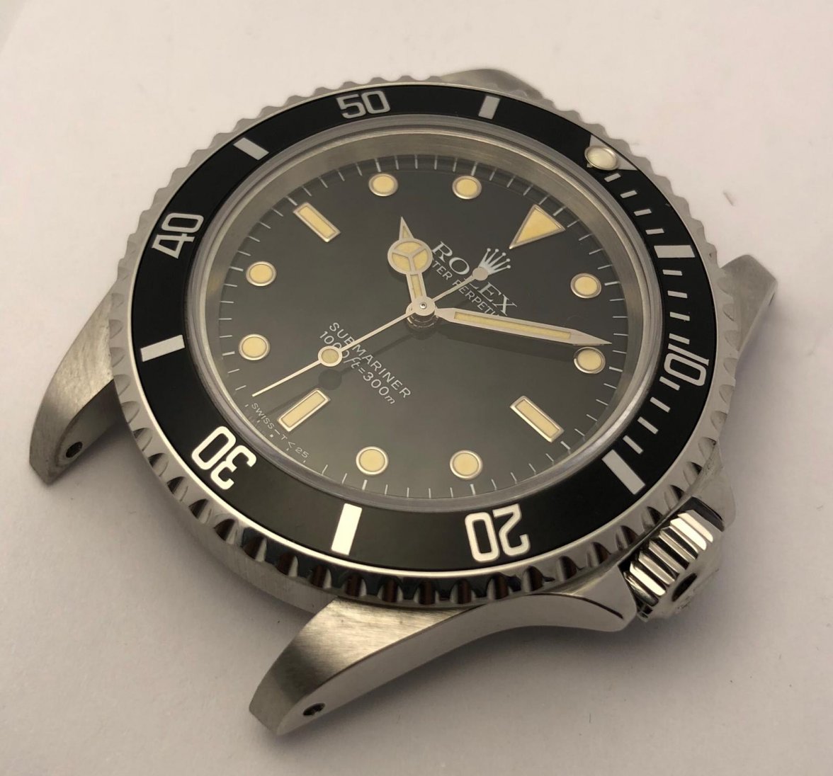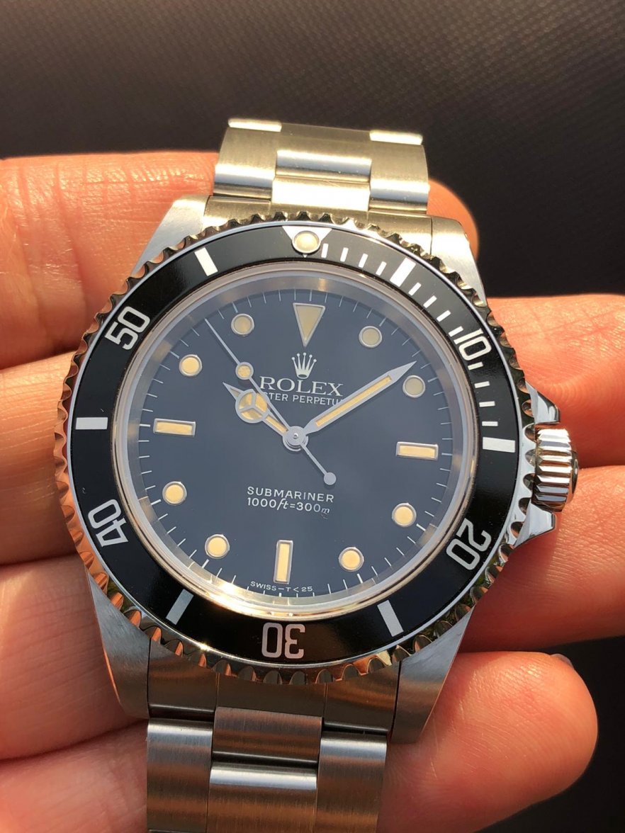 The dial is an original Rolex 14060 tritium dial with creamy patina even on all plots and all lettering is clearly visible and correct.
