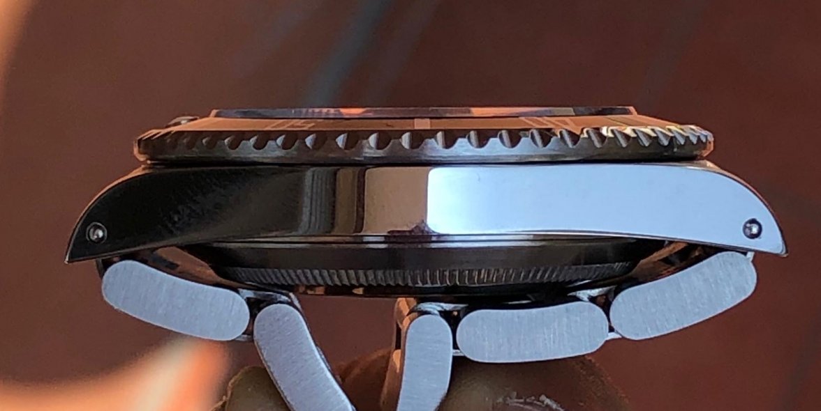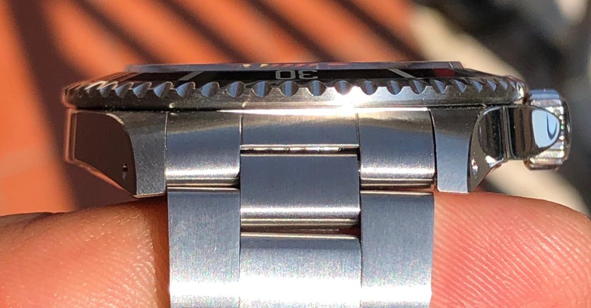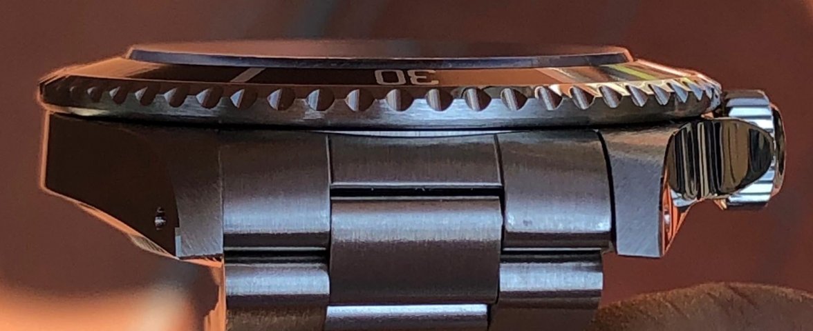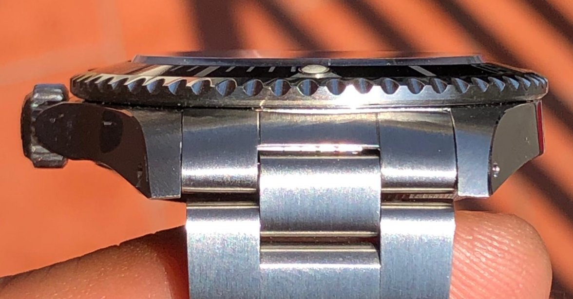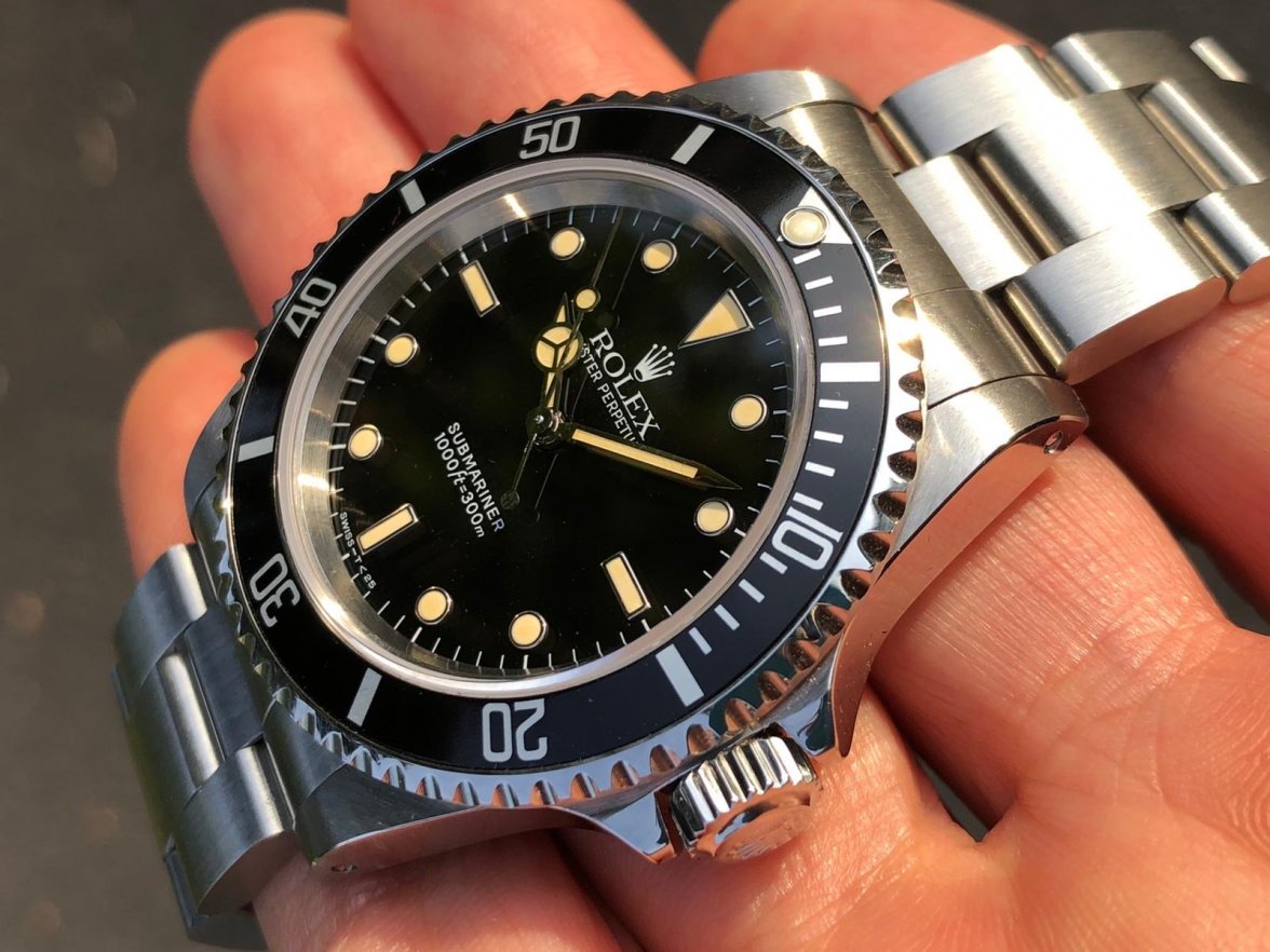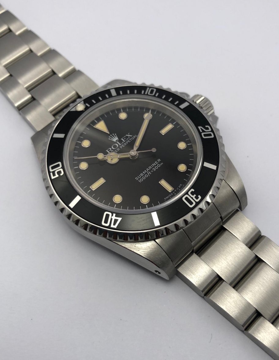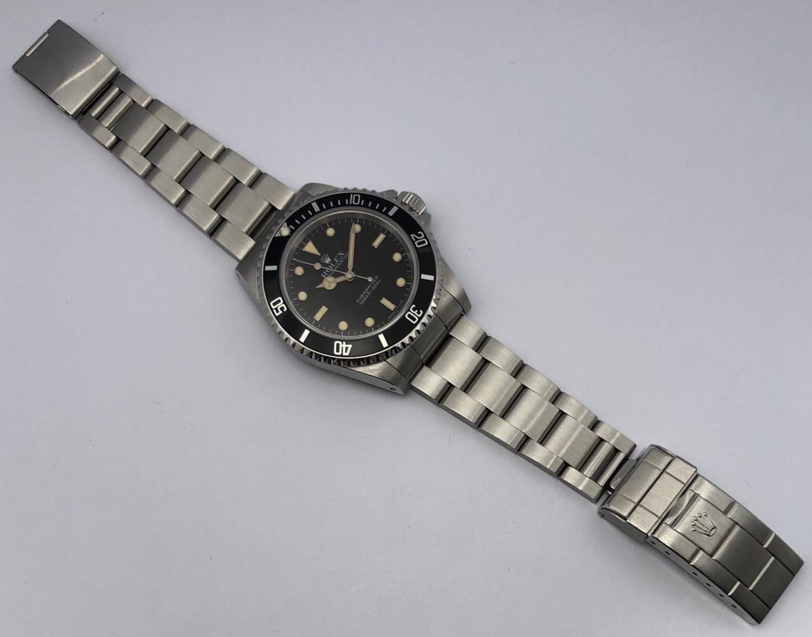 The dial is an original Rolex 14060 tritium dial with creamy patina even on all plots and all lettering is clearly visible and correct.