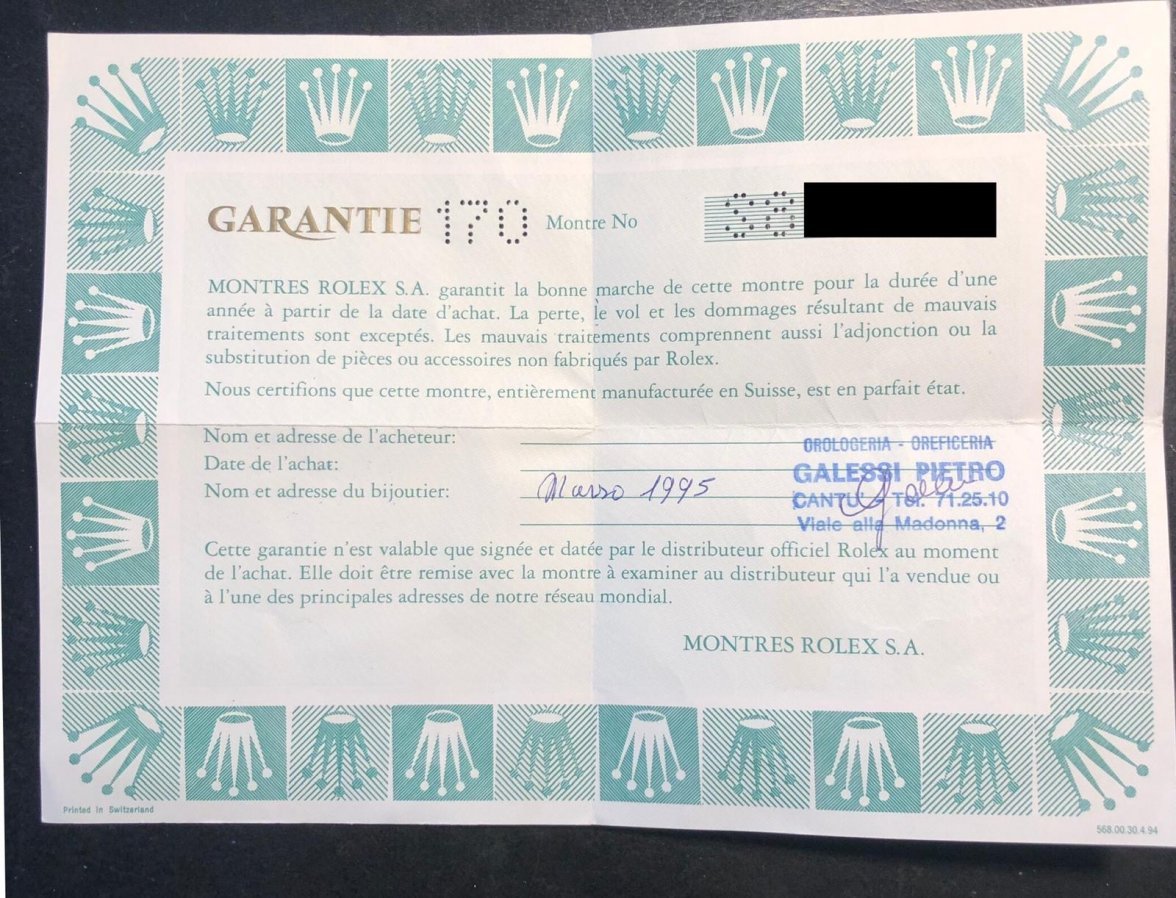 The watch was sold in 1994 in Italy and it comes with the original box and papers.