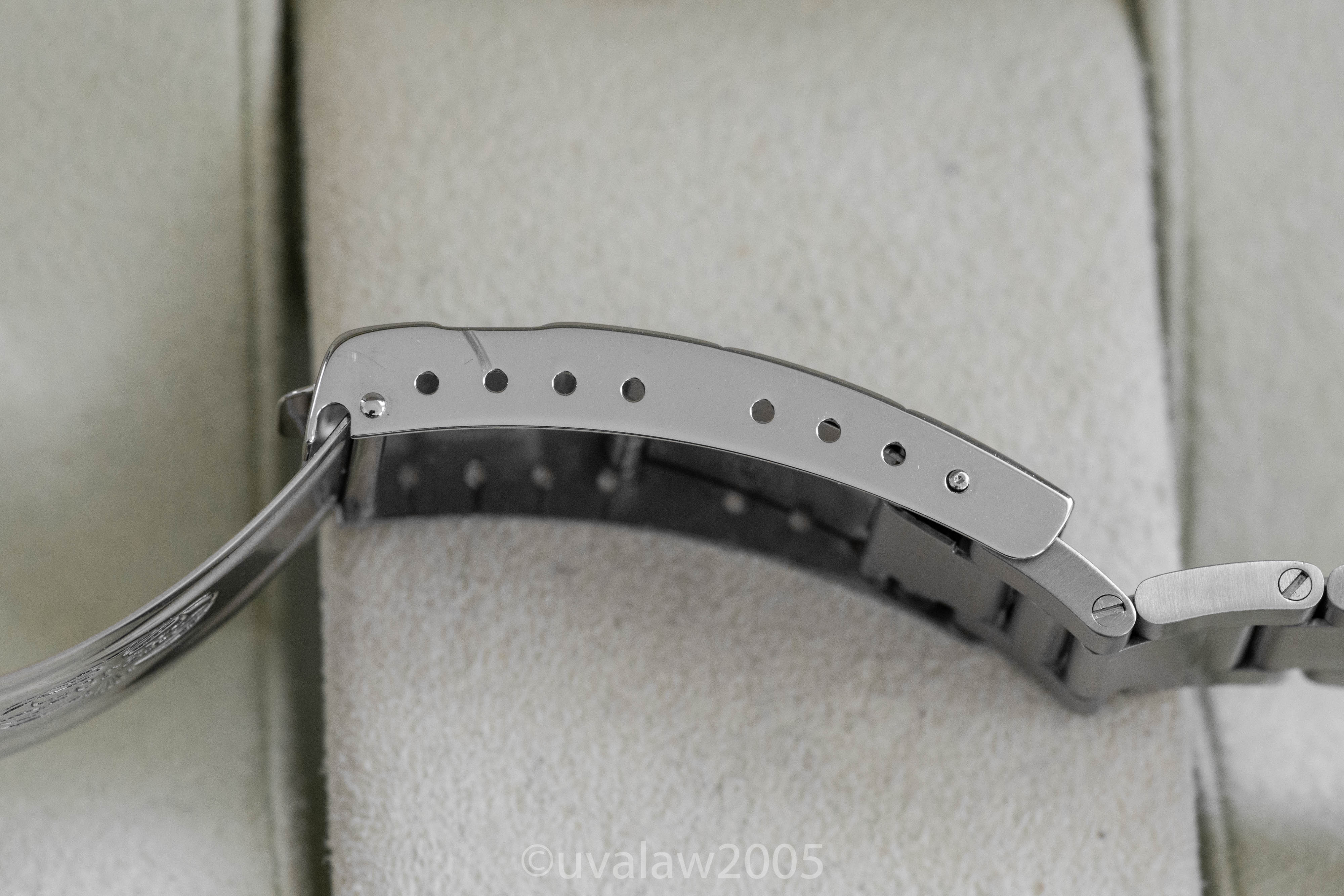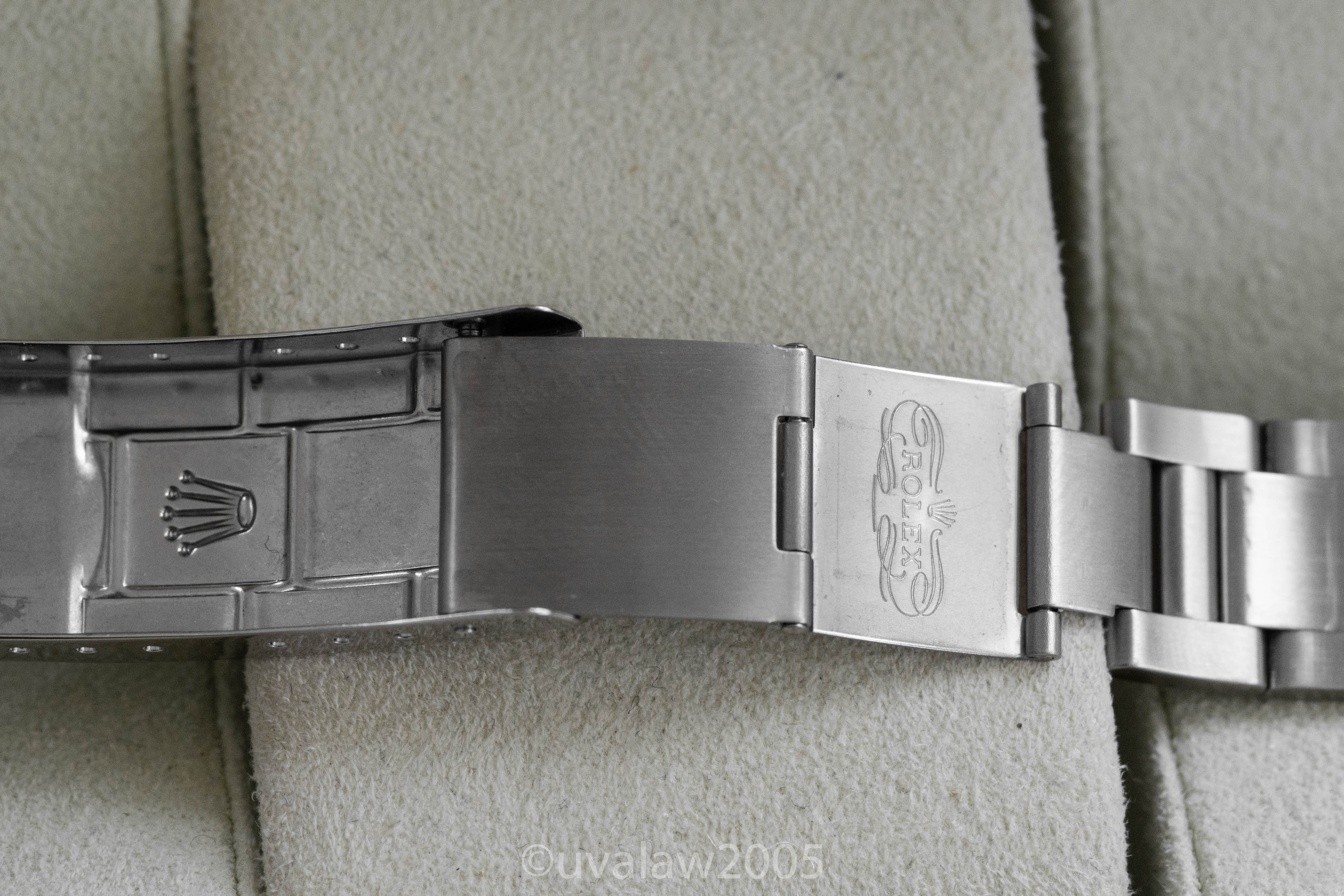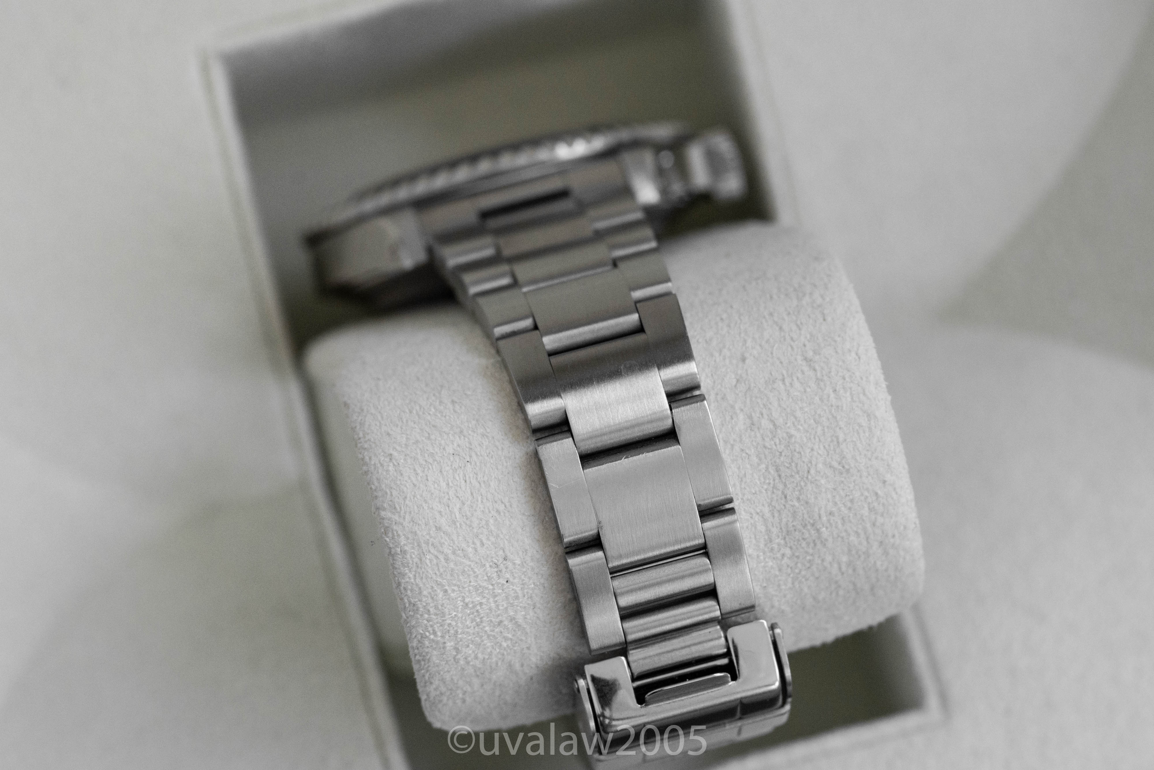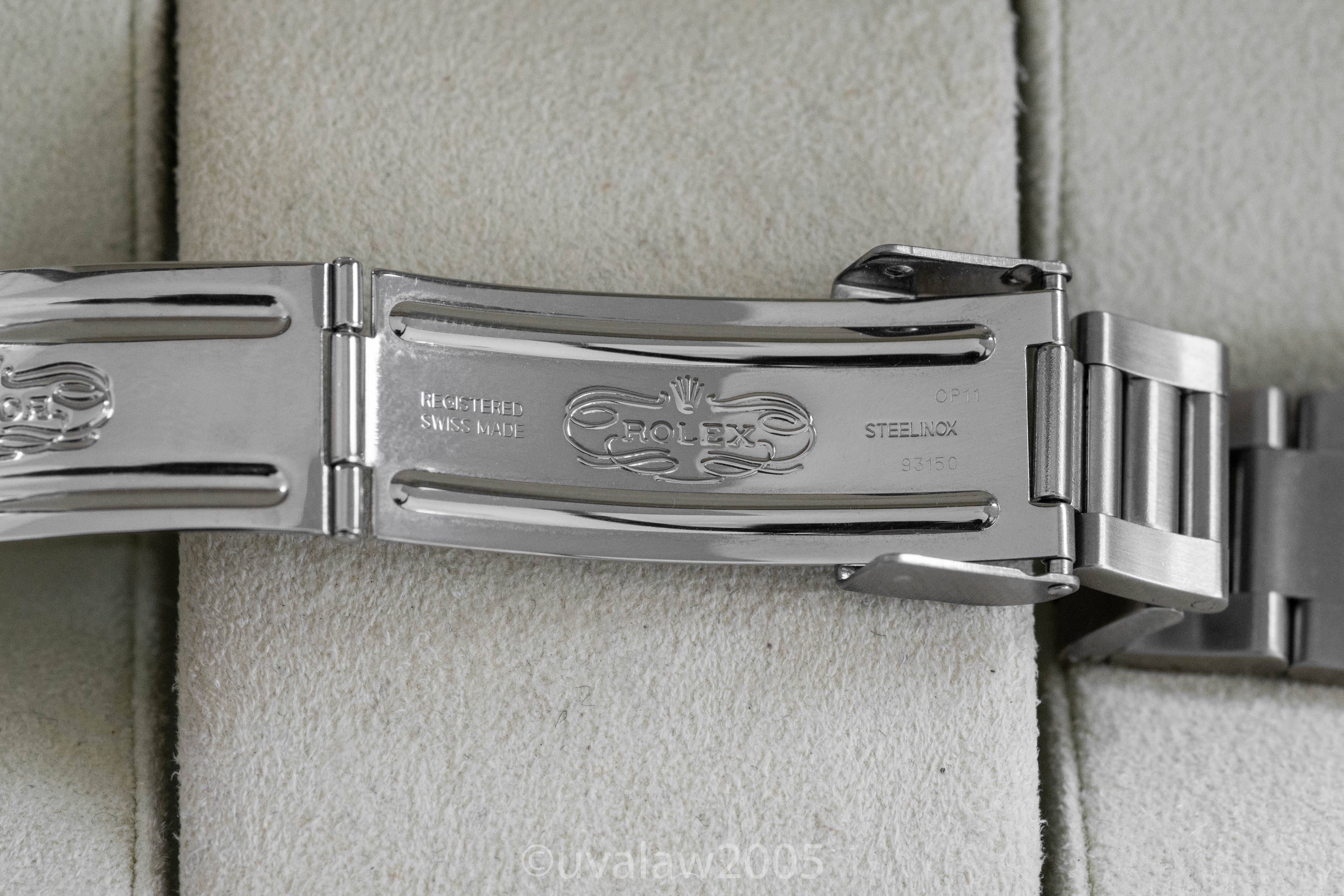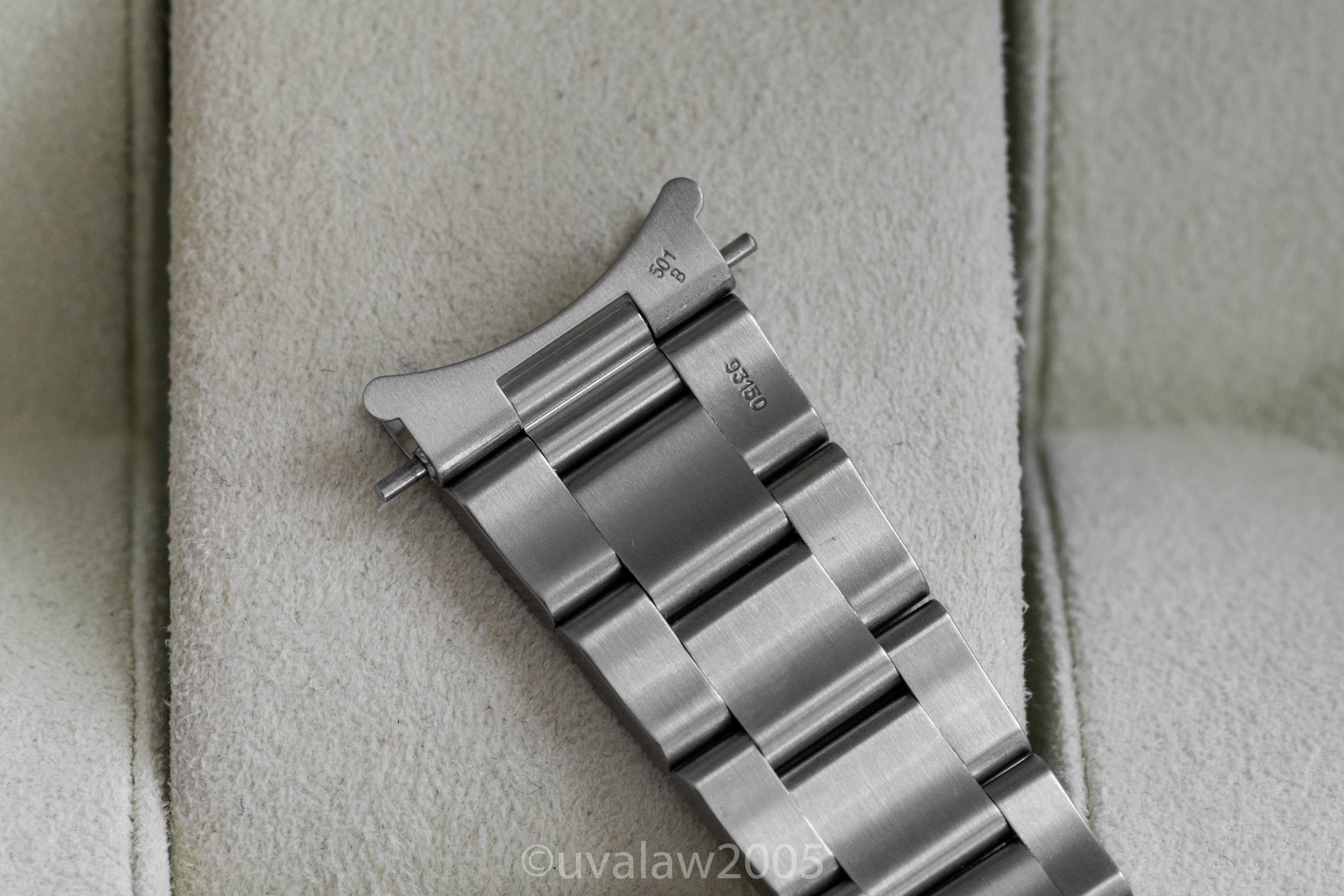 93150 bracelet has minimal stretch and 13 links plus the 501B endlinks. Bezel is well-aligned. Timekeeping is excellent, between +2/s and +3/s per day on my wrist. Comes with boxes only (outer box has some discoloration).