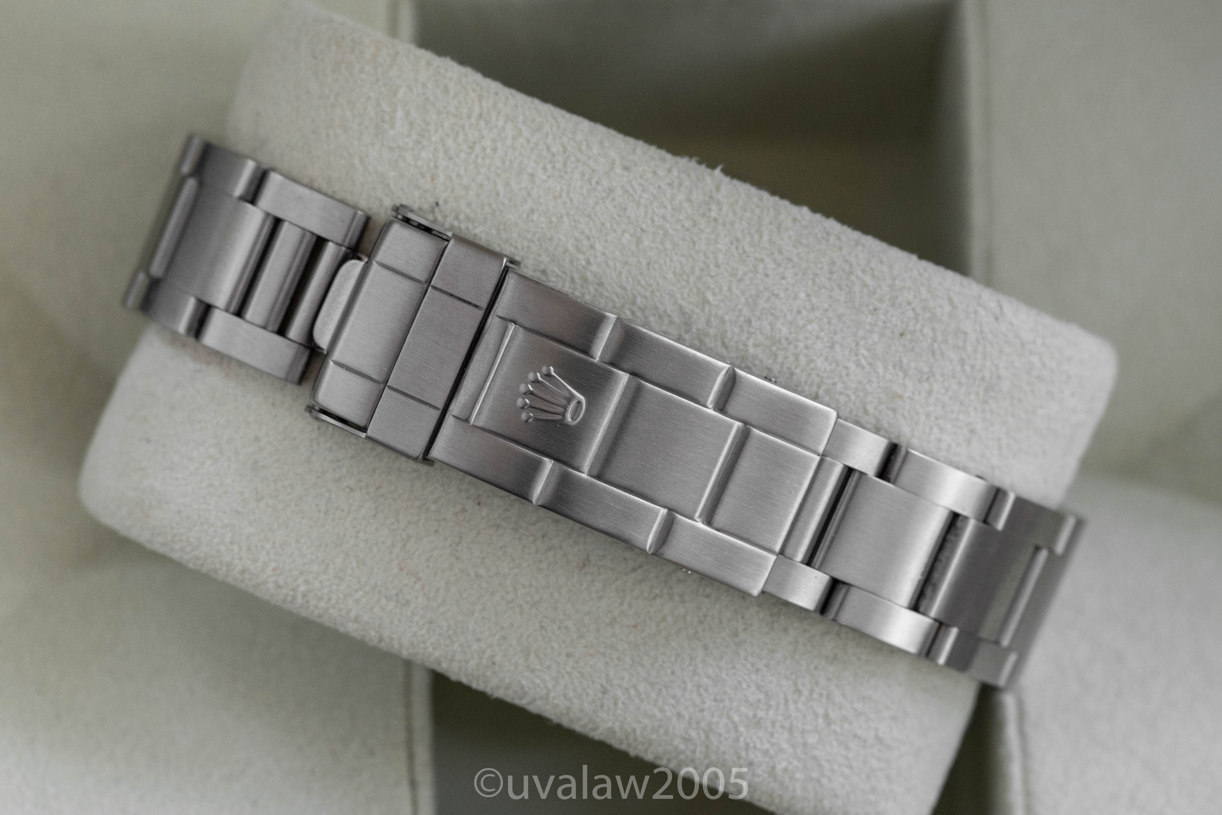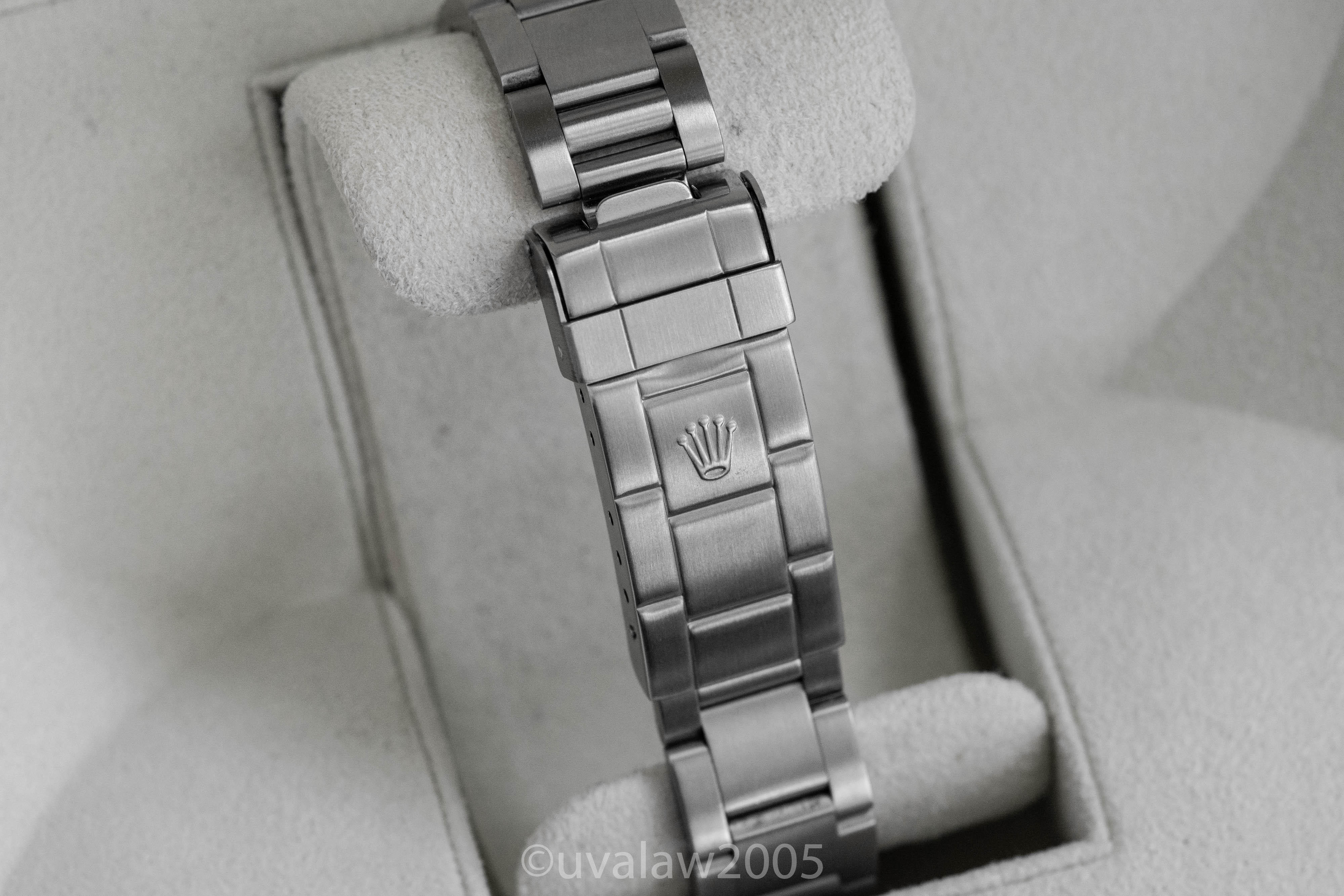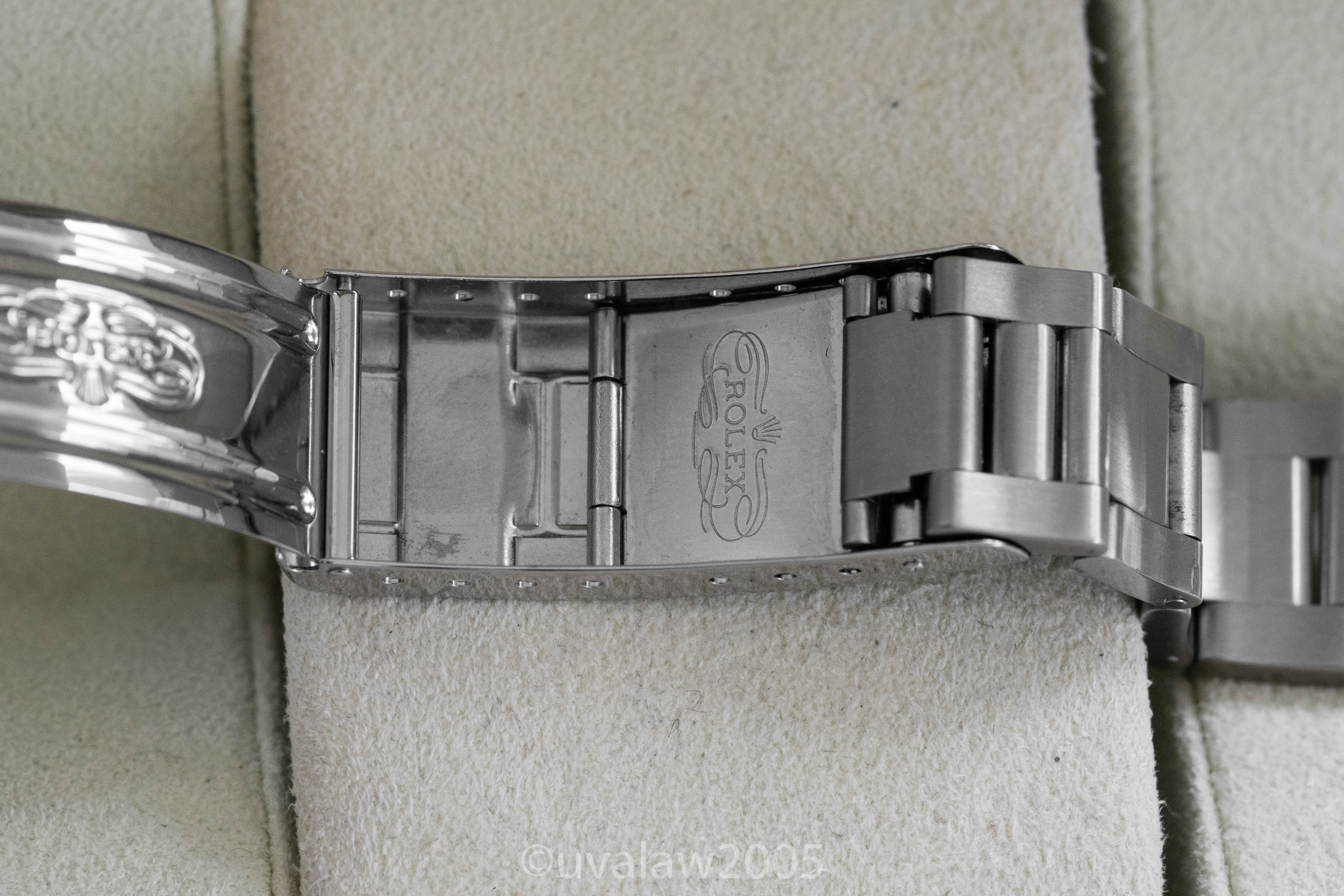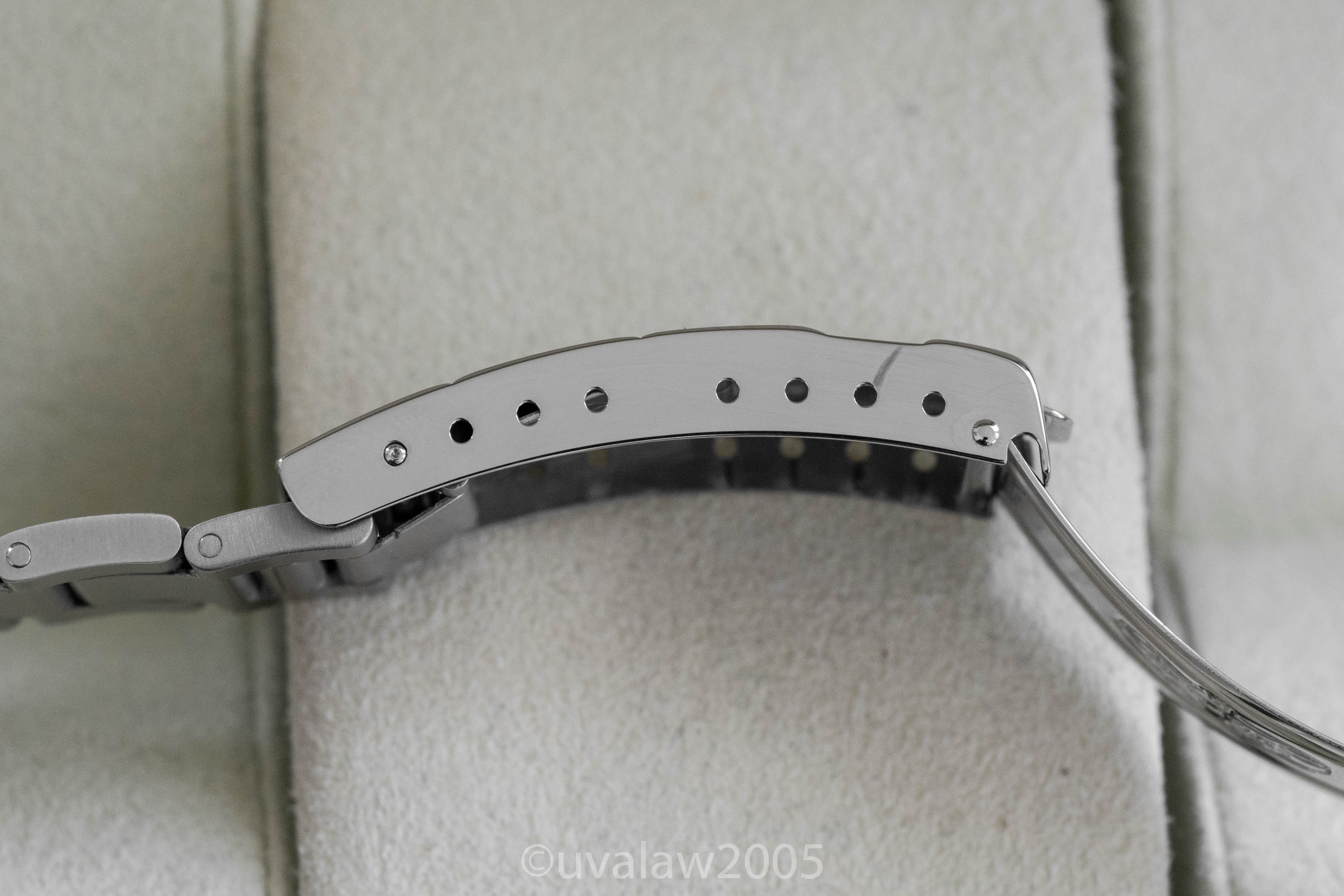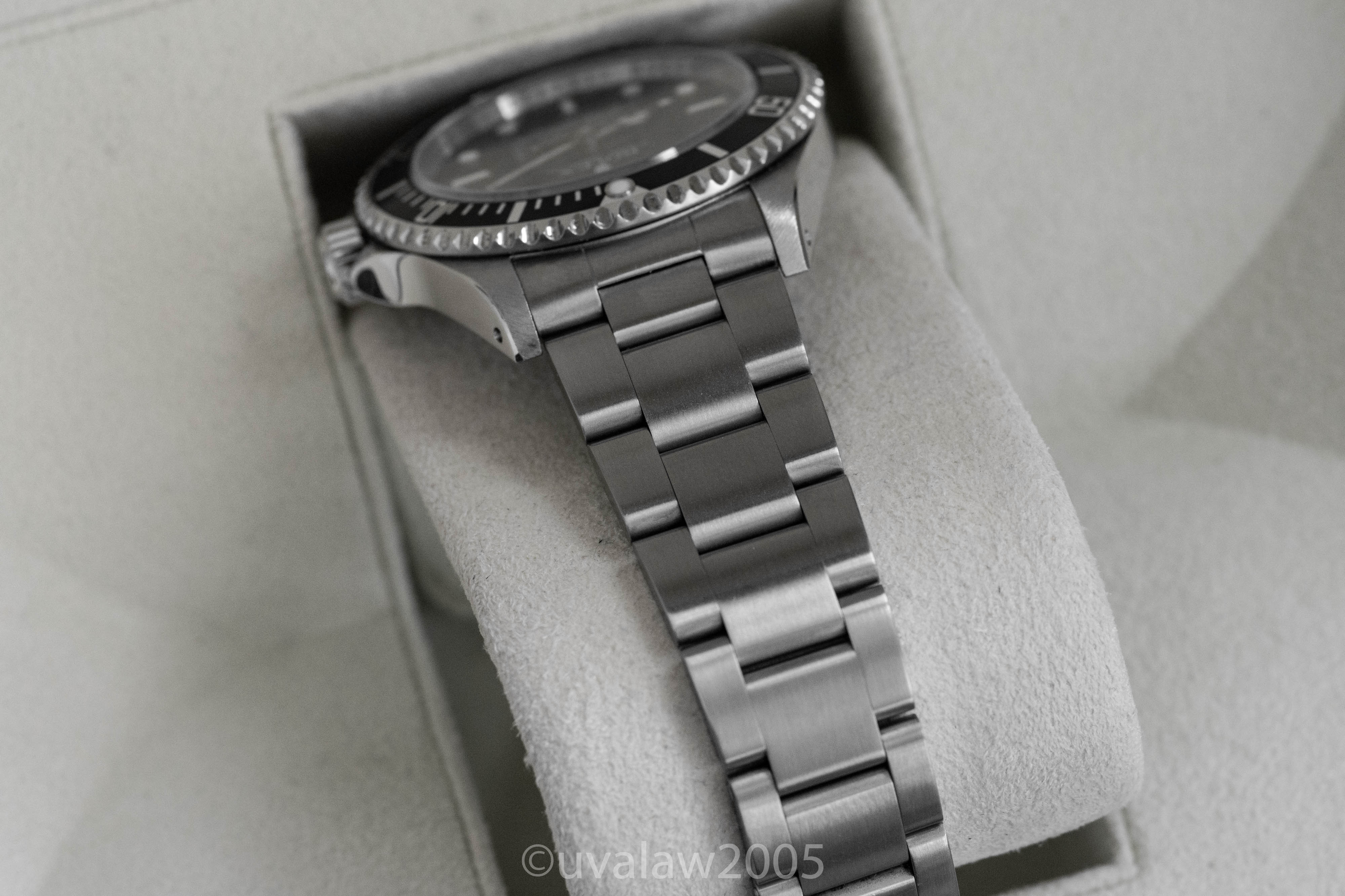 93150 bracelet has minimal stretch and 13 links plus the 501B endlinks. Bezel is well-aligned. Timekeeping is excellent, between +2/s and +3/s per day on my wrist. Comes with boxes only (outer box has some discoloration).