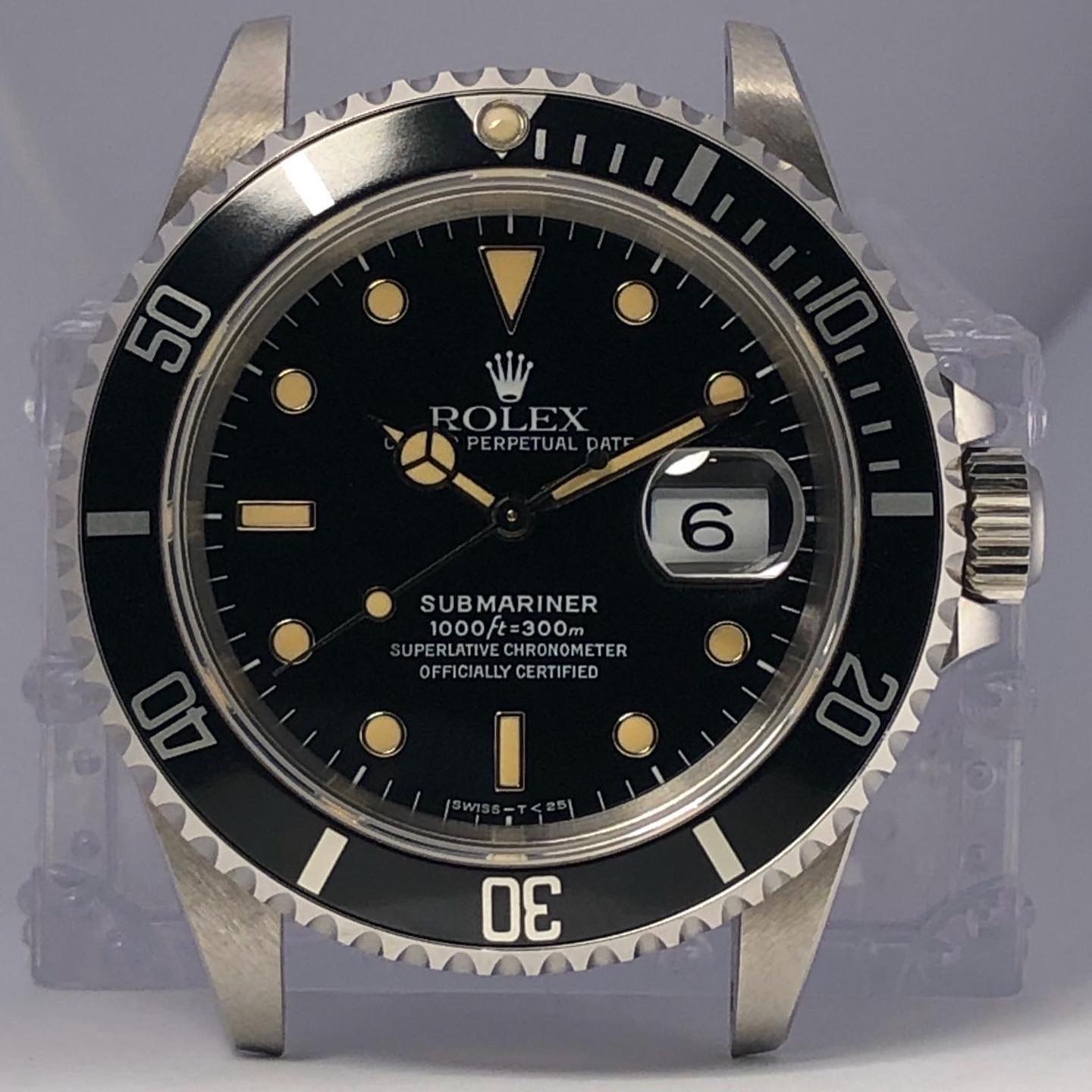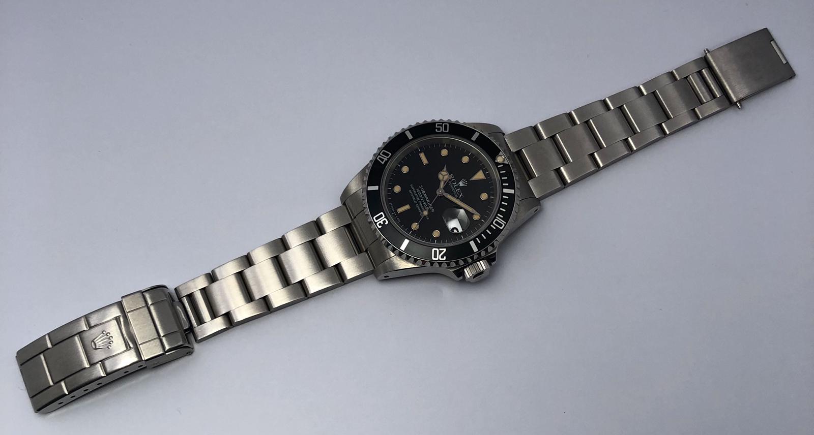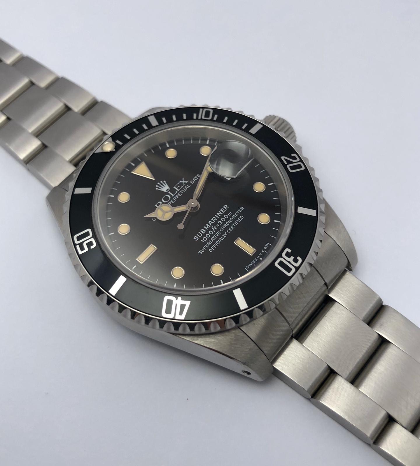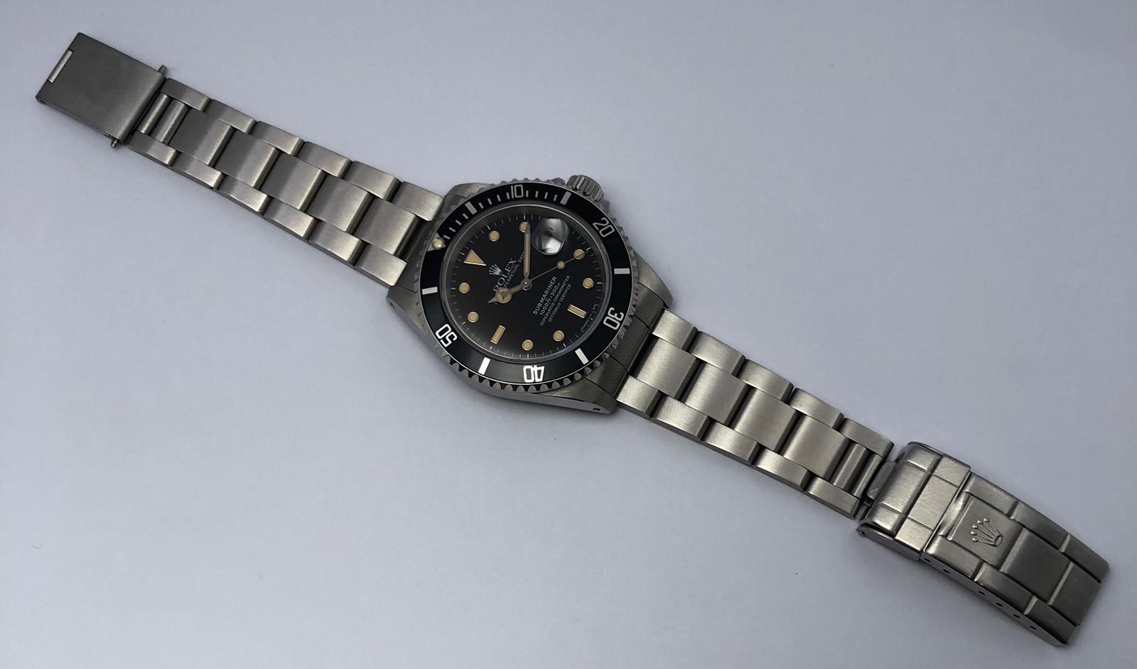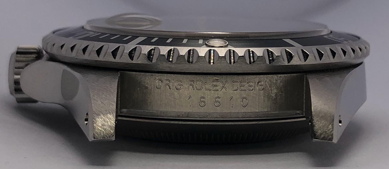 The dial is an original Rolex 16610 tritium dial with creamy patina even on all plots and all lettering is clearly visible and correct.