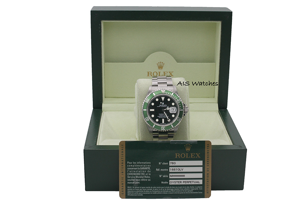 Up for sale is a relatively RARE Rolex Submariner 16610LV 50th Anniversary M Serial Box & Papers. The timepiece is in clean condition. Little to no stretch on the bracelet with thick lugs/thick case.