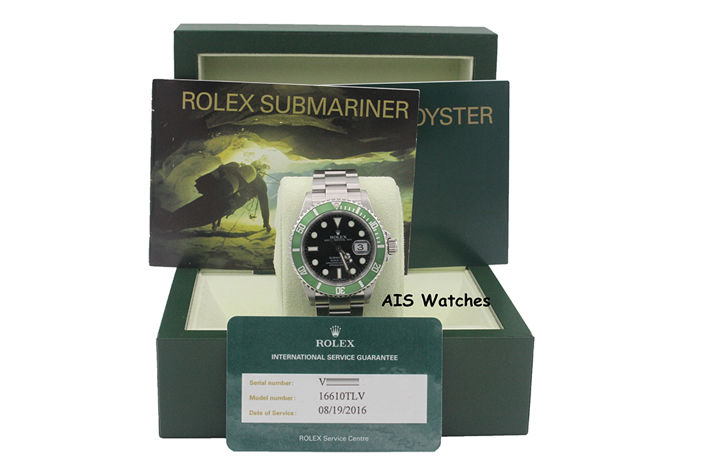 Up for sale is a relatively RARE Rolex Submariner 16610LV 50th Anniversary V Serial with RSC Card ONLY. Little to no stretch on the bracelet with thick lugs/thick case. The timepiece is in excellent condition.