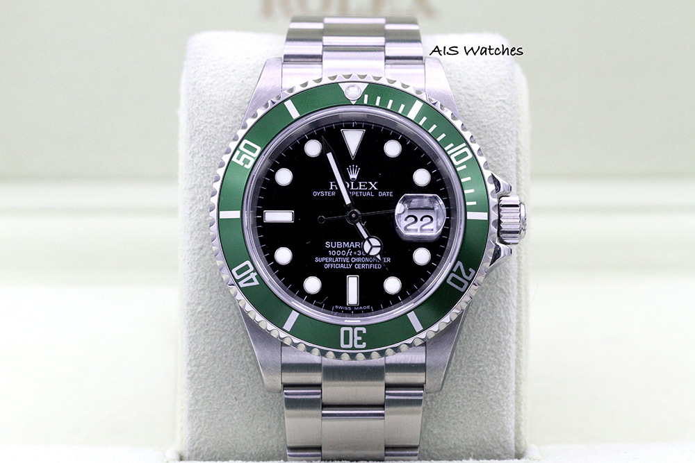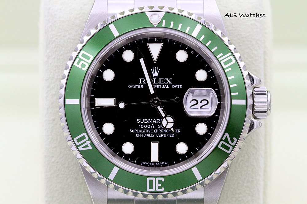 Up for sale is a relatively RARE Submariner 16610LV 50th Anniversary. This watch is Z Serial and RSC Serviced. The timepiece is in good condition for its age. Little to no stretch on the bracelet with thick lugs / thick case.