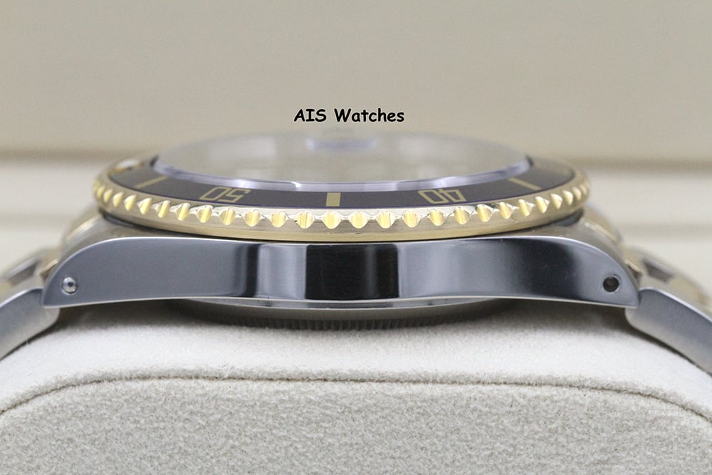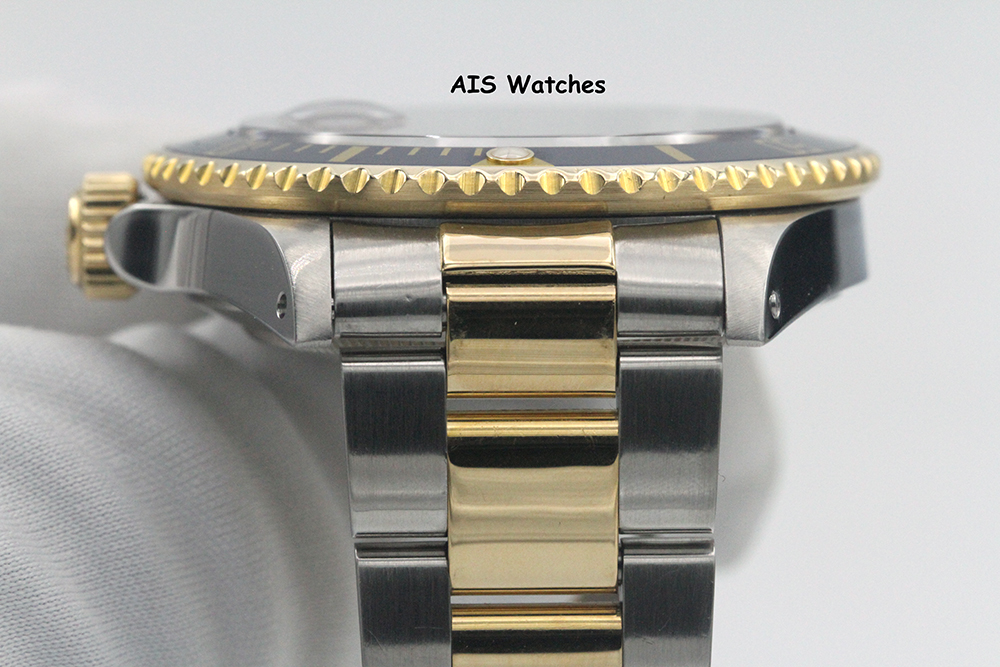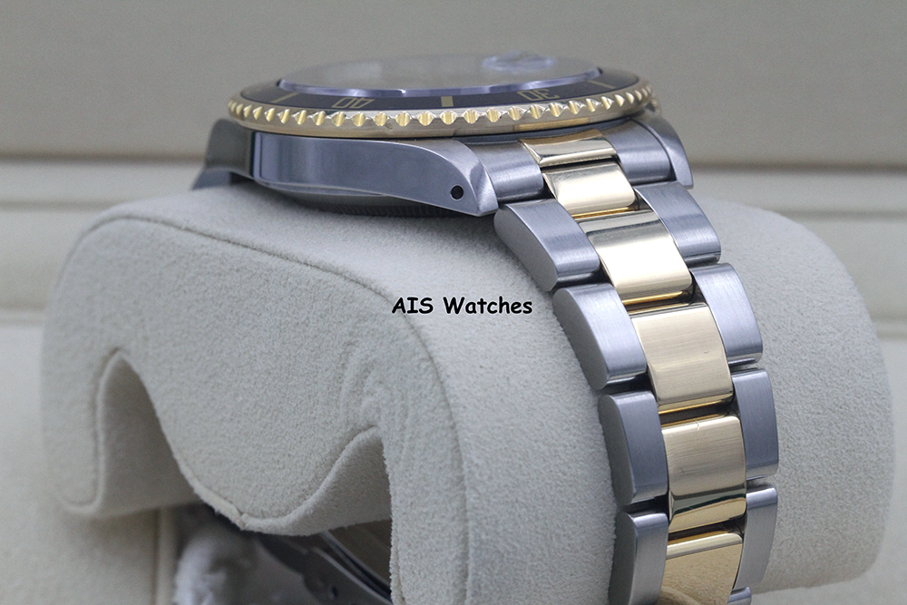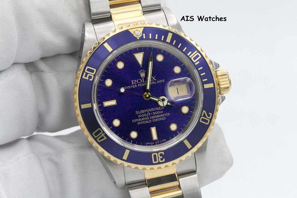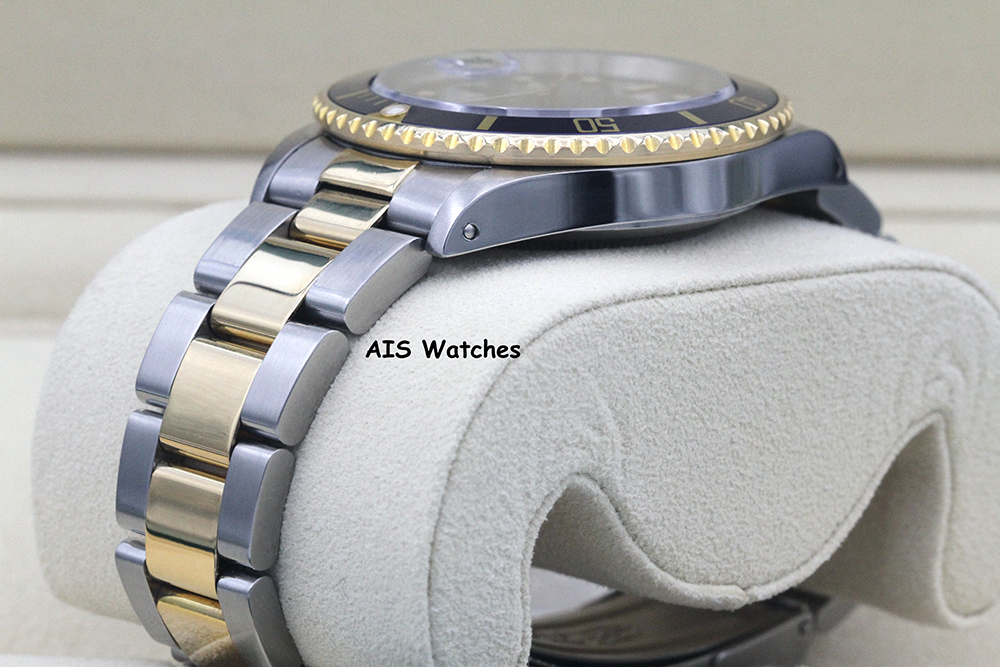 Up for sale is a Rolex Submariner 16803 18K/SS Blue Dial R Serial Recent RSC Serviced (Under RSC Warranty) - 6 and open 9 date wheel and bracelet had minimal stretch. The timepiece is in excellent condition.