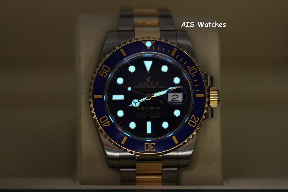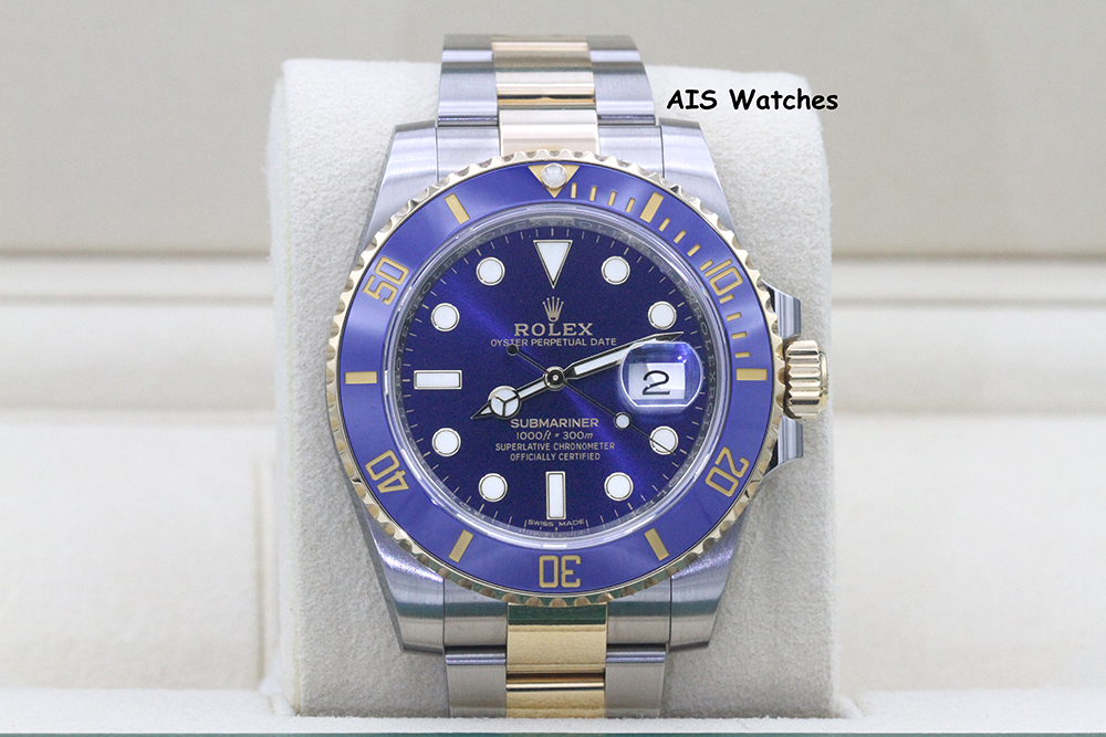 Up for sale is a Submariner Two Tone 116613 40MM Sunburst Blue Dial with Ceramic Bezel and Random Serial Box & Papers. The timepiece is in excellent condition.