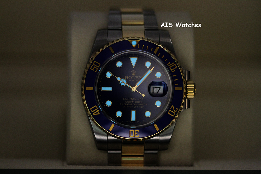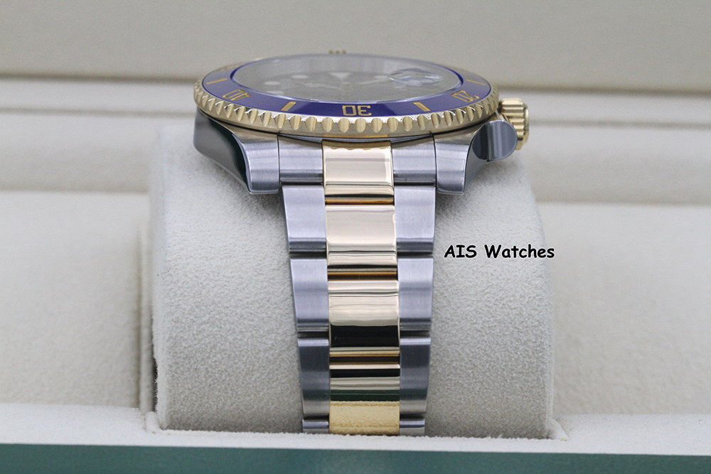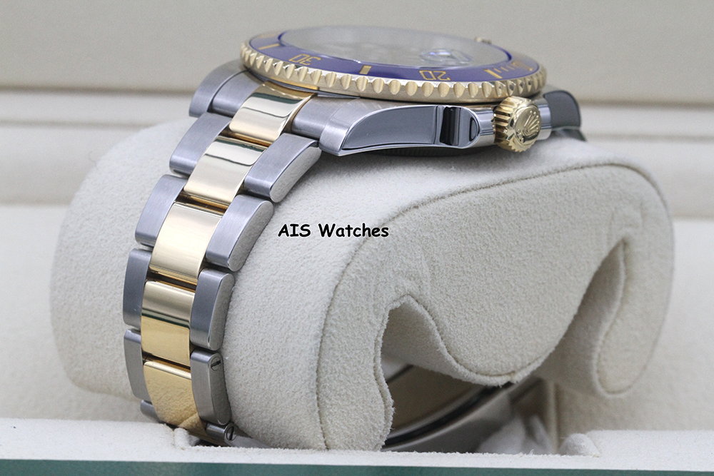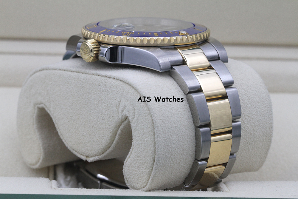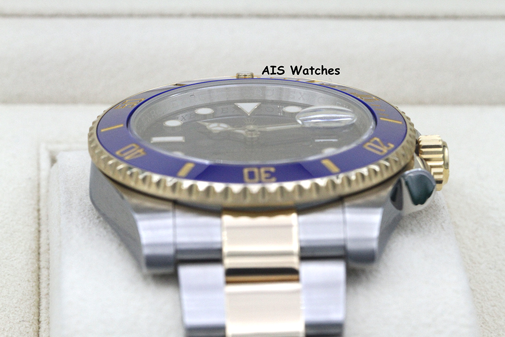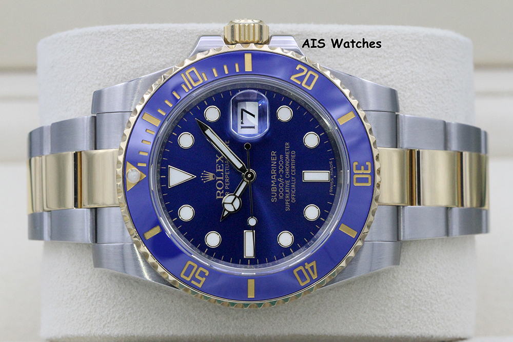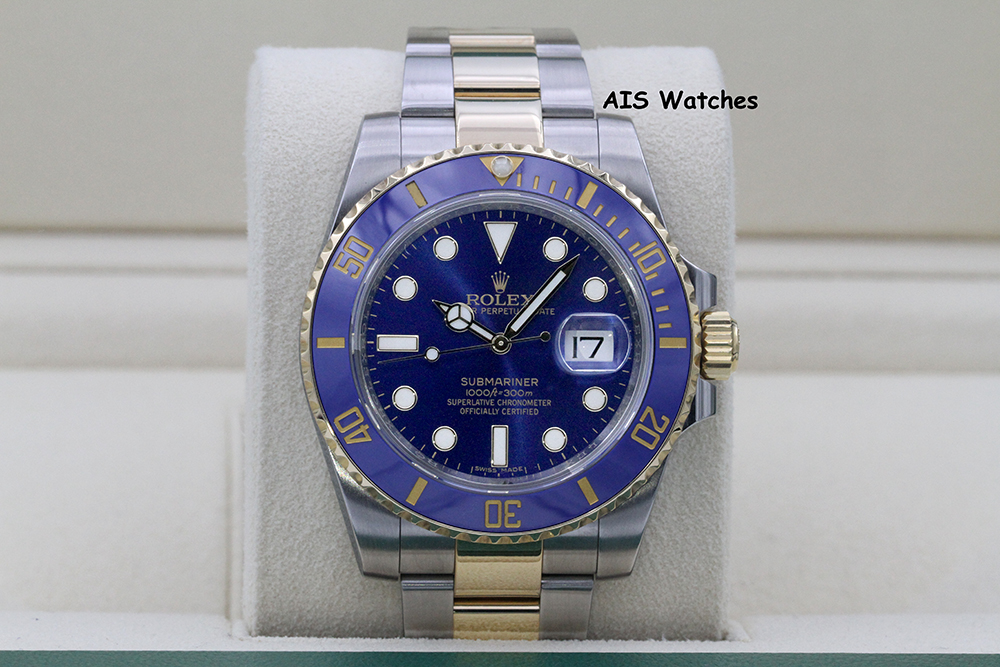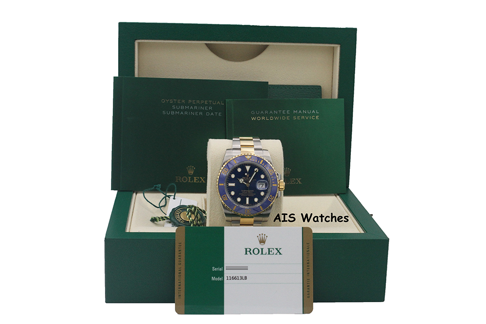 Up for sale is a Submariner Two Tone 116613 40MM Sunburst Blue Dial with Ceramic Bezel and Random Serial Box & Papers. The timepiece is in excellent condition.