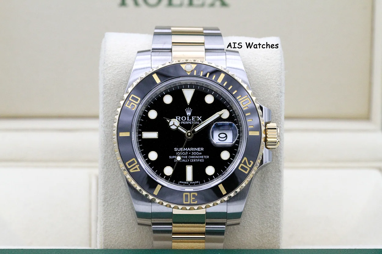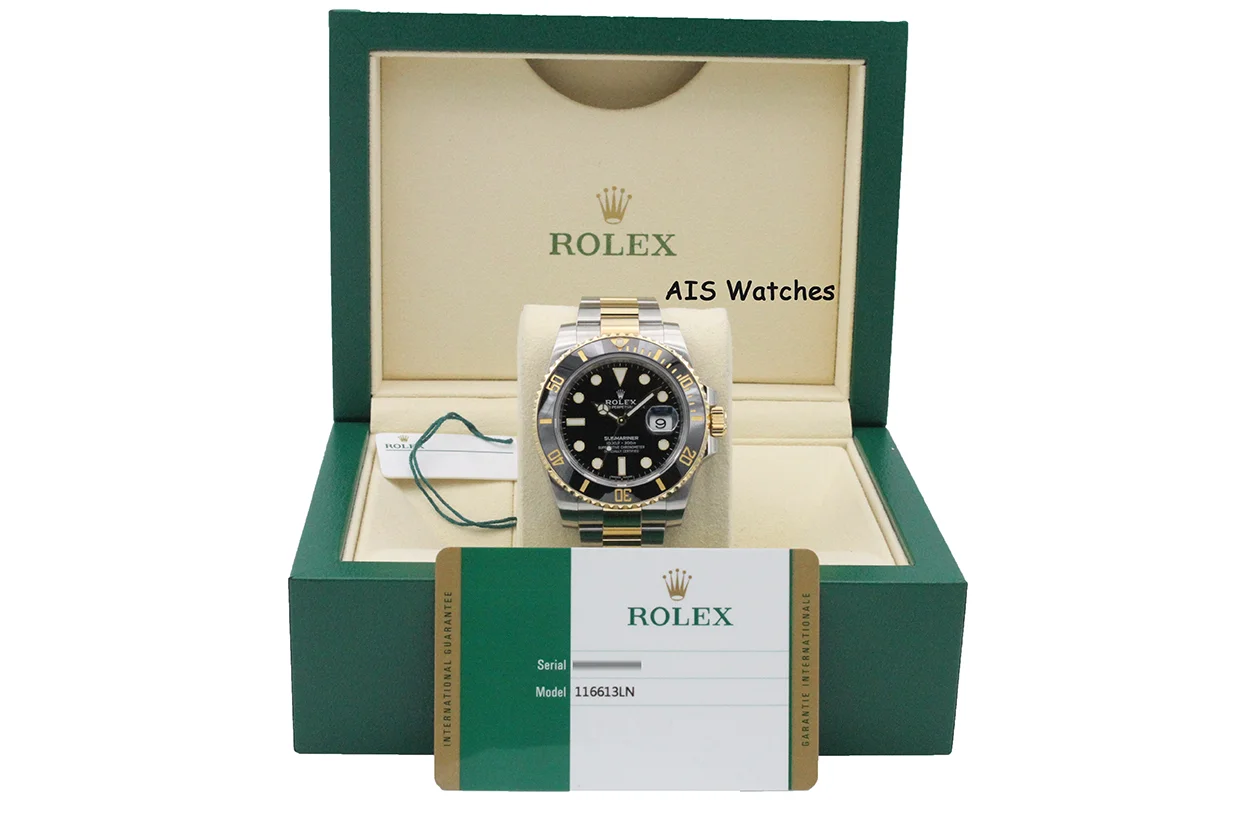 Up for sale is a Submariner Two Tone 116613 LN Black Dial with Black Ceramic Bezel Box & Papers. The timepiece is in excellent condition.